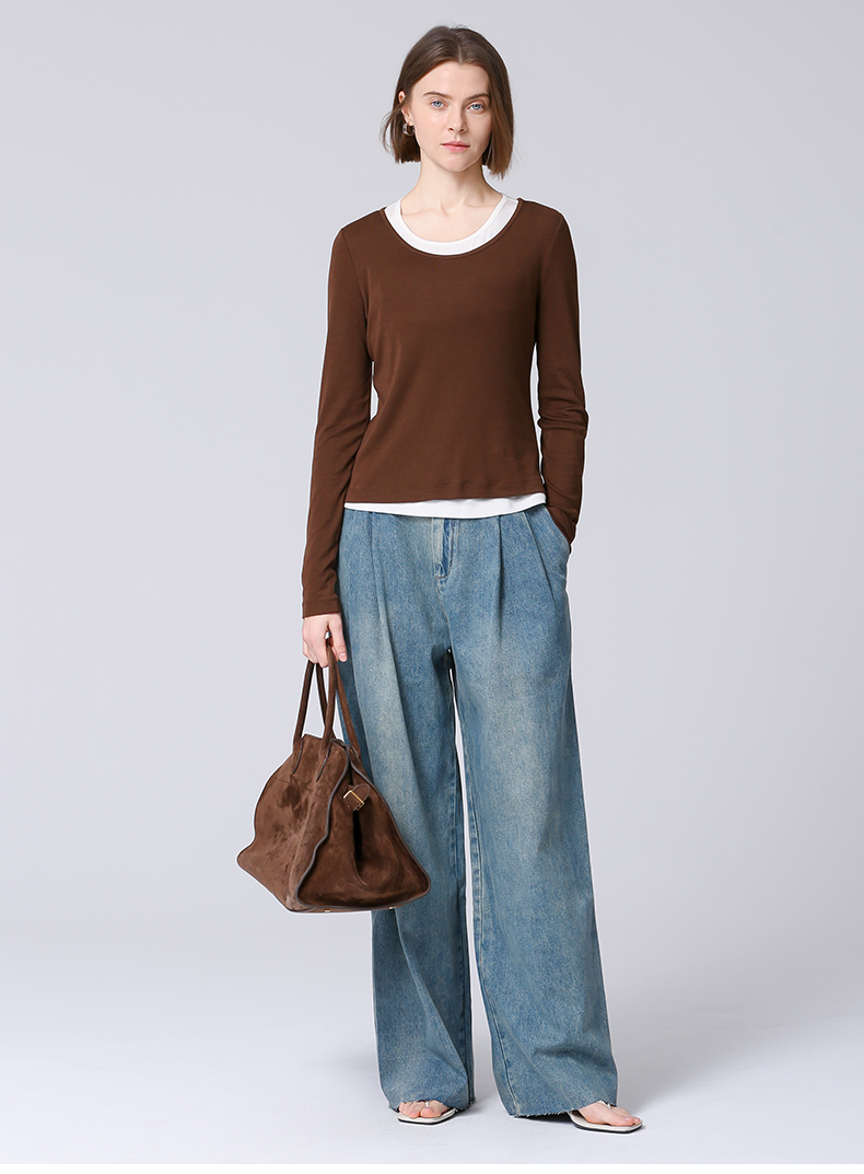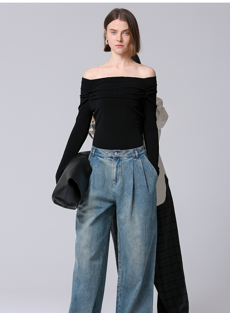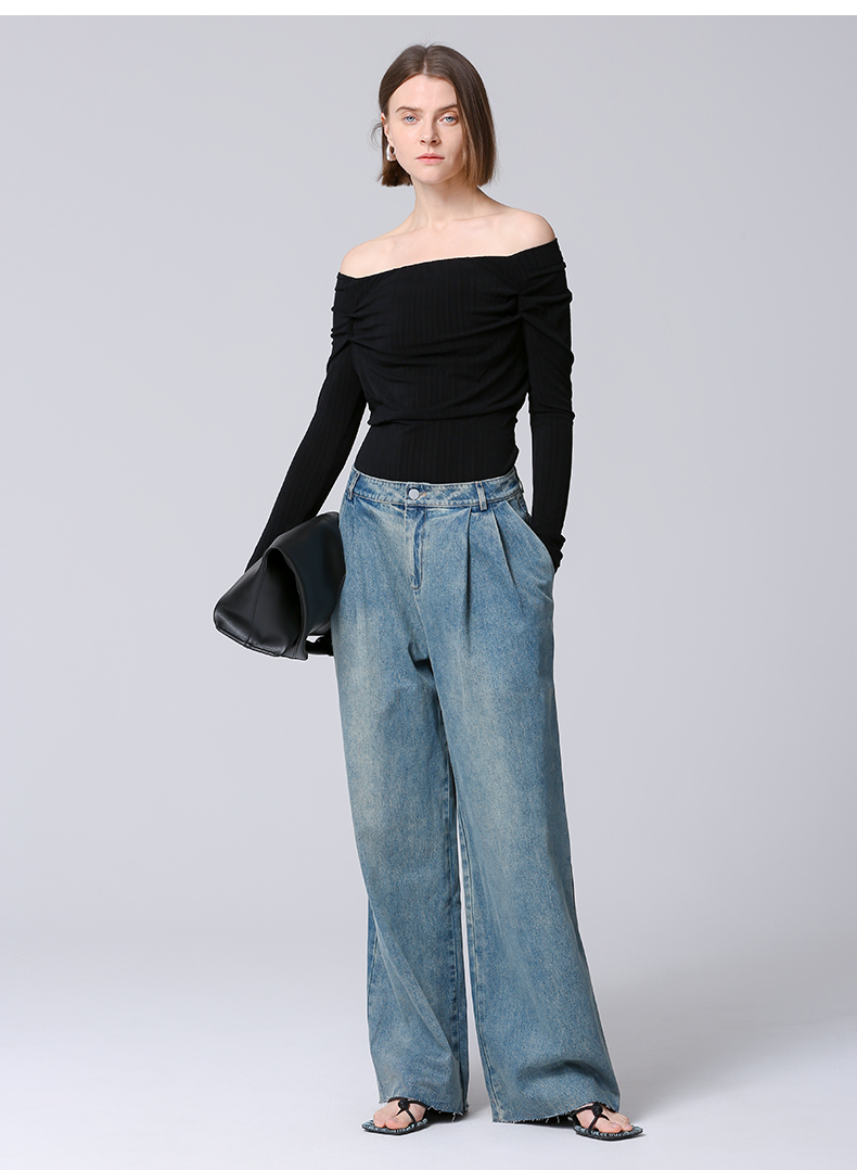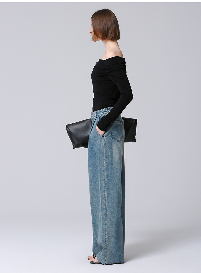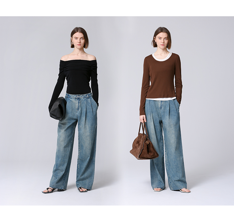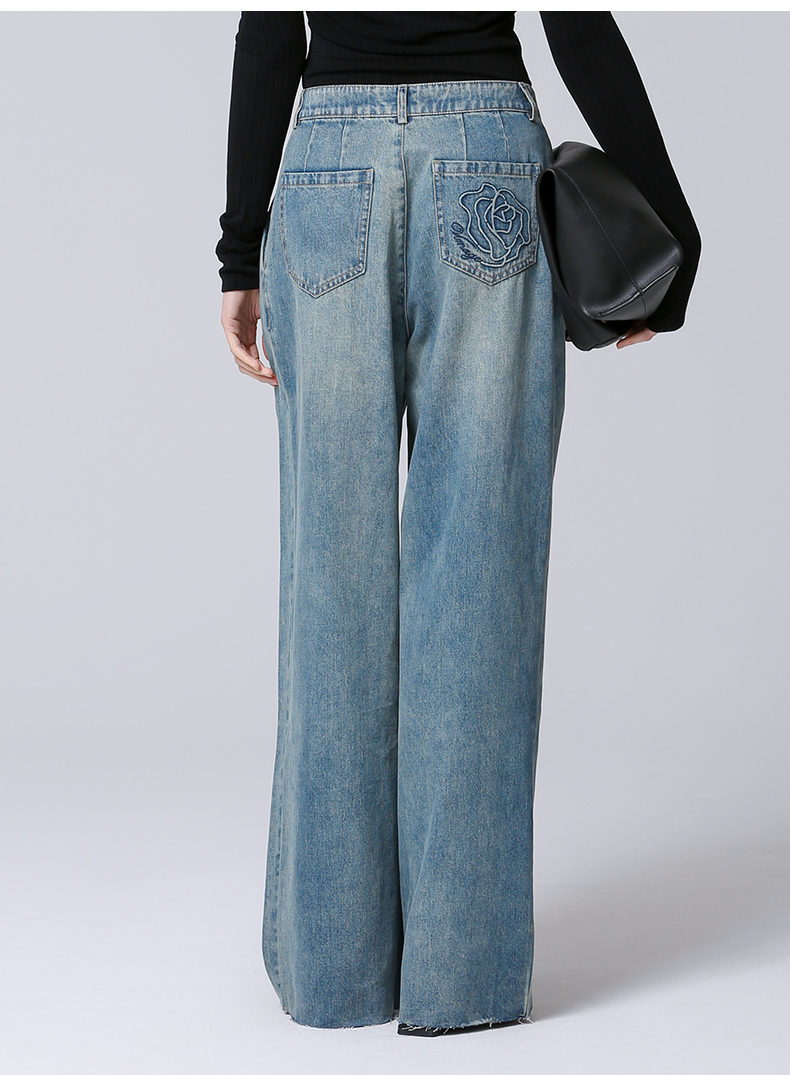 VIMAGE纬漫纪复古百搭直筒高腰阔腿显瘦牛仔裤2025春季新款V2305923