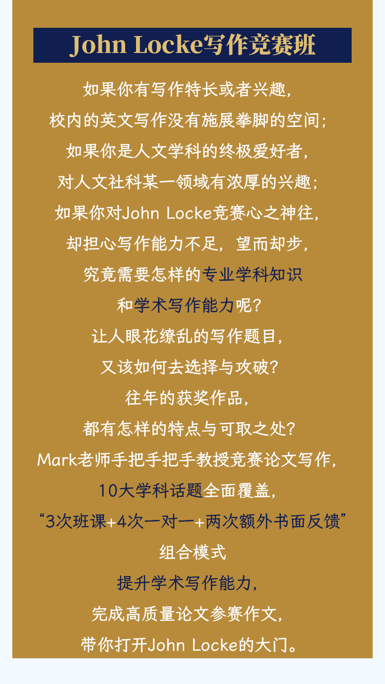 2026年 春季班 JOHN LOCKE约翰洛克写作竞赛班(前上中国际英语组长亲自指导)