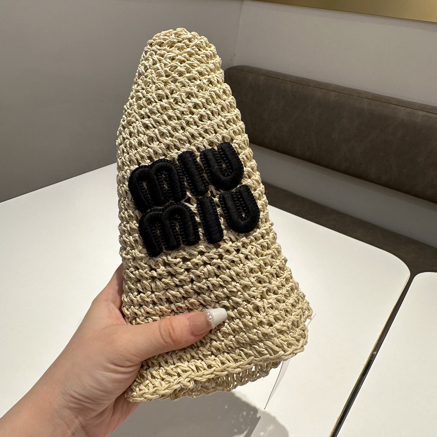 miumiu编织镂空渔夫帽,帽型简直无可挑剔!3D编织工艺,采用一根纱线一织到底!清凉酷爽,不用担心帽子压塌发型,更不怕闷热,完全就是美貌和舒服兼得,平常可以在仙女和清爽间自由转换。简直是凹造型利器呀!文艺范、韩风、欧美风都能美美诠释。巨正!气场强大!高颜值在线,分分钟ko市场版本!