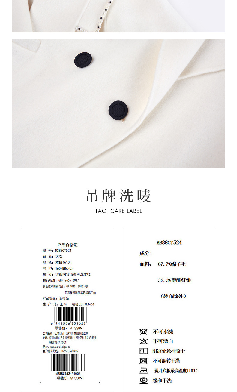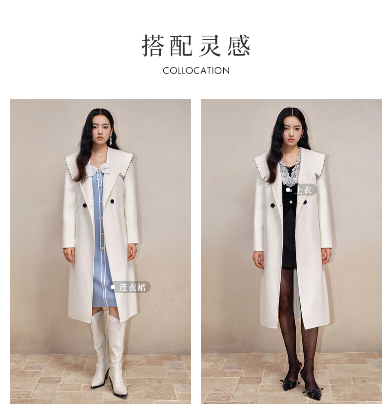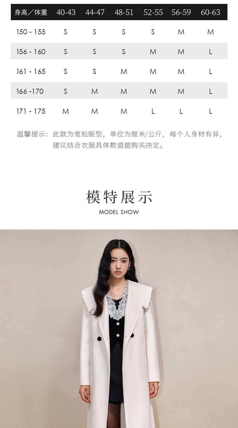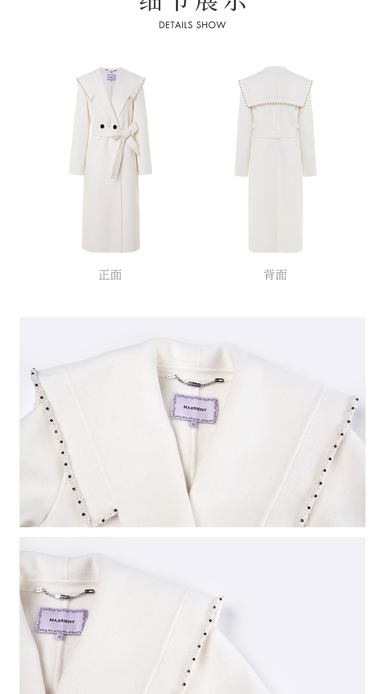 MAXRIENY极简通勤风双面呢羊毛大衣过膝长款外套(货号:MS88CT524)