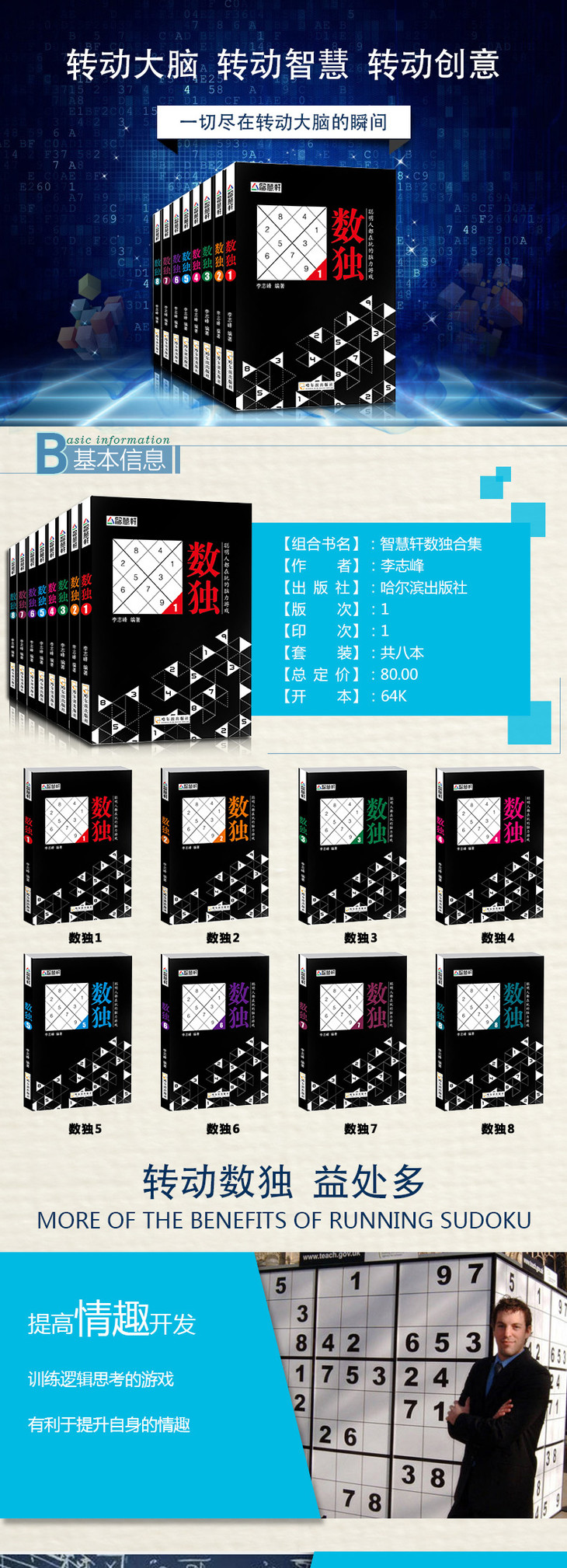 数独8册 越玩越聪明的思维游戏 小本便携儿童小学生数独训练题集入门级一年级二 成人高中生初中生高级小学益智四六九宫格