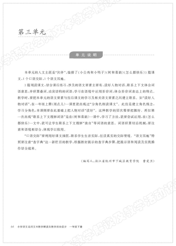 小学语文名师文本教学解读及教学活动设计 一年级下册(配套部编统编新教材)