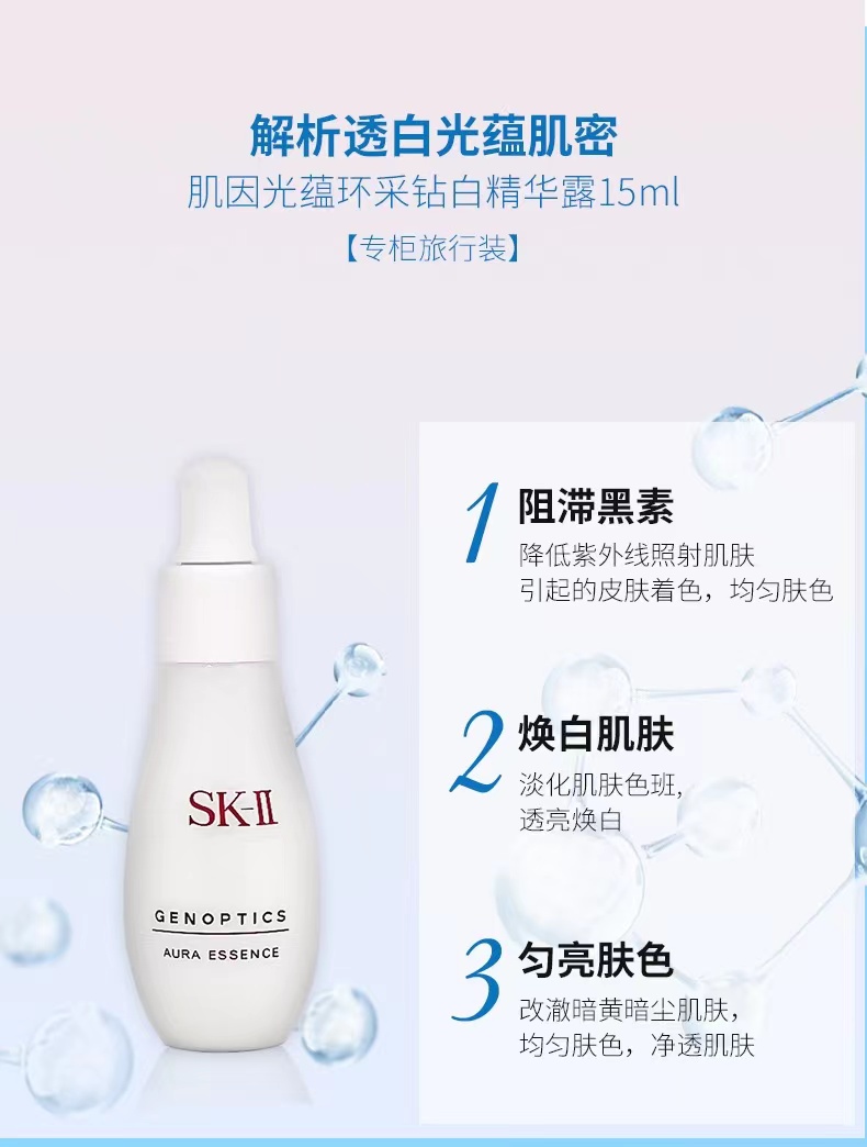 SK-II肌因光蕴环采钻白精华露小灯泡 镁白淡斑精华 SK2 面部护肤15ml中小样