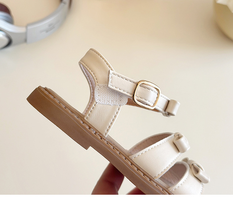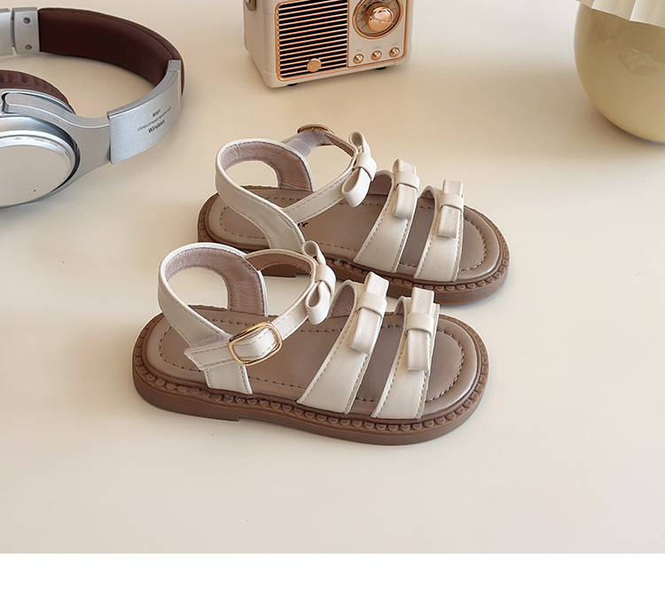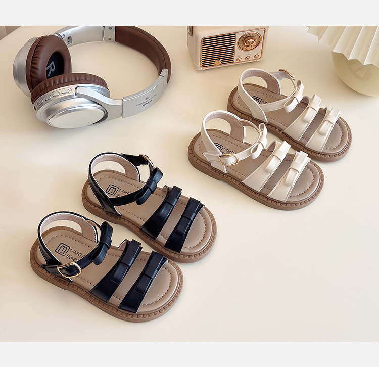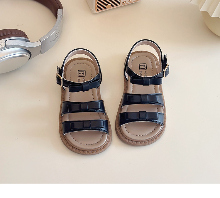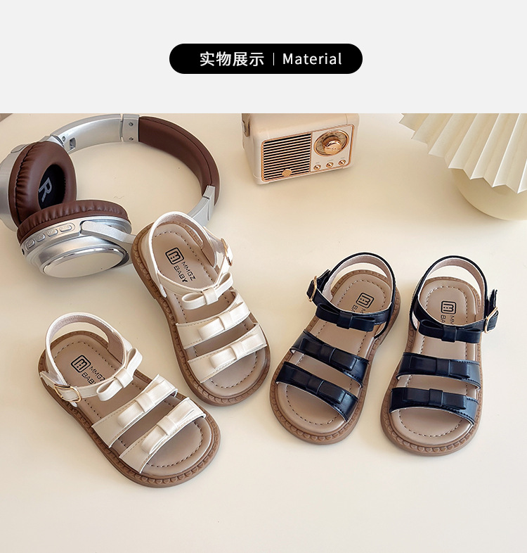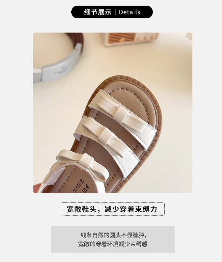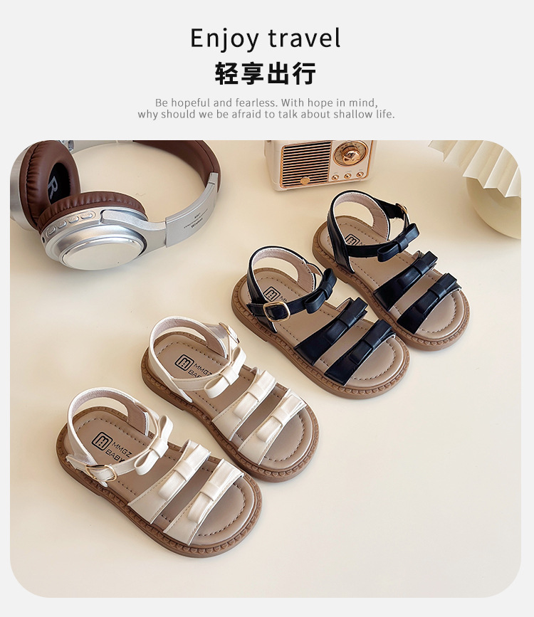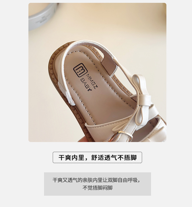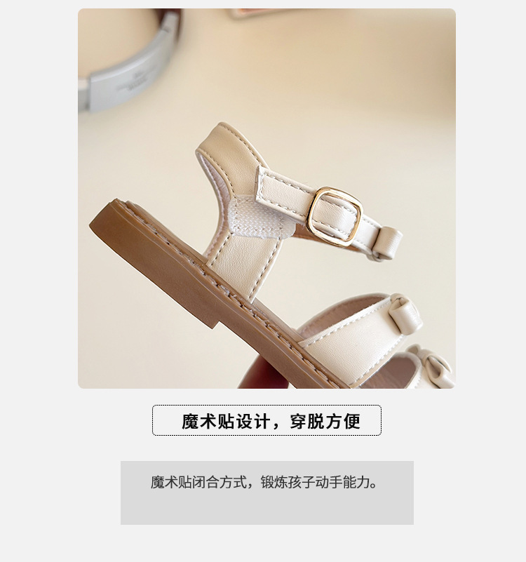 【精致蝴蝶结设计,时尚又可爱】女童露趾魔术贴凉鞋 2025夏季新款 儿童蝴蝶结软底沙滩鞋 中大童鞋子-QQ