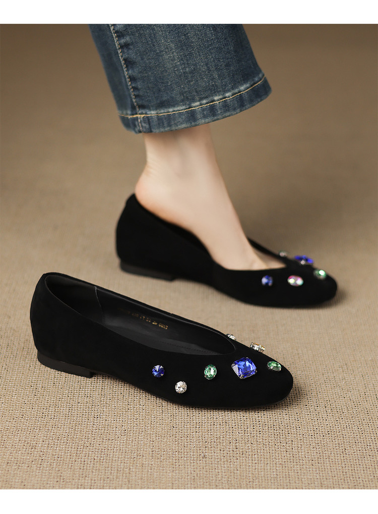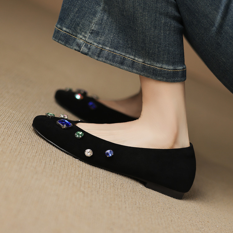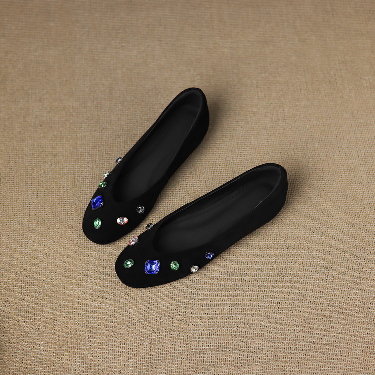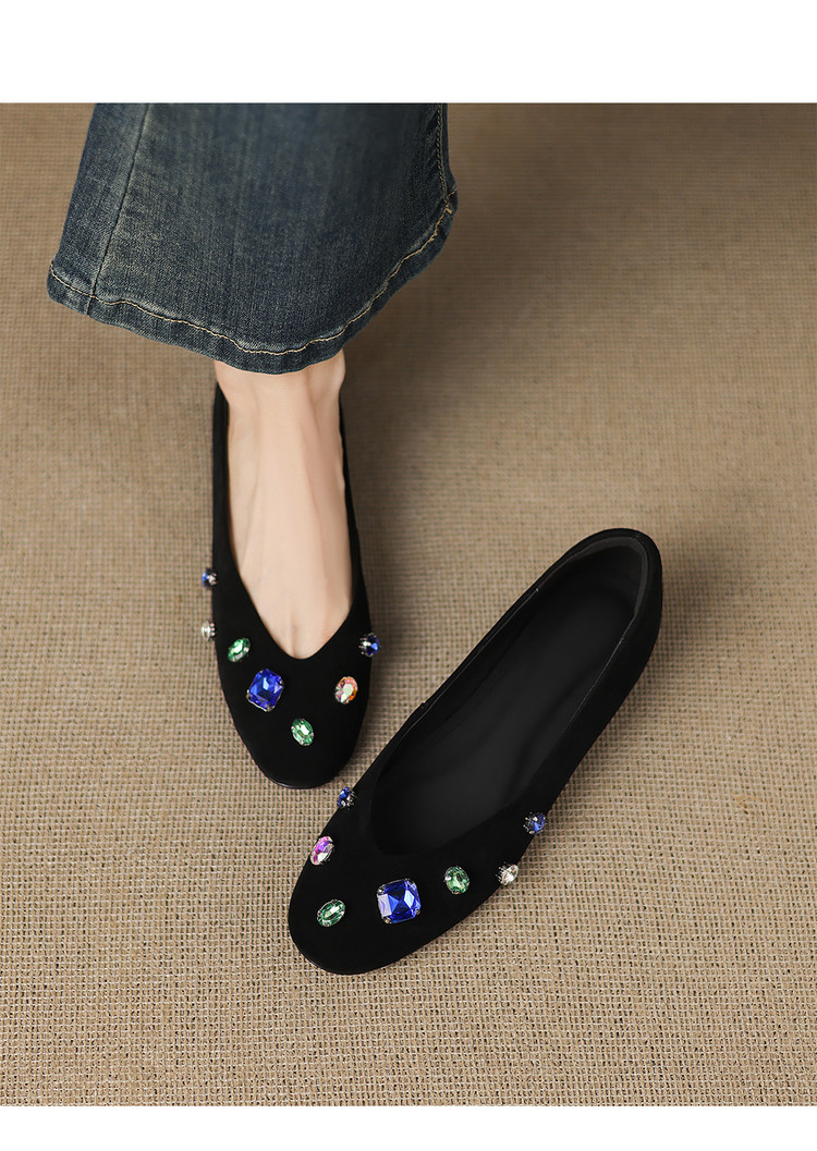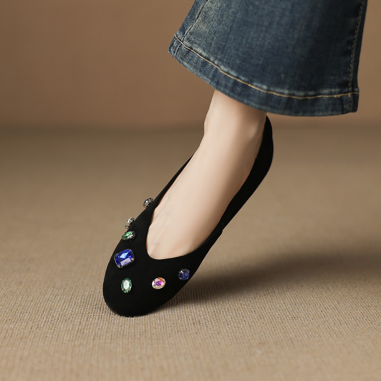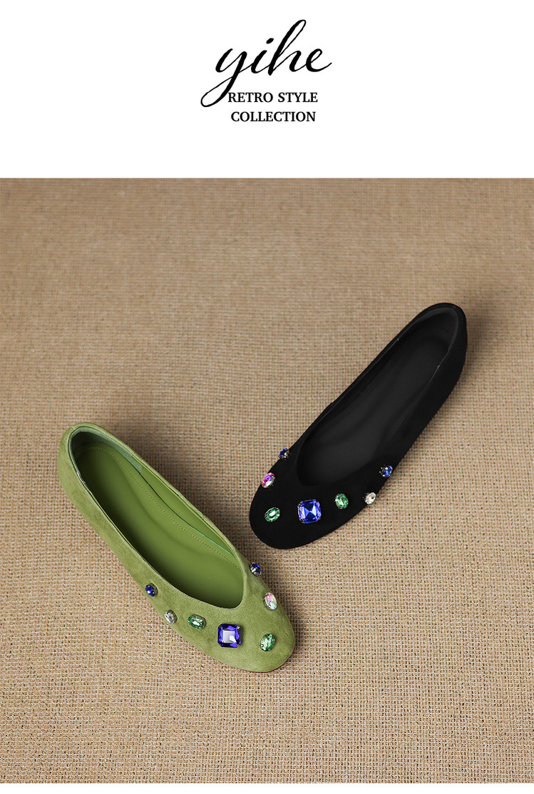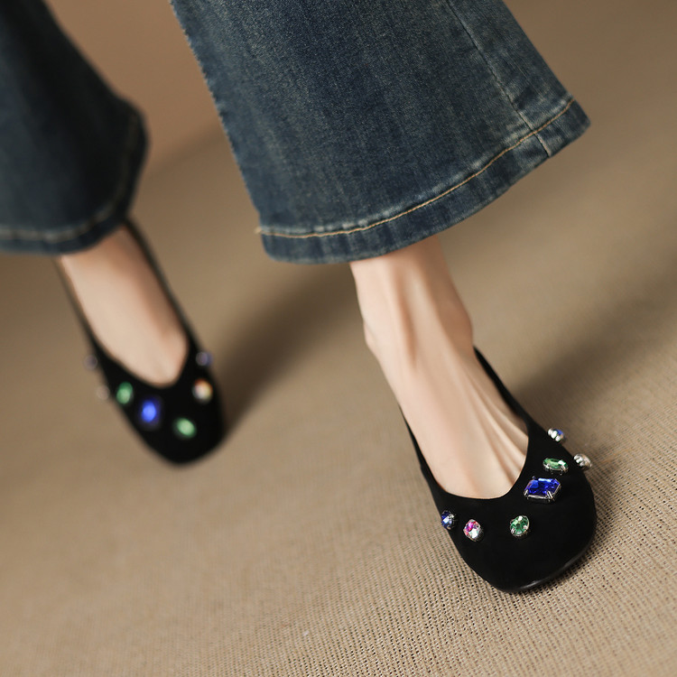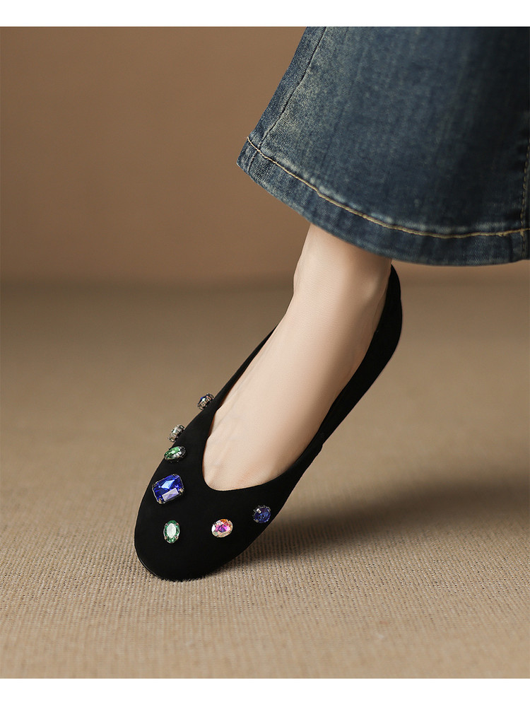 【预售5天】法式浅口单鞋女秋季新款百搭圆头低跟复古水钻装饰女鞋FDME&FD9122-1