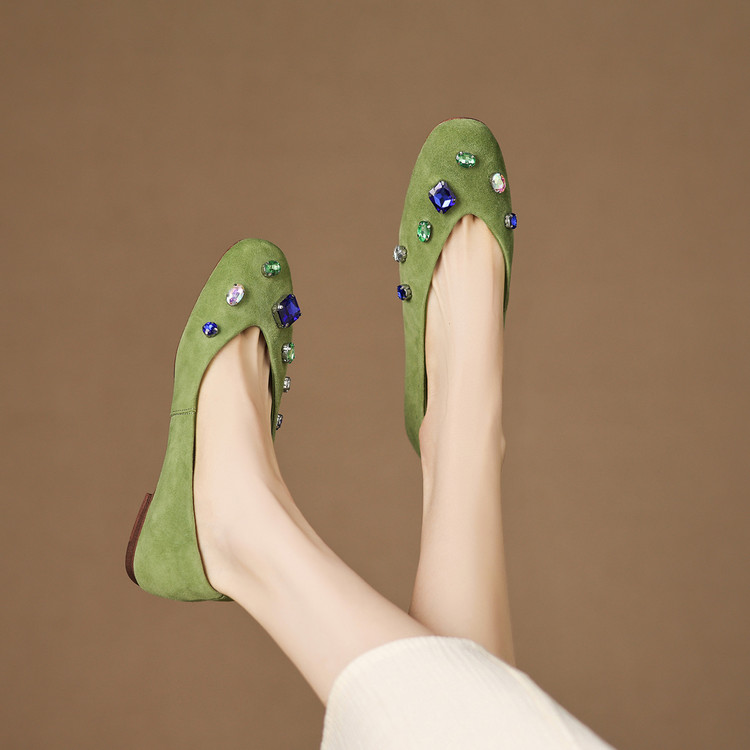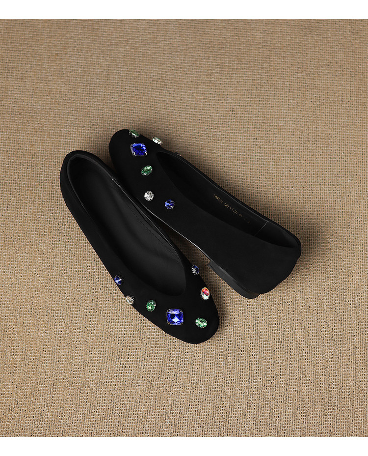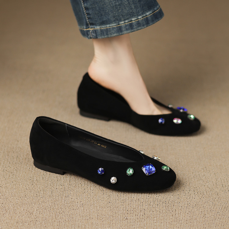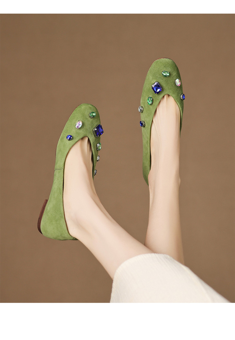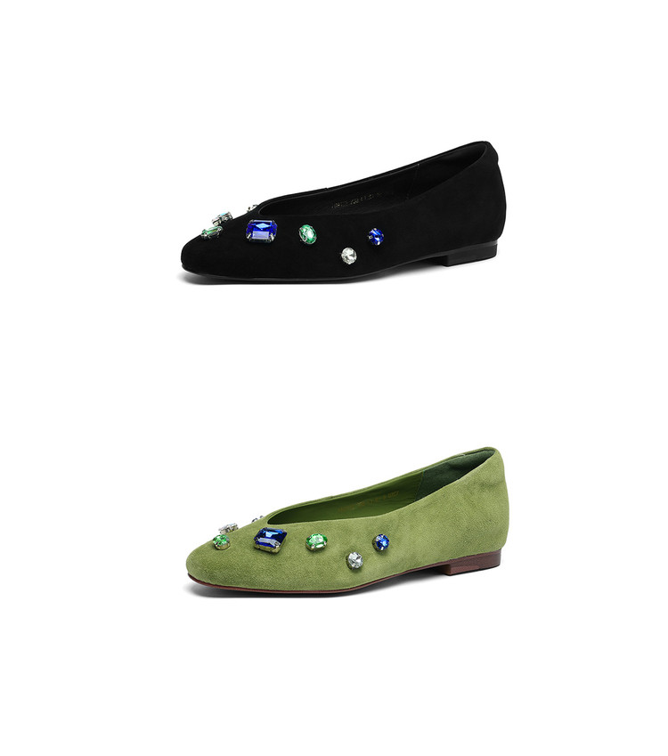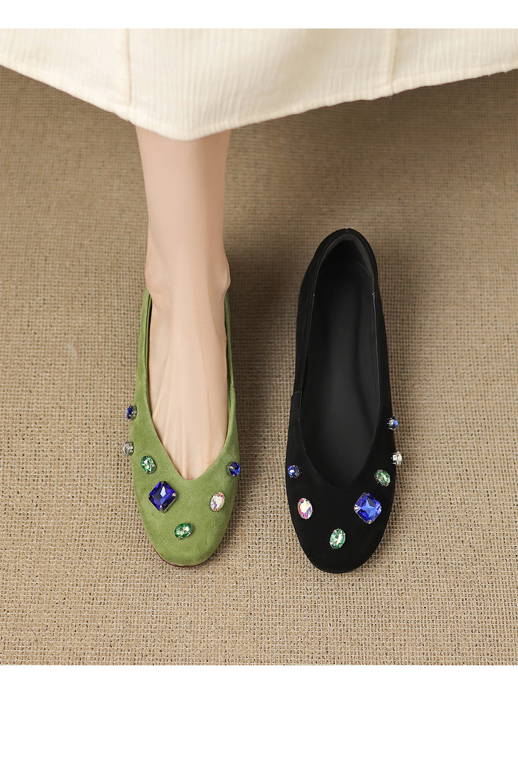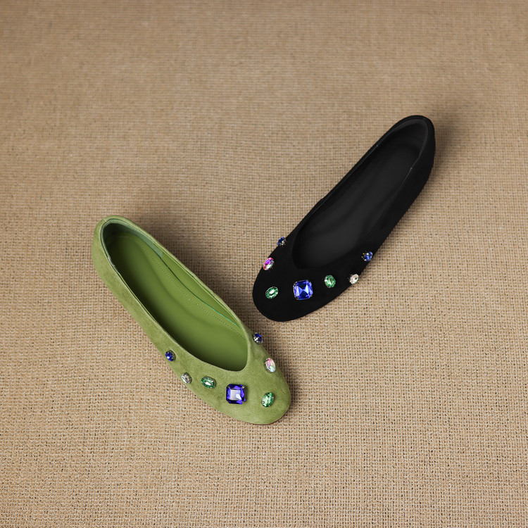 【预售5天】法式浅口单鞋女秋季新款百搭圆头低跟复古水钻装饰女鞋FDME&FD9122-1
