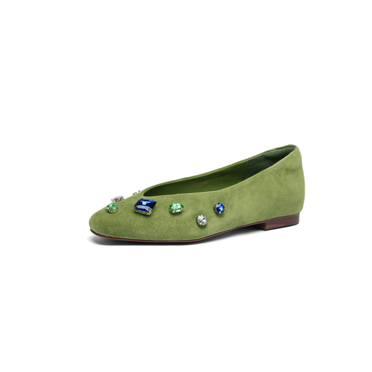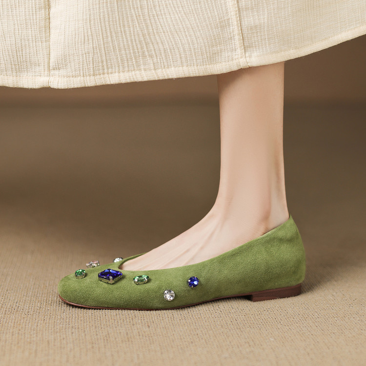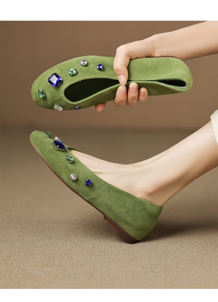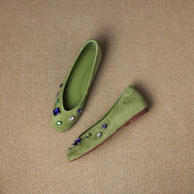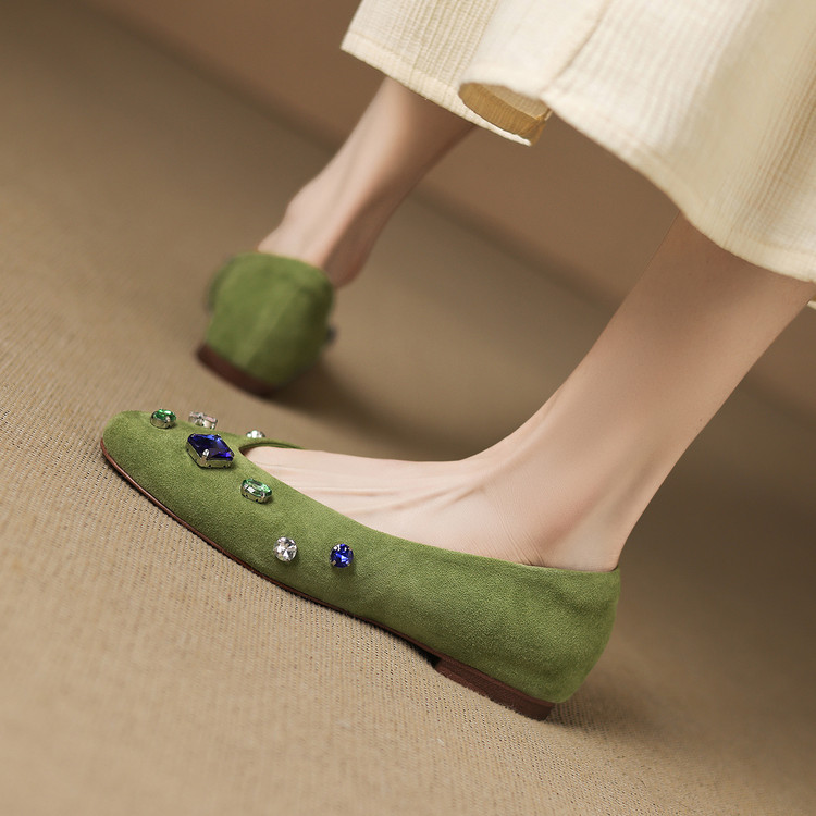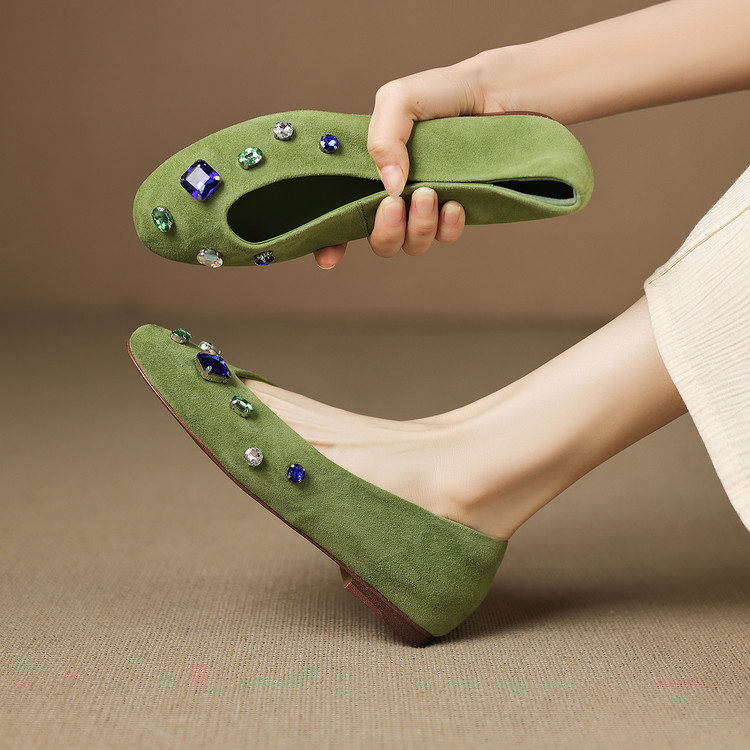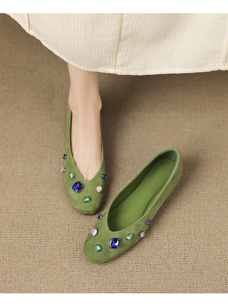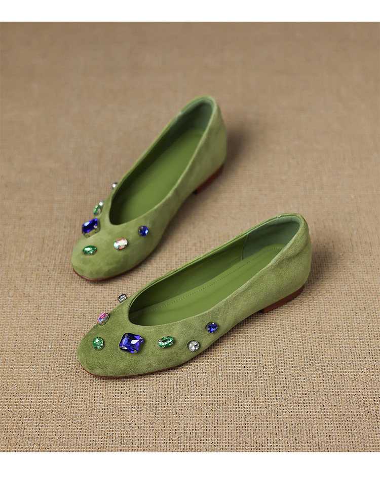 【预售5天】法式浅口单鞋女秋季新款百搭圆头低跟复古水钻装饰女鞋FDME&FD9122-1