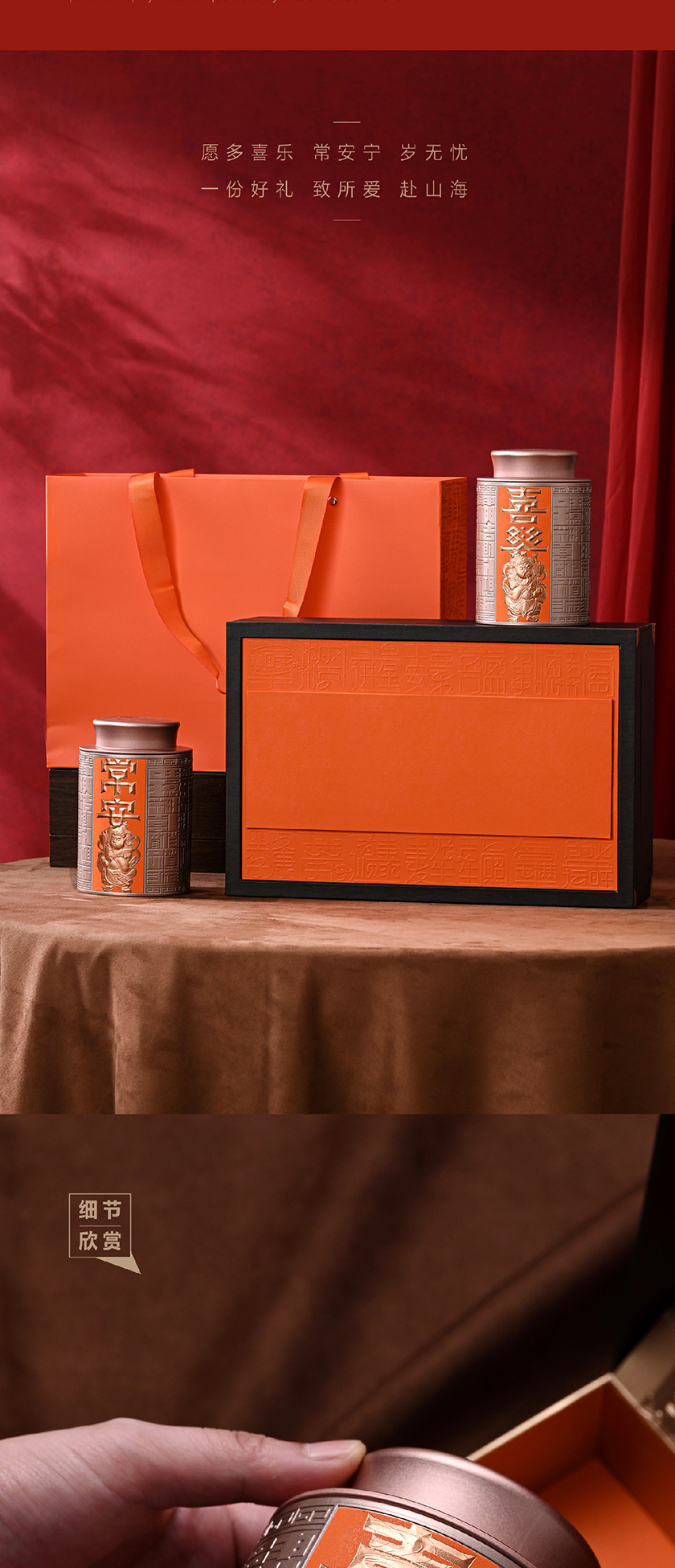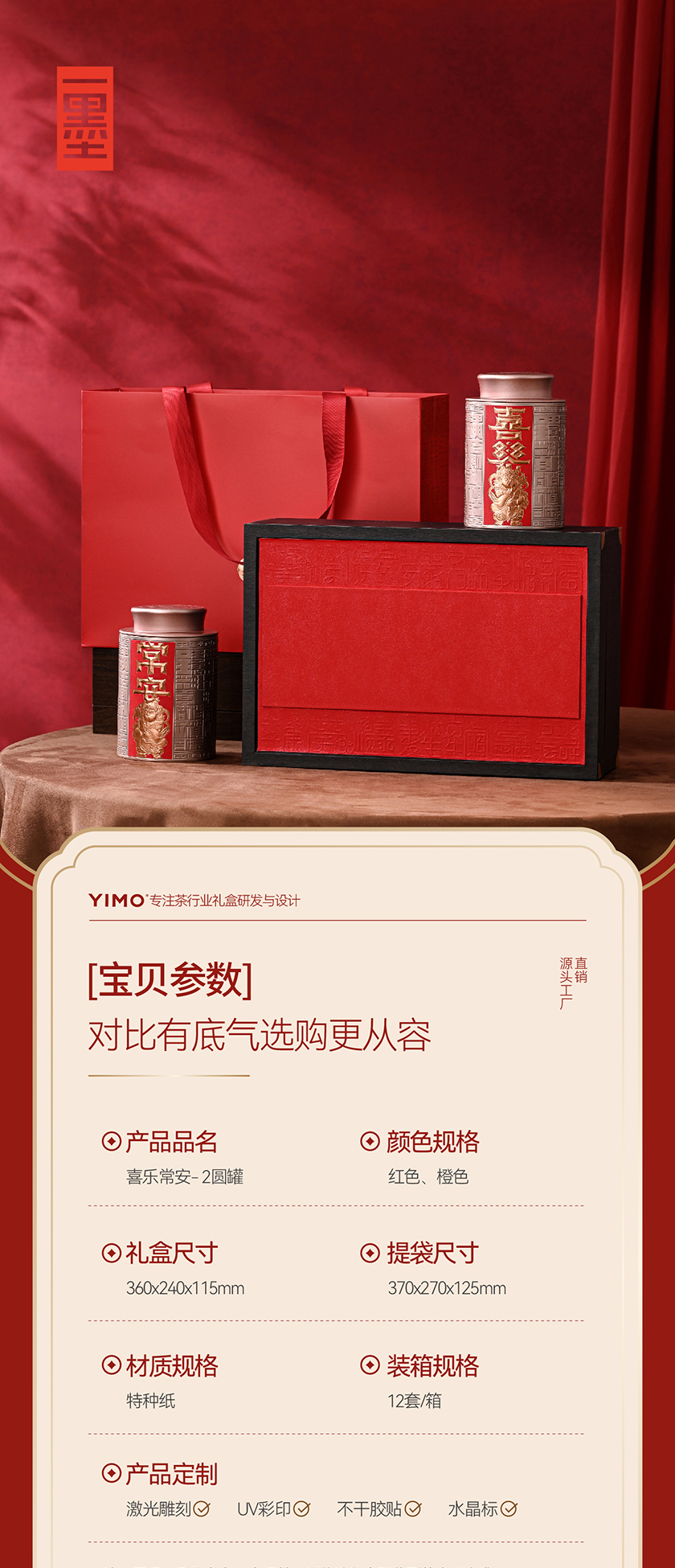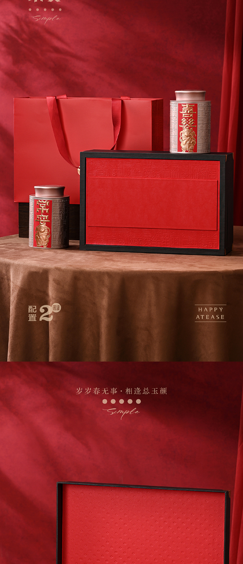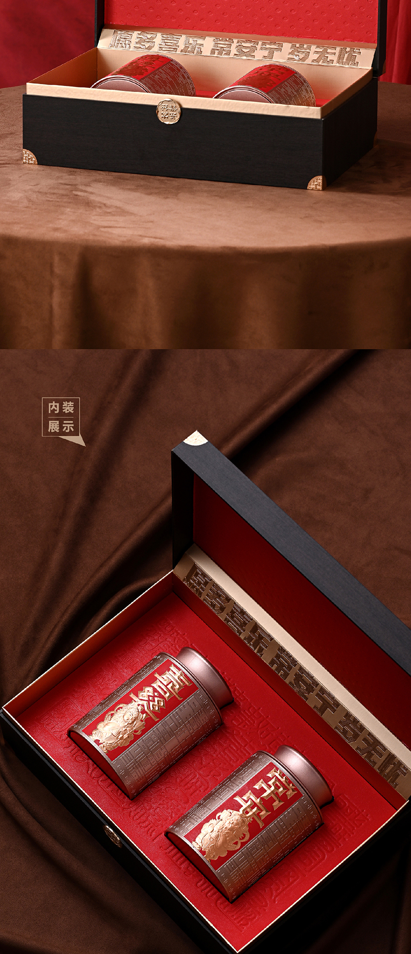 喜乐常安-2圆罐红色茶叶礼盒包装PA