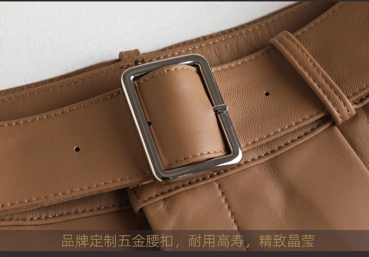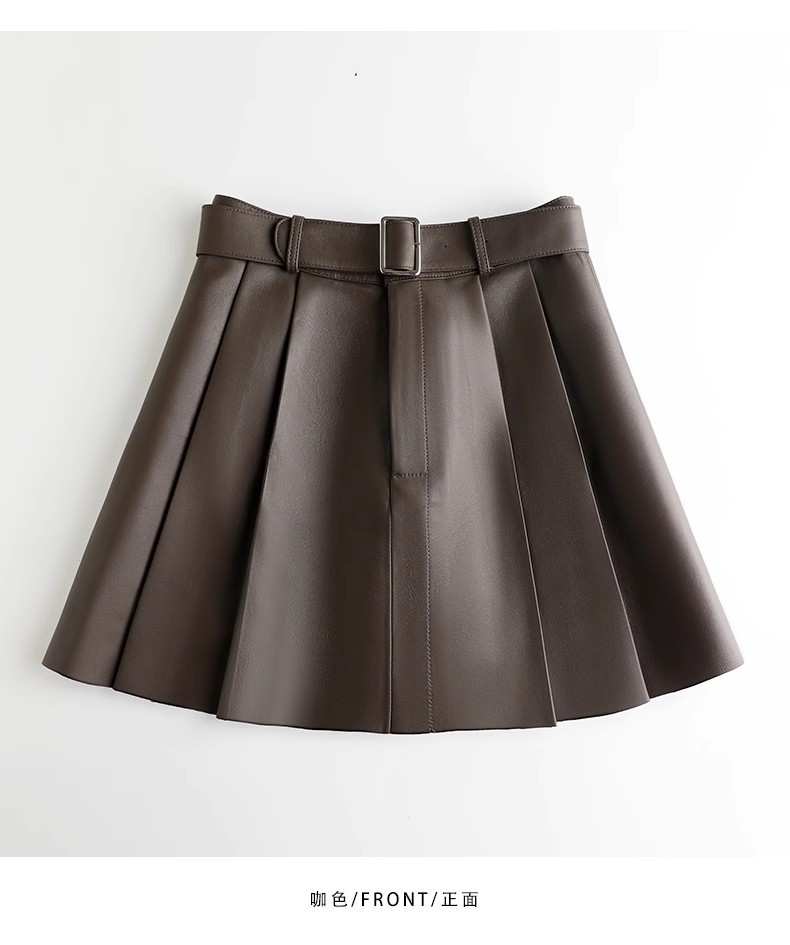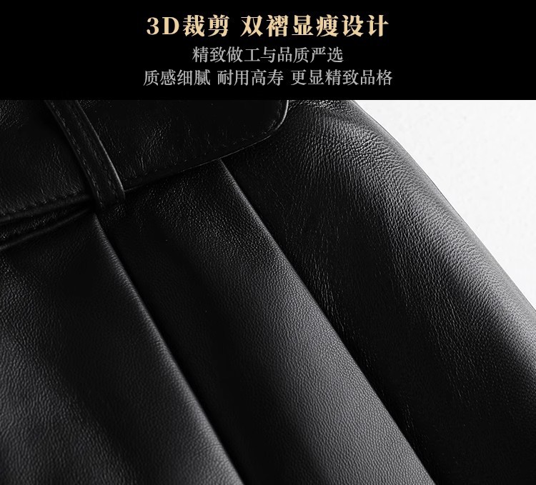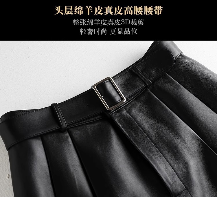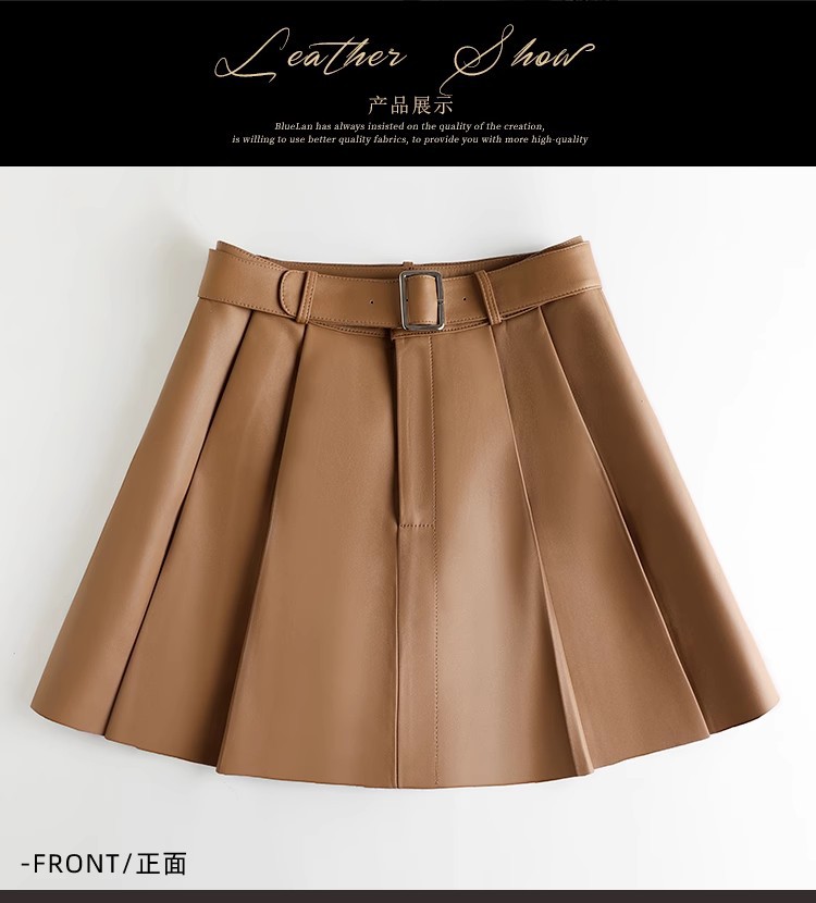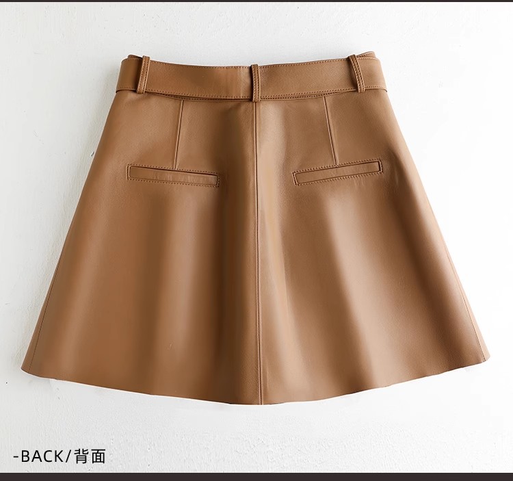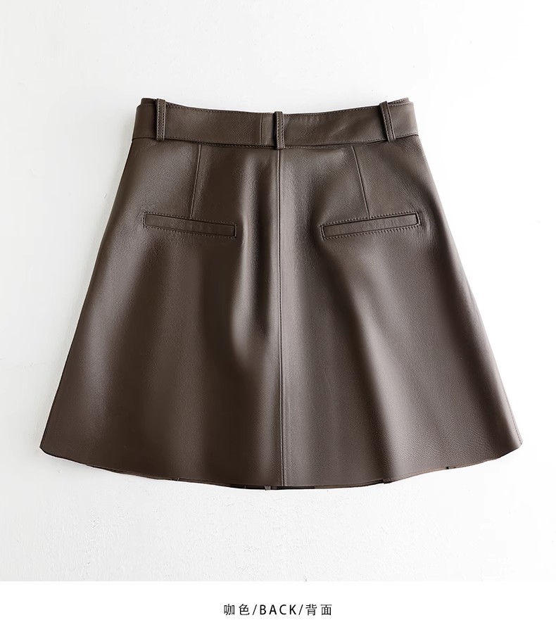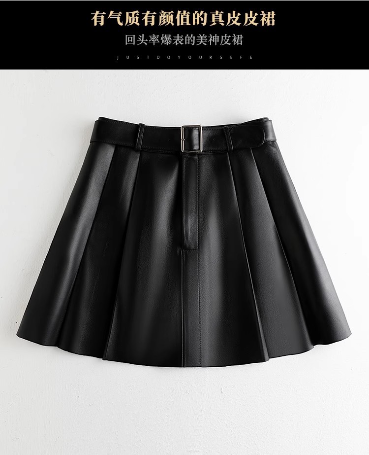 丁摩 绵羊皮真皮半身裙女高腰高级感美式a字百褶皮裙02