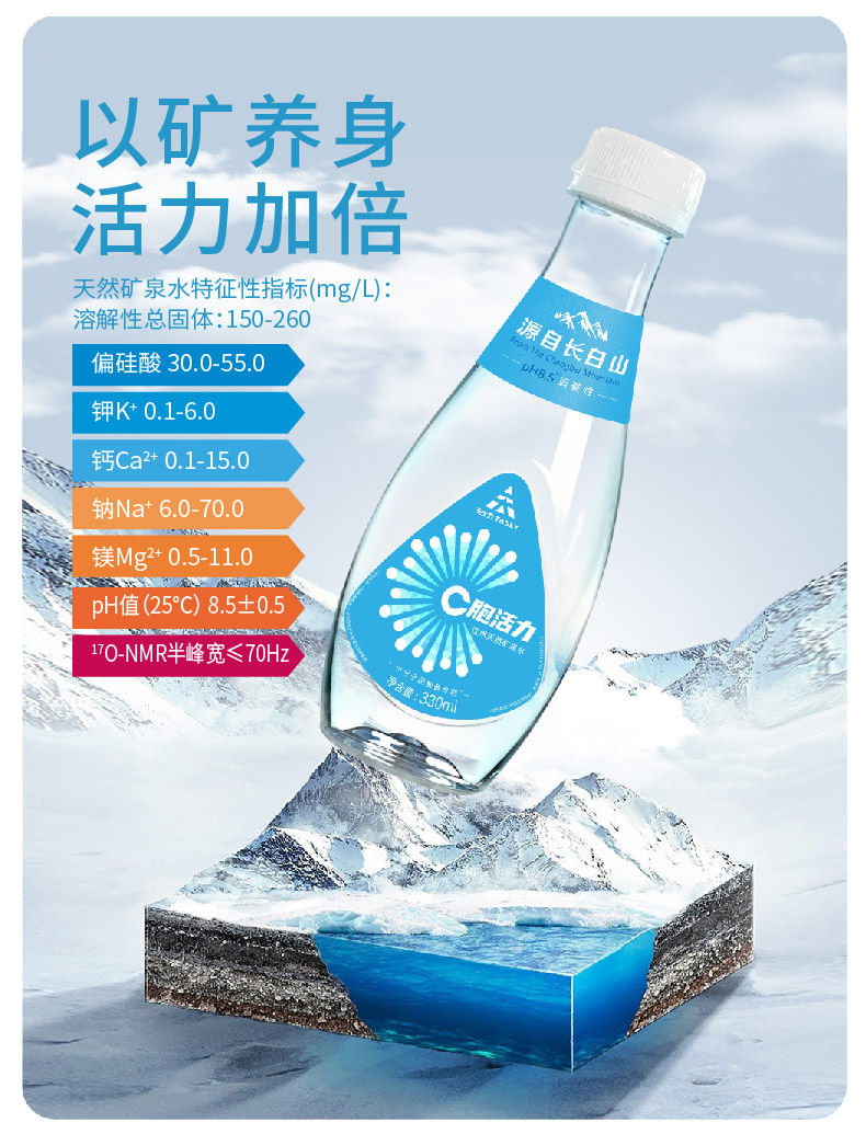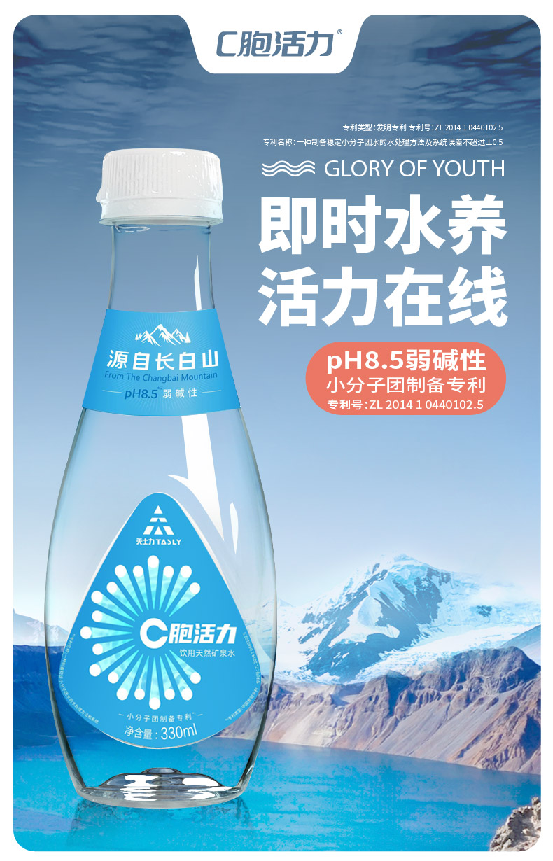 【天士力】JL2564 C胞活力饮用天然矿泉水(活力版)弱碱水矿物质C胞活力矿泉水330ml*24瓶