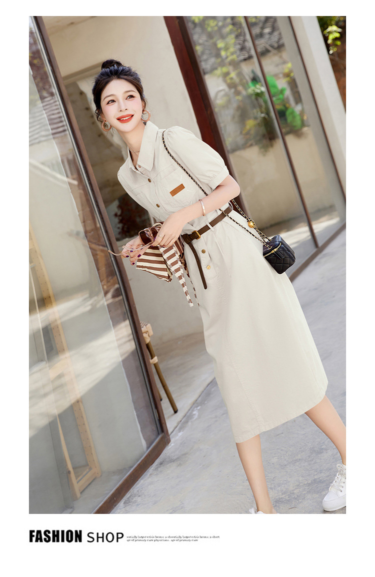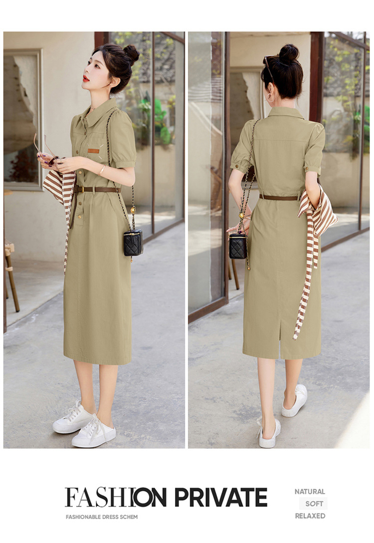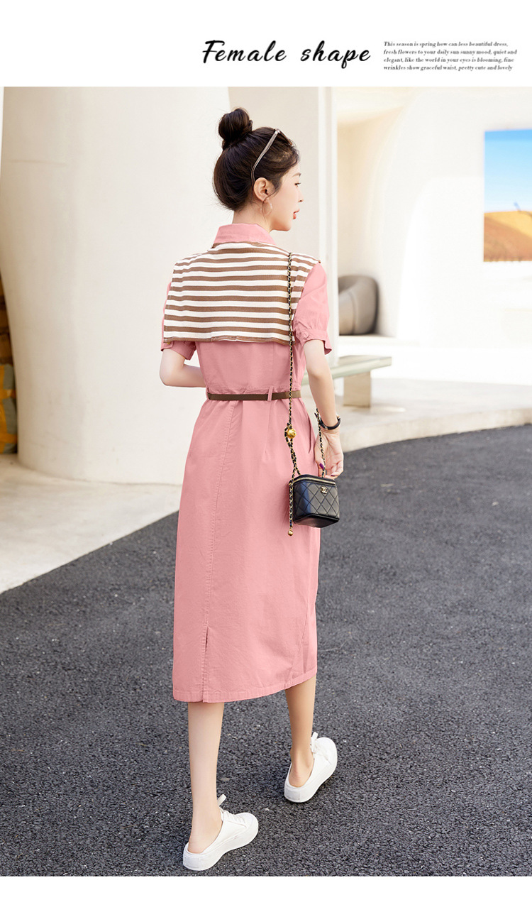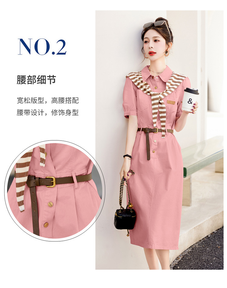 新款条纹披肩配腰带休闲时尚气质翻领宽松直筒连衣裙HR-WL98219