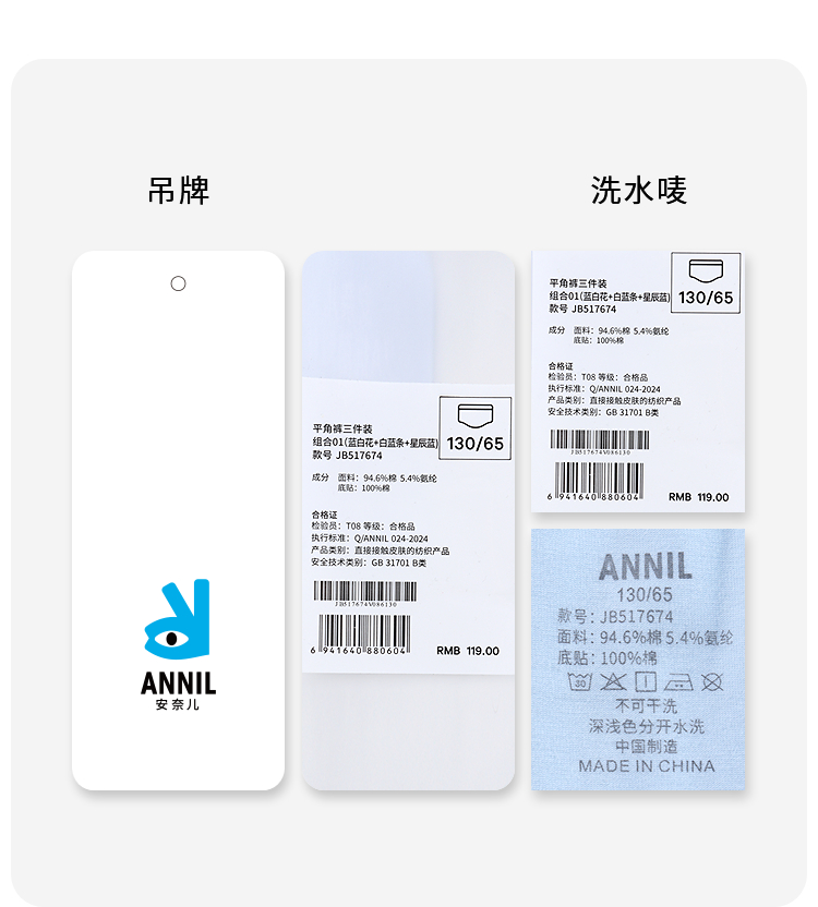 男童平角裤三件装春季新款安奈儿童装JB517674