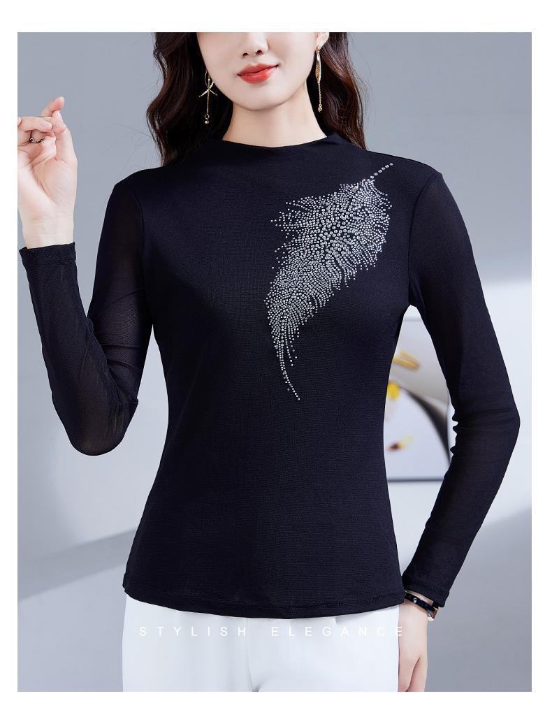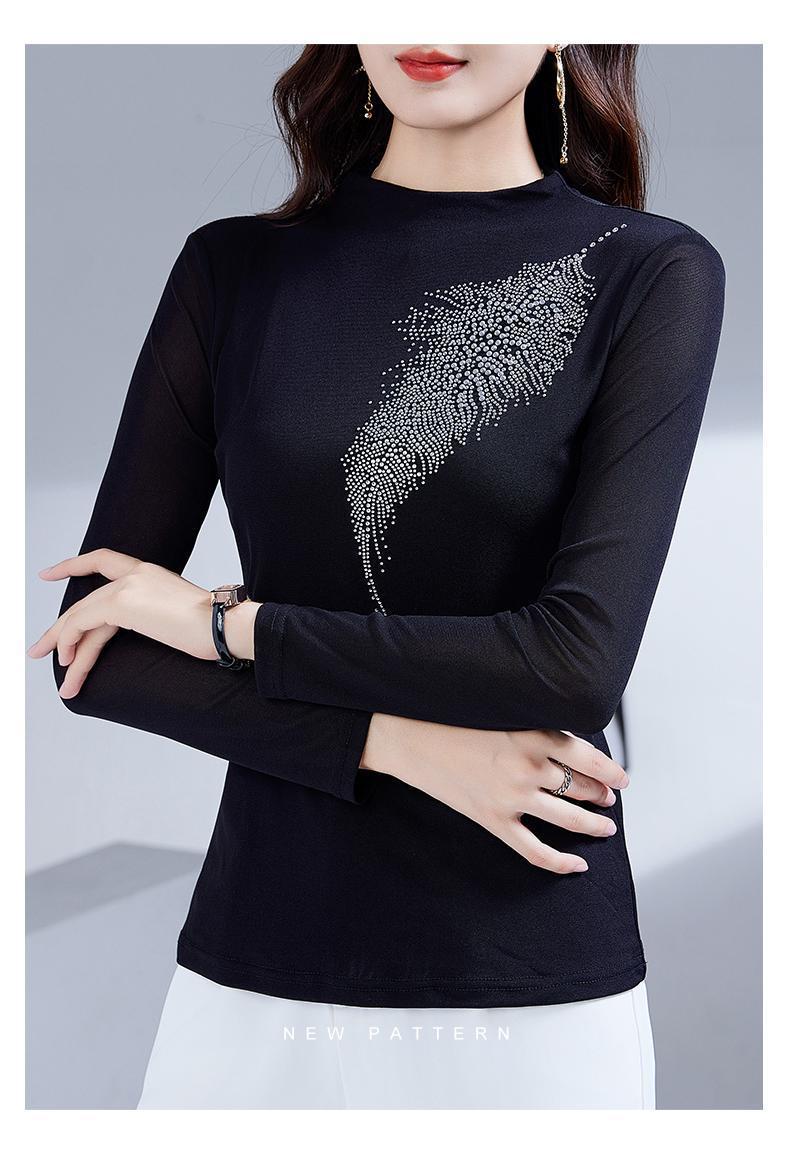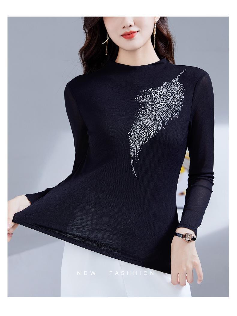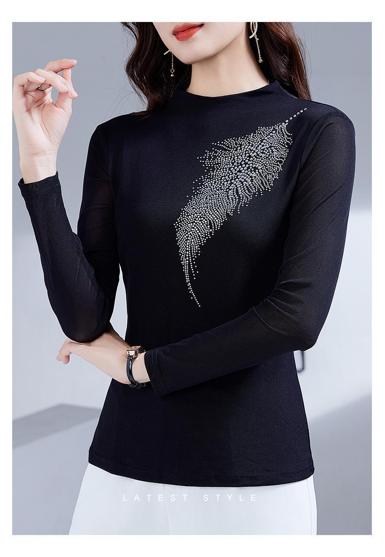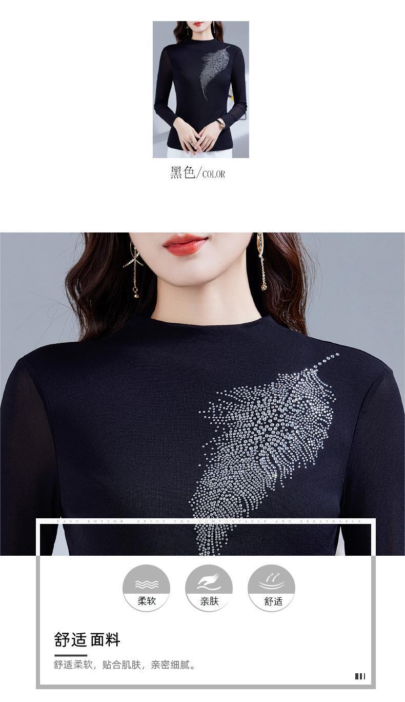 雀说烫钻内搭网纱打底衫女秋冬新款洋气纱衣小衫纯色百搭长袖T恤AL46909