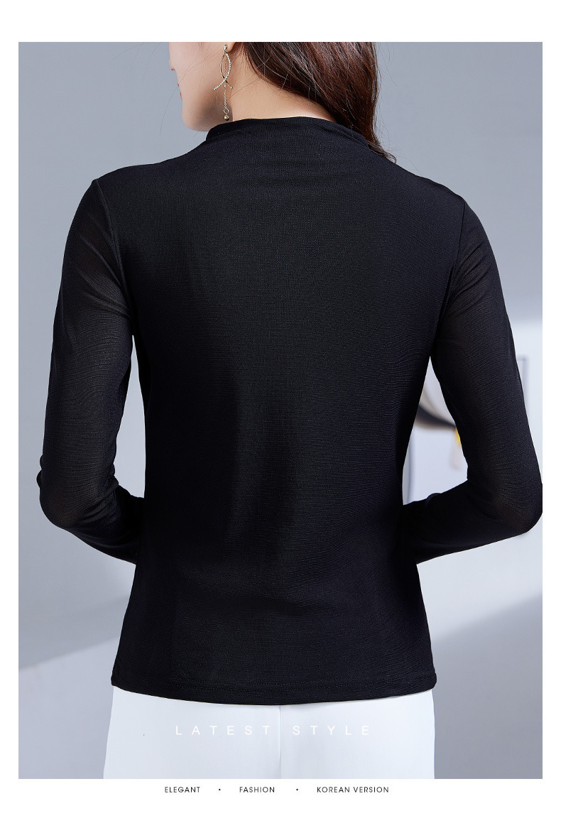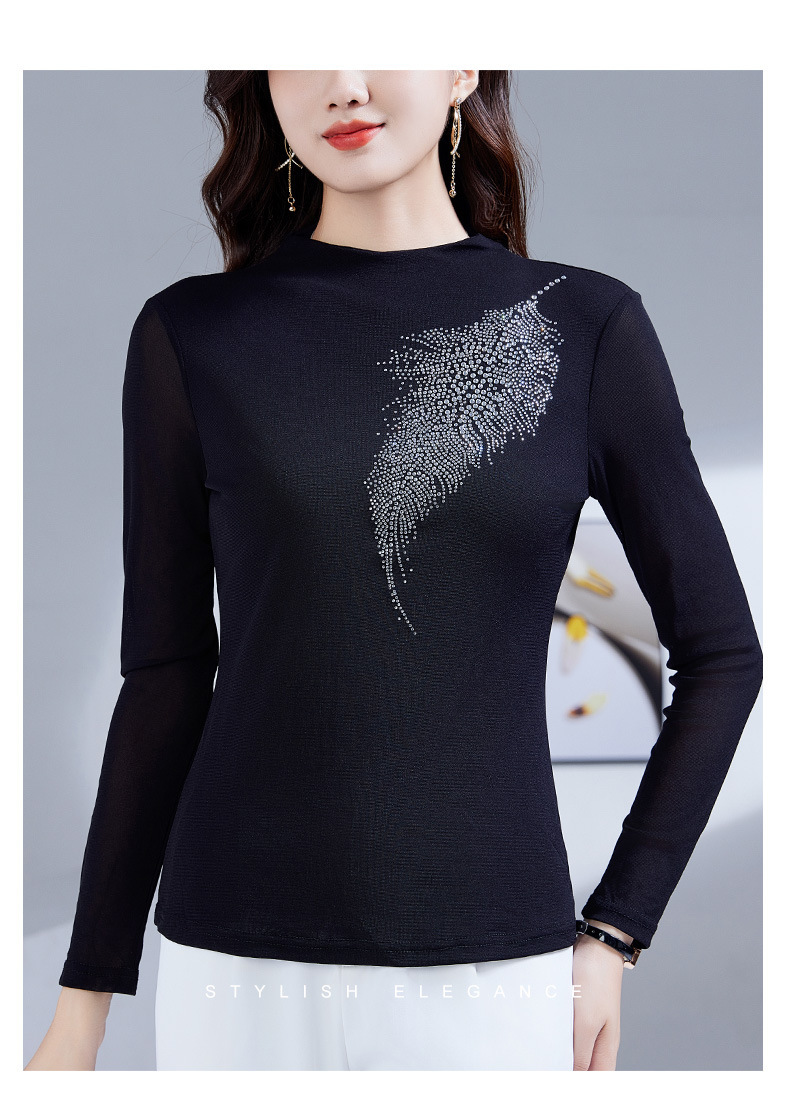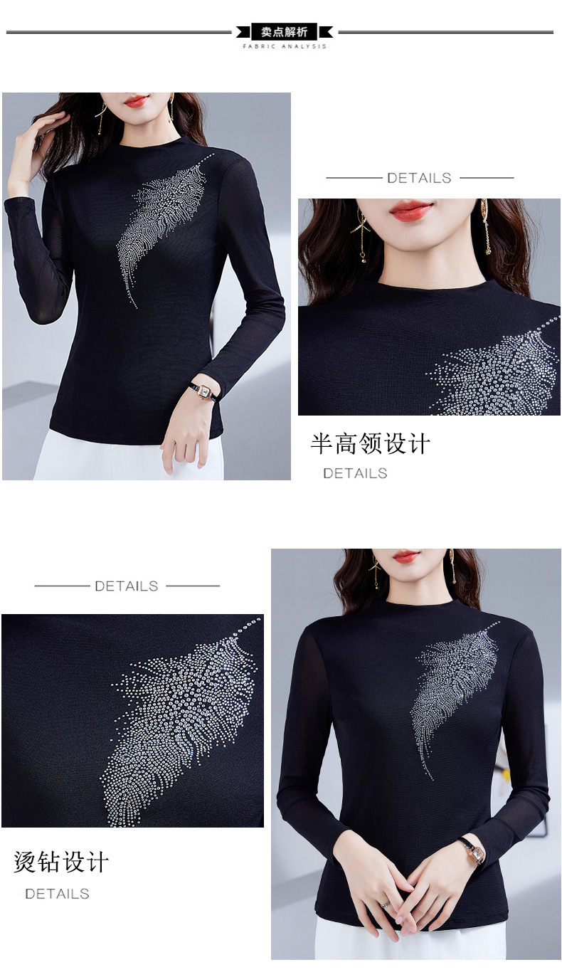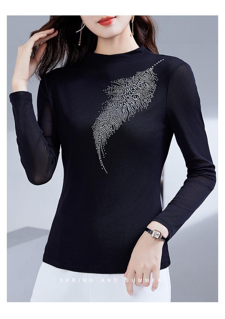 雀说烫钻内搭网纱打底衫女秋冬新款洋气纱衣小衫纯色百搭长袖T恤AL46909