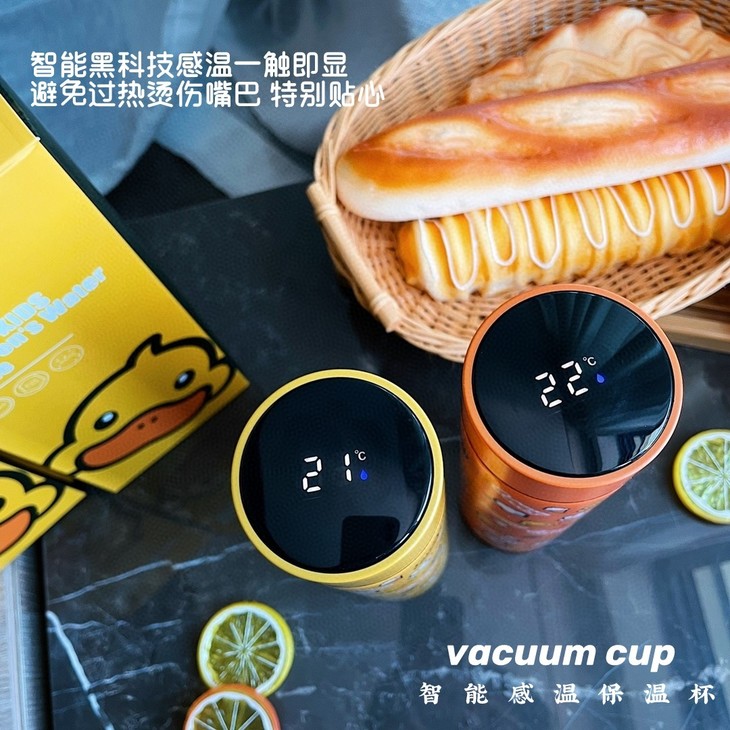 小黄鸭智能保温杯304不锈钢触摸测温杯500ml-工厂直发~