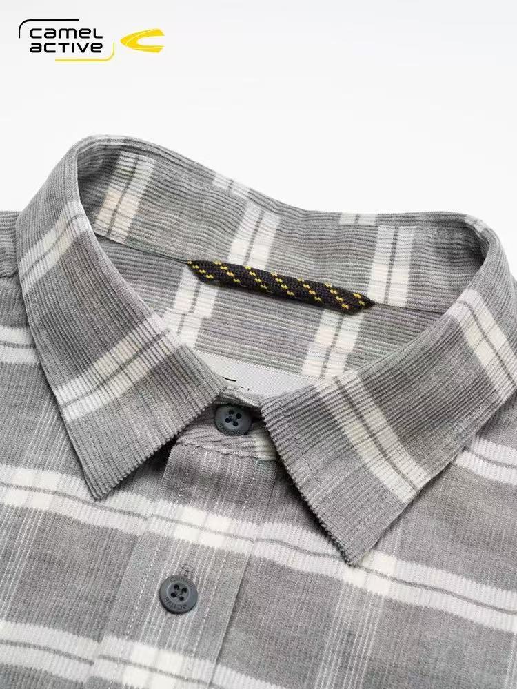 【富临店】骆驼动感冬季保暖磨毛纯棉格子衬衣