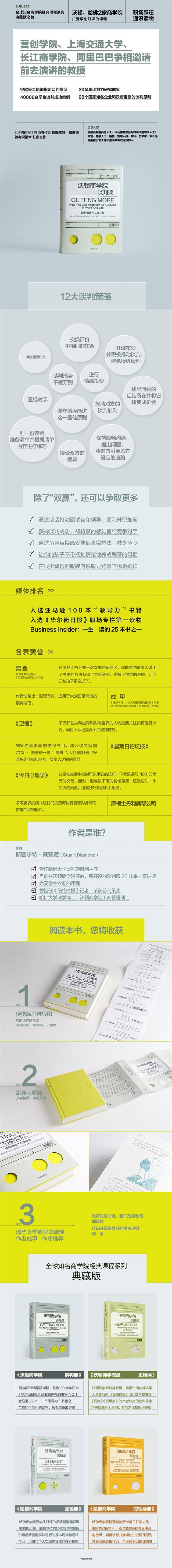 每一年,只有很少的学生才能进入沃顿商学院,成为特朗普和巴菲特的校友。而此书作者斯图尔特·戴蒙德的谈判课,连续13年都是沃顿商学院抢手的课程。这本书是对传统观念的挑战,比起“双赢”,此书将教会你更的谈判策略。作者说的谈判蕴含在日常生活中的方方面面:旅行和购物、职场精进、伴侣和家庭、竞争对手、文化差异等。