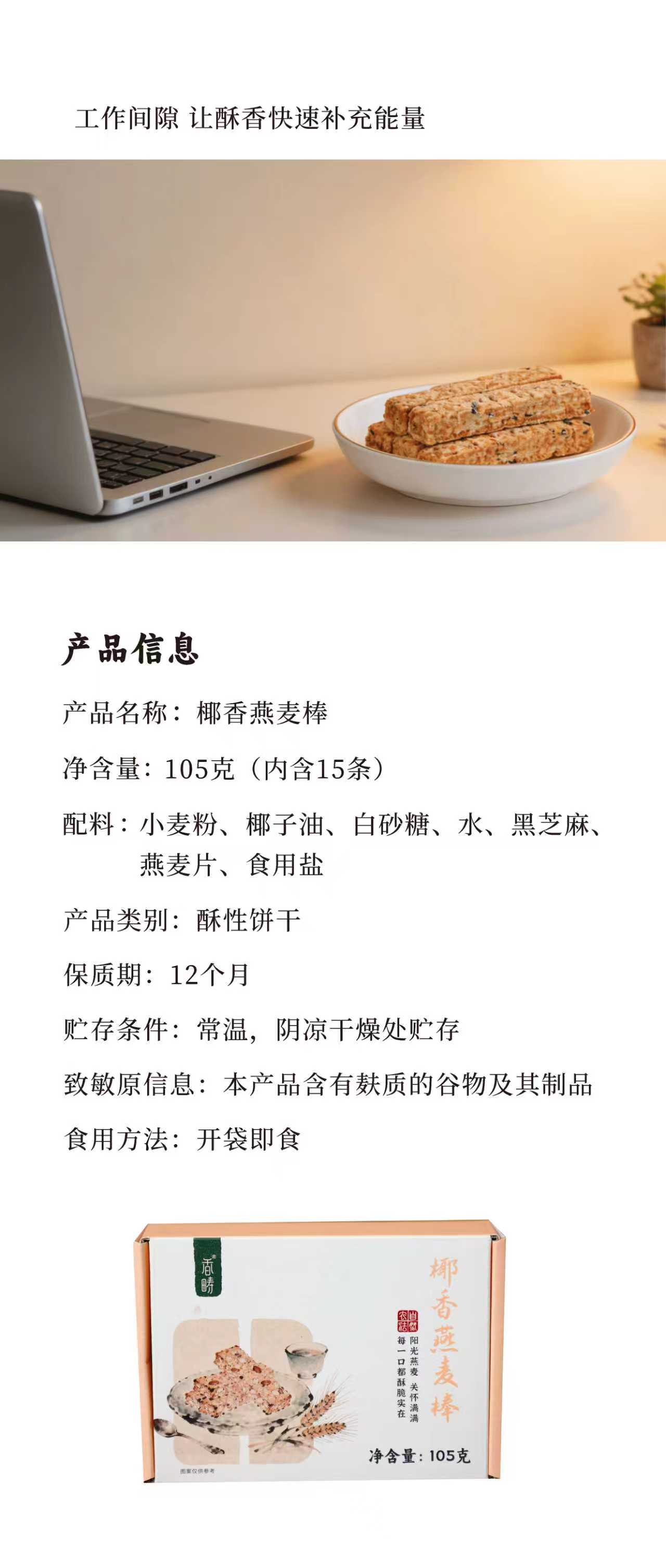 香畴椰香燕麦棒 | 105g/盒(15条)36层酥脆不甜腻 醇香回味 能量棒饼干 谦益农业