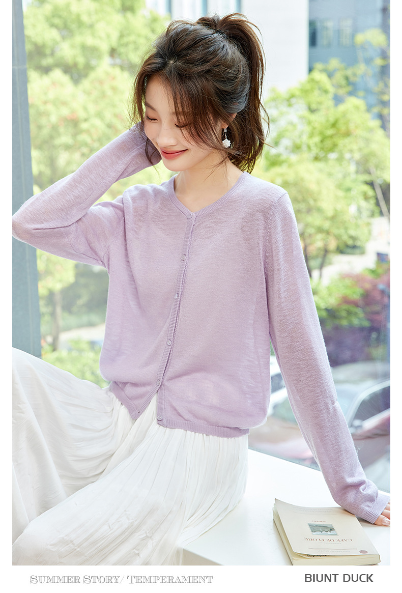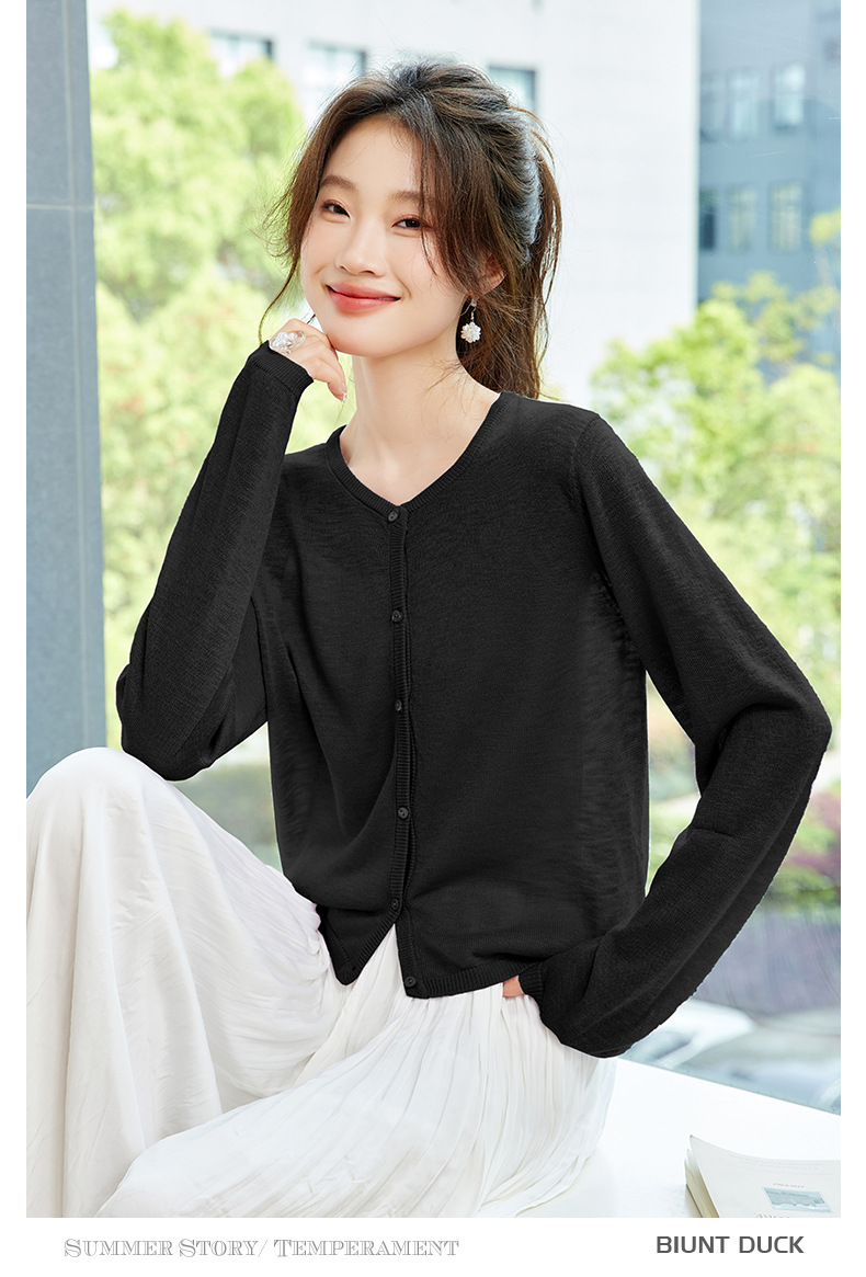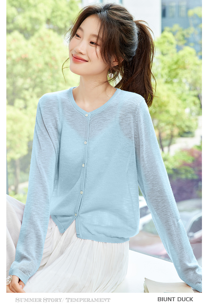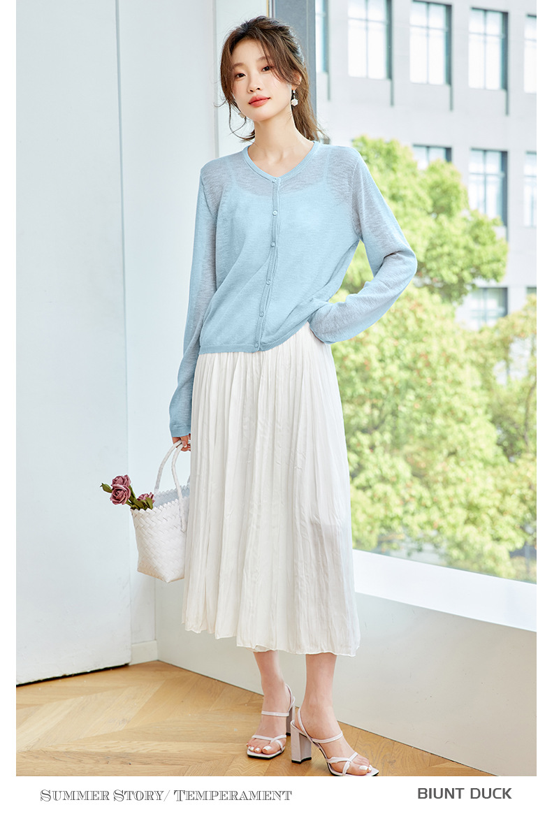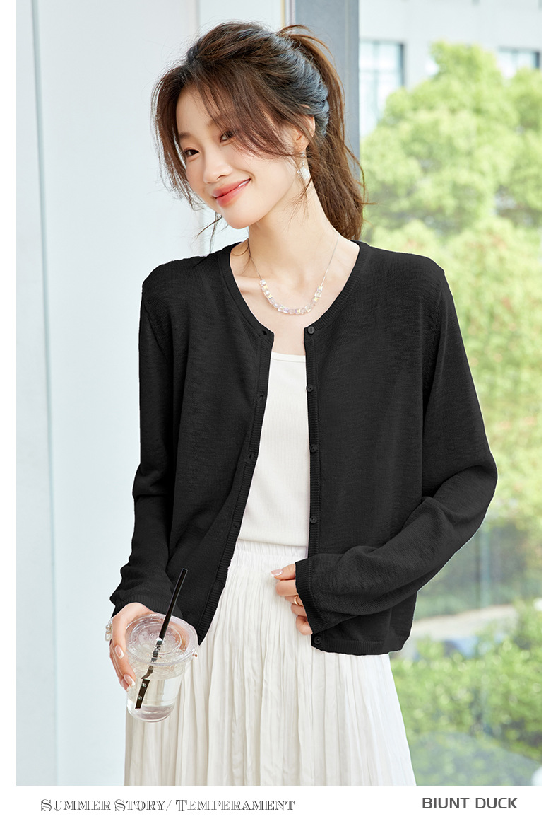 CC-SD7058夏季新款简约冰丝针织开衫女薄款外搭配裙子披肩长袖空调防晒衫