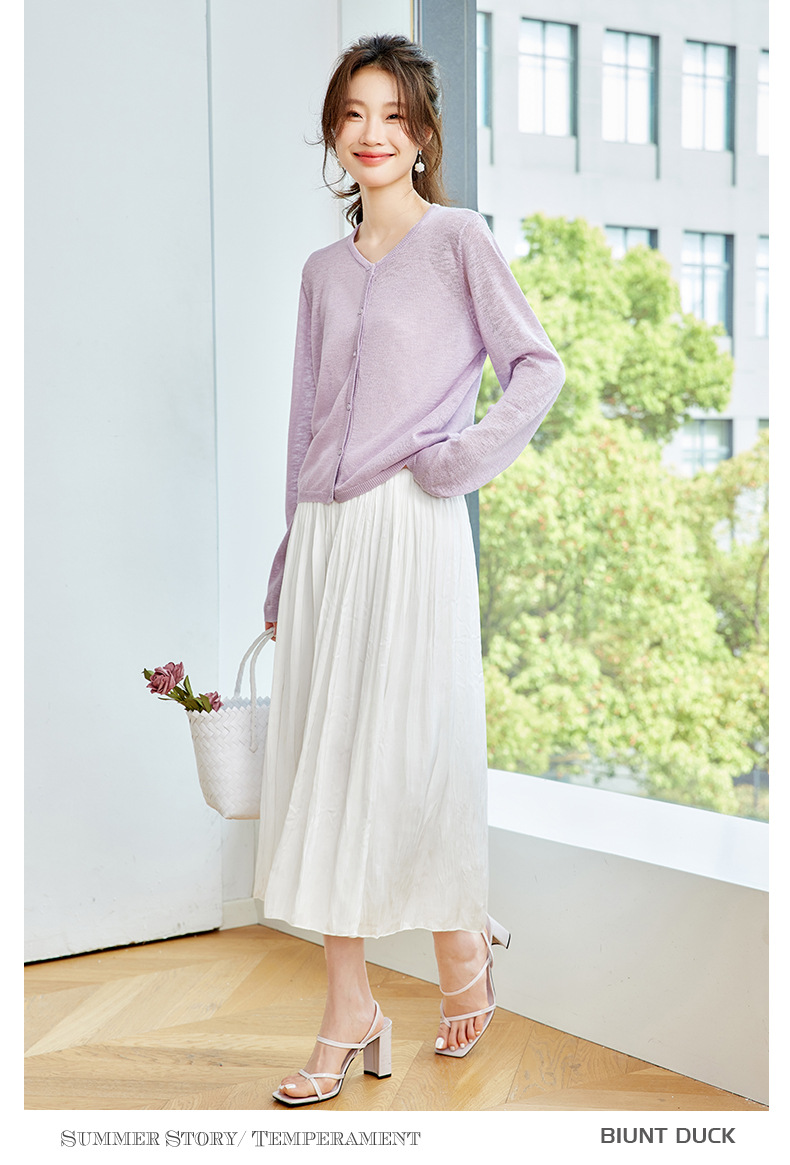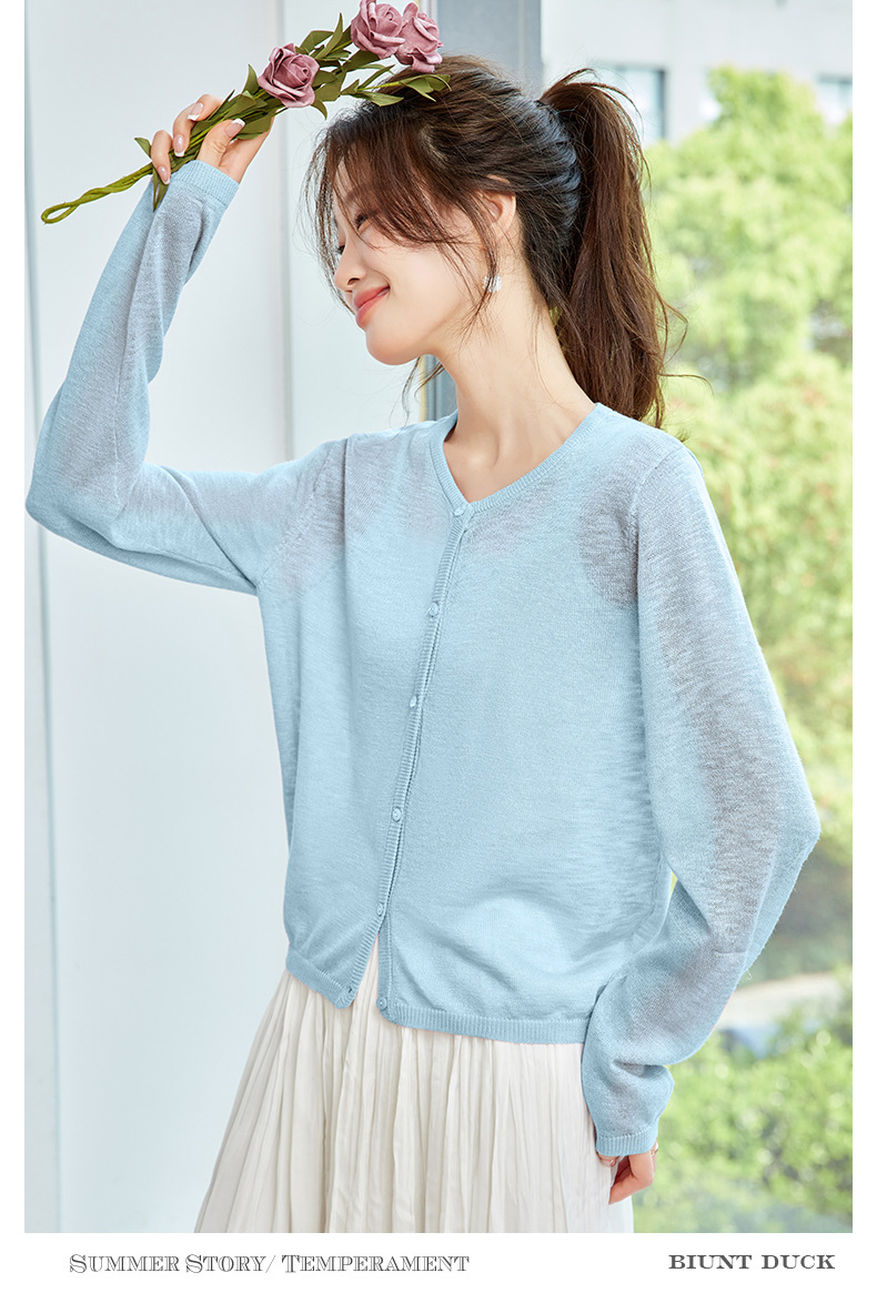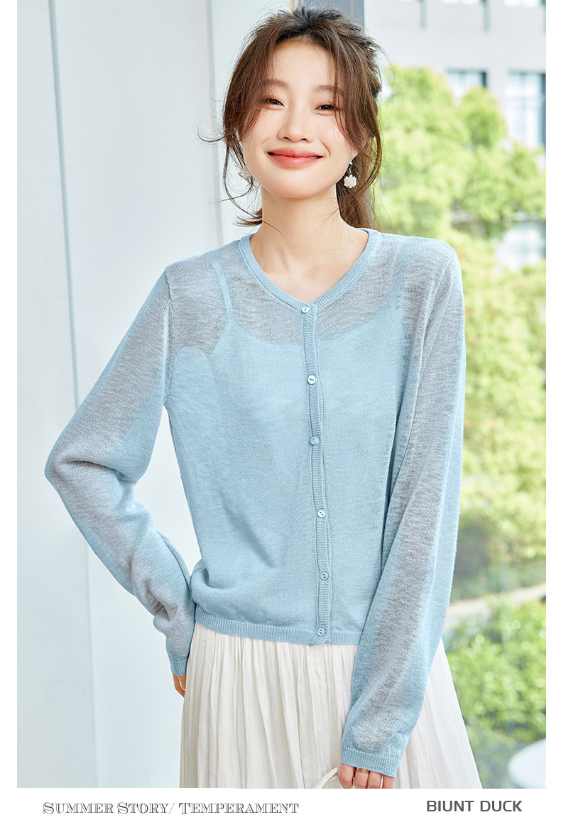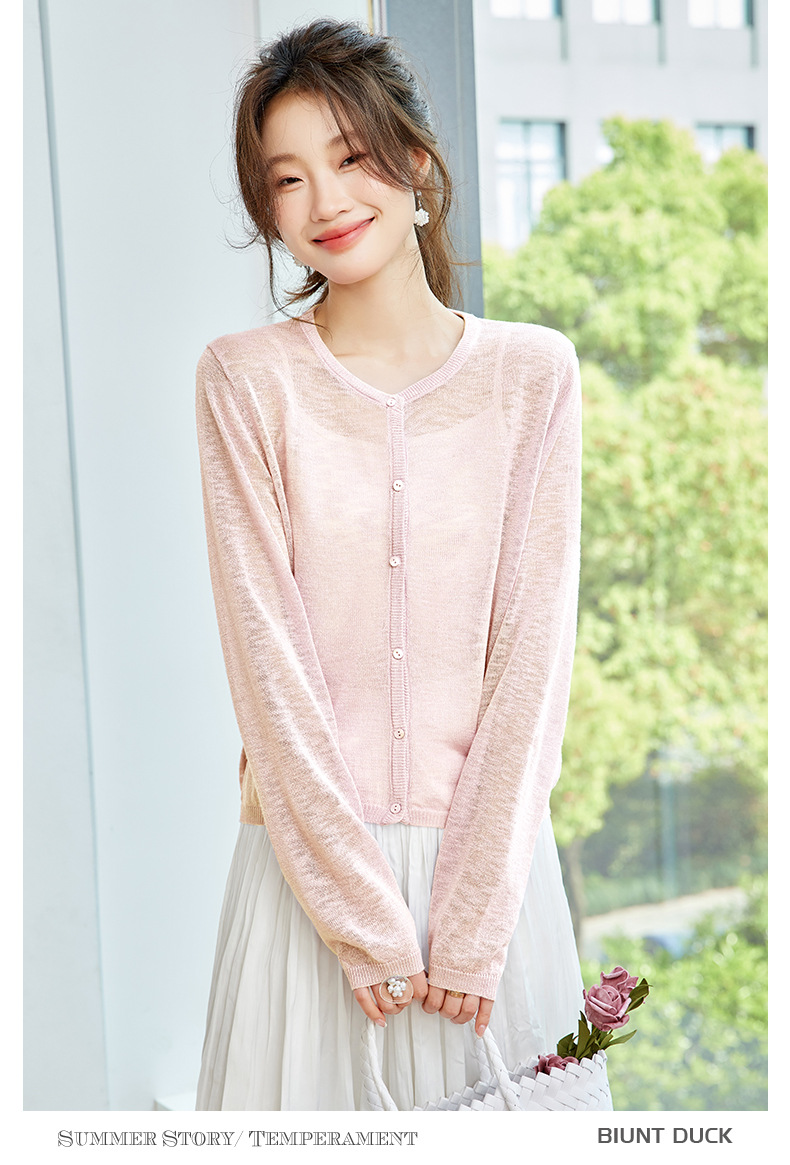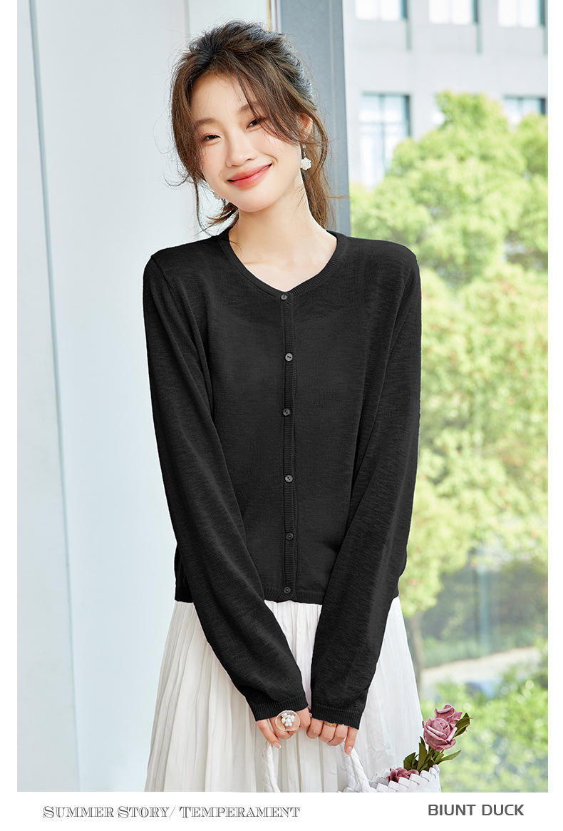 CC-SD7058夏季新款简约冰丝针织开衫女薄款外搭配裙子披肩长袖空调防晒衫