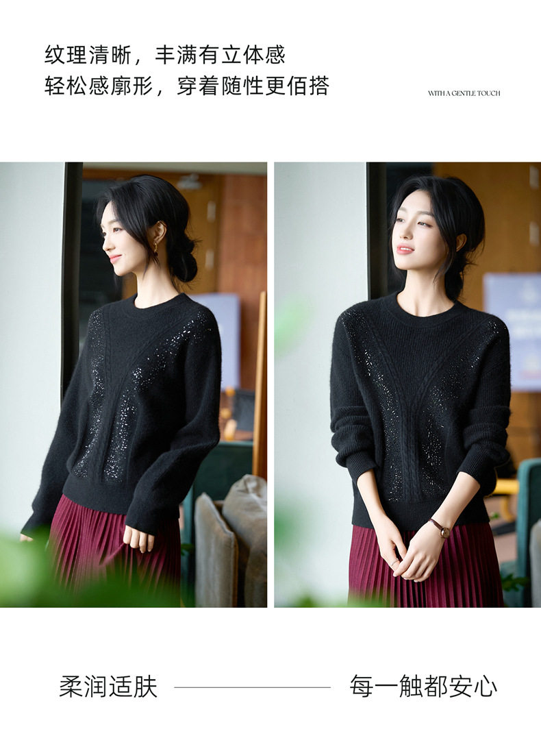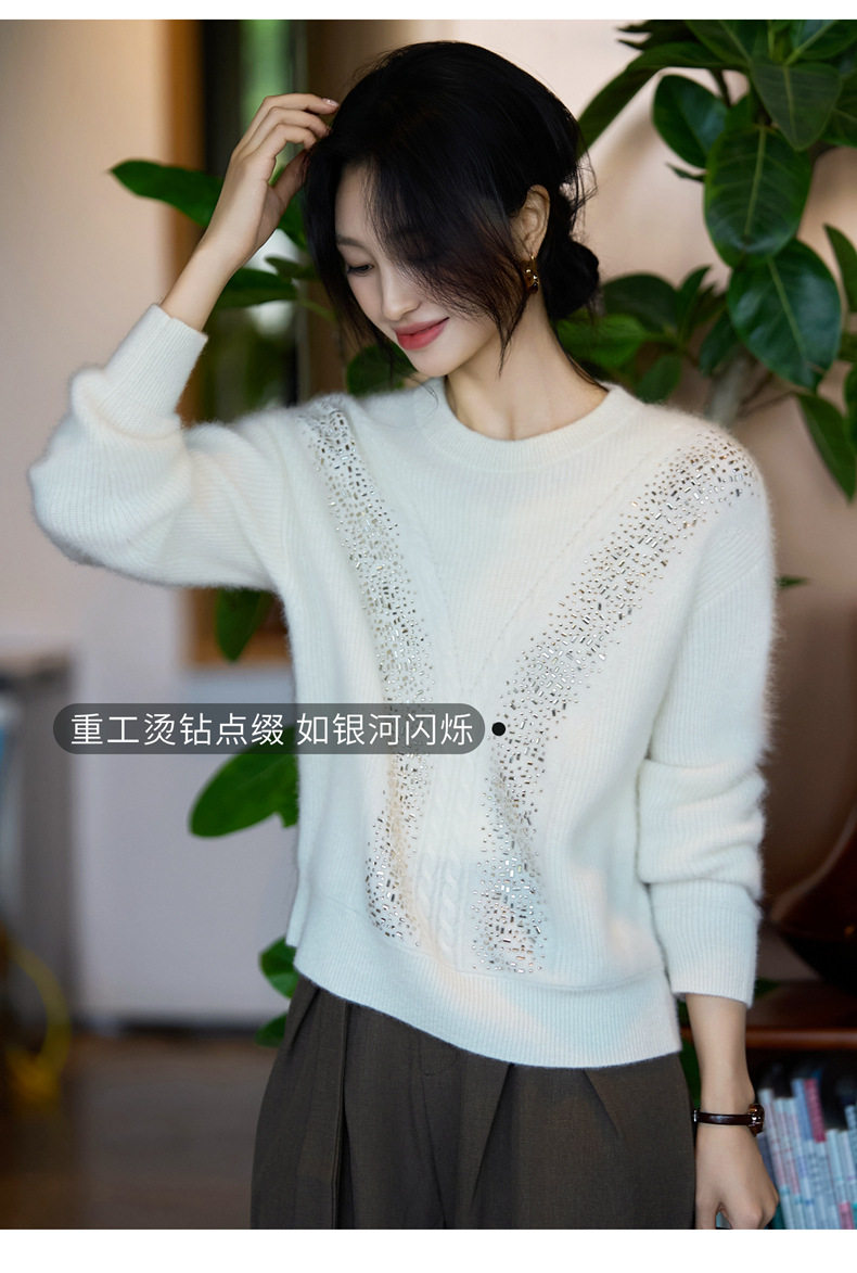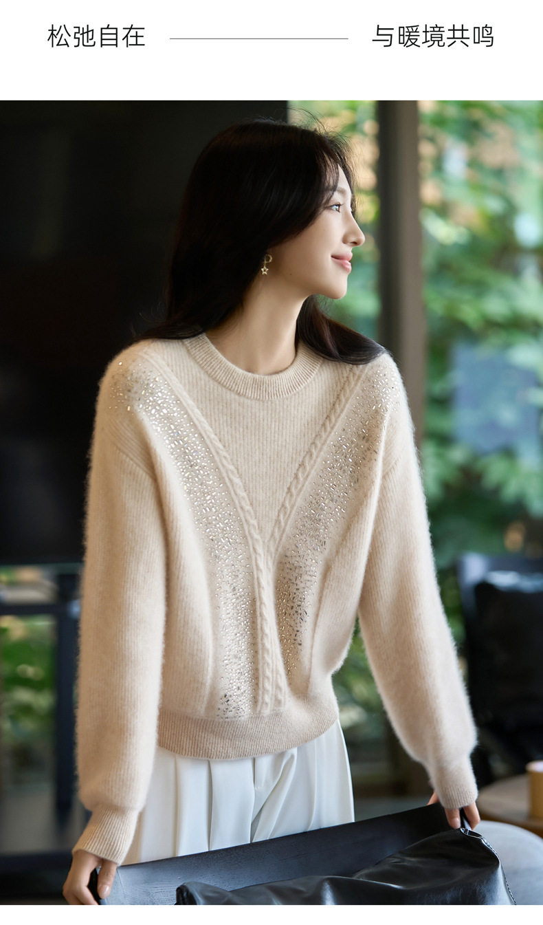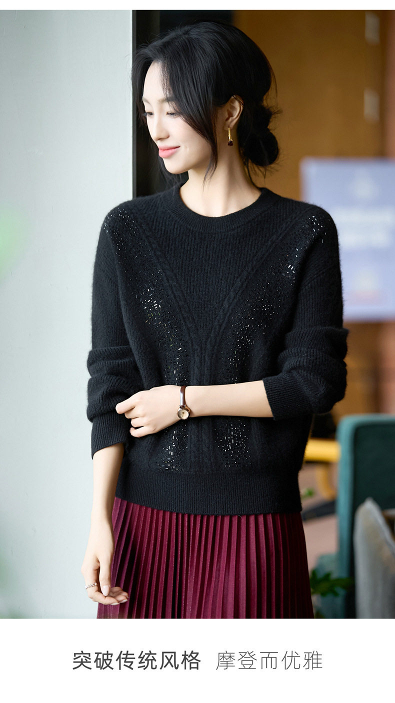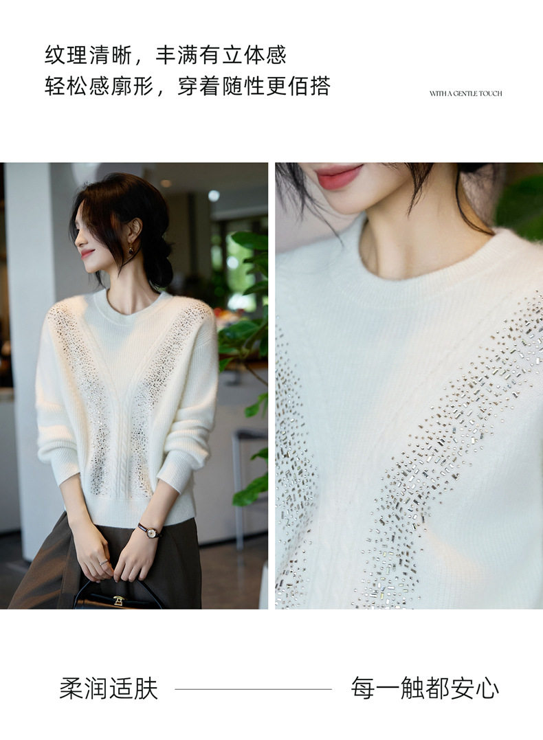 「自」全新升级【铂金会员257/天猫339/差价82】(22809)洛诗琳气质圆领加厚羊毛衫2025冬季重工烫钻长袖宽松针织毛衣