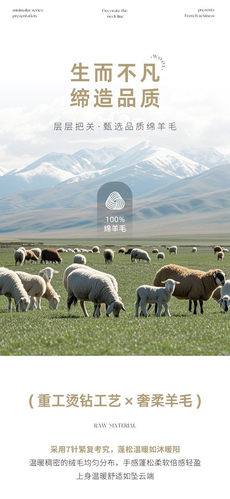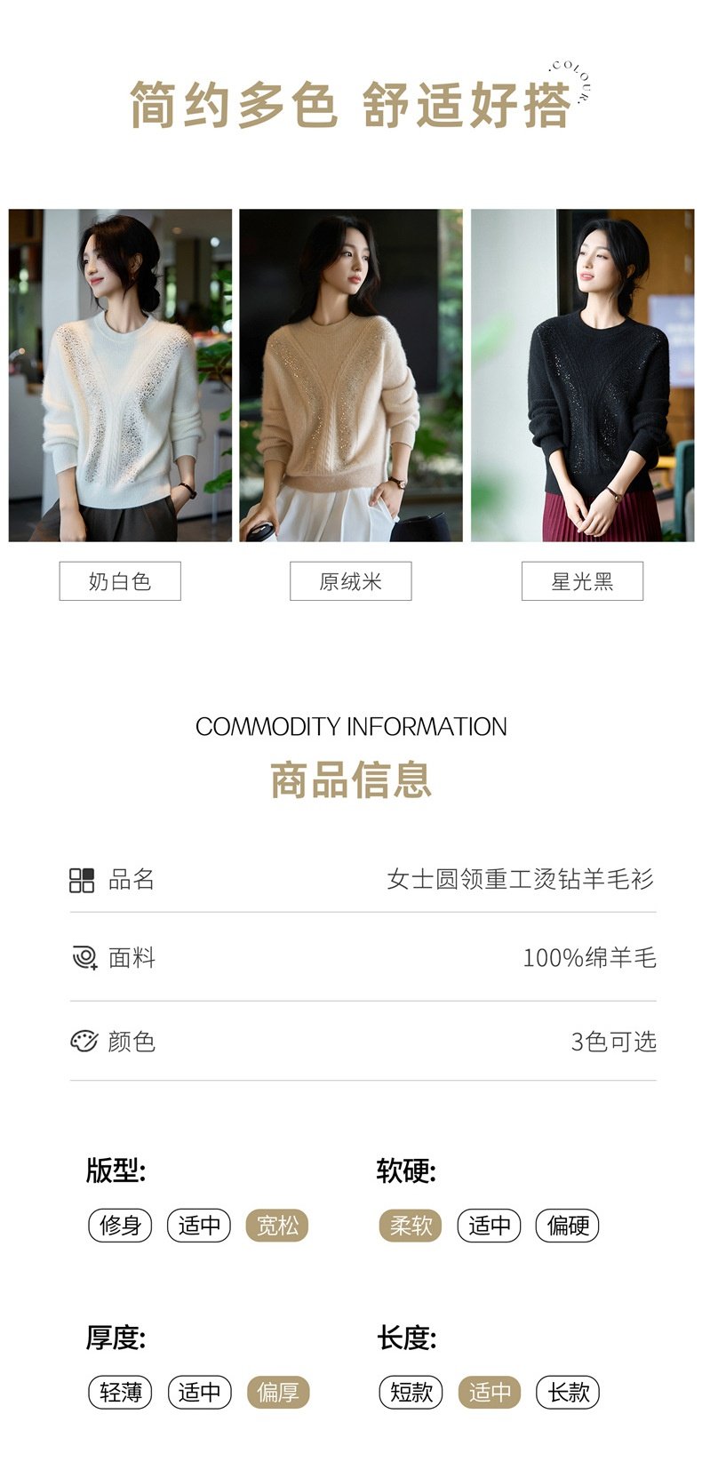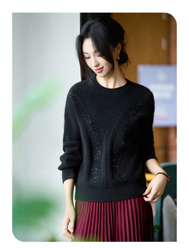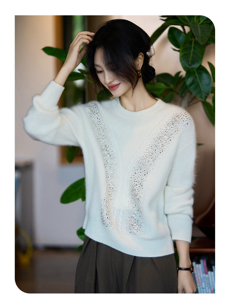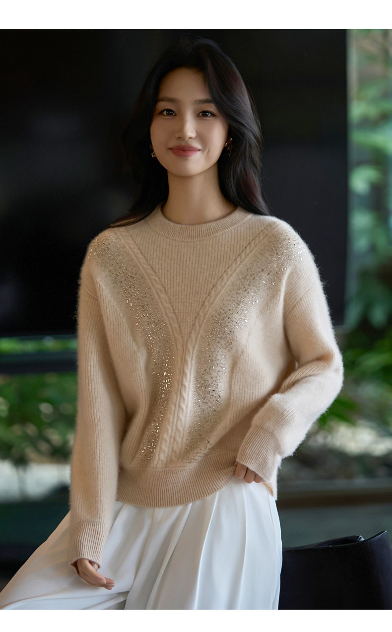 「自」全新升级【铂金会员257/天猫339/差价82】(22809)洛诗琳气质圆领加厚羊毛衫2025冬季重工烫钻长袖宽松针织毛衣