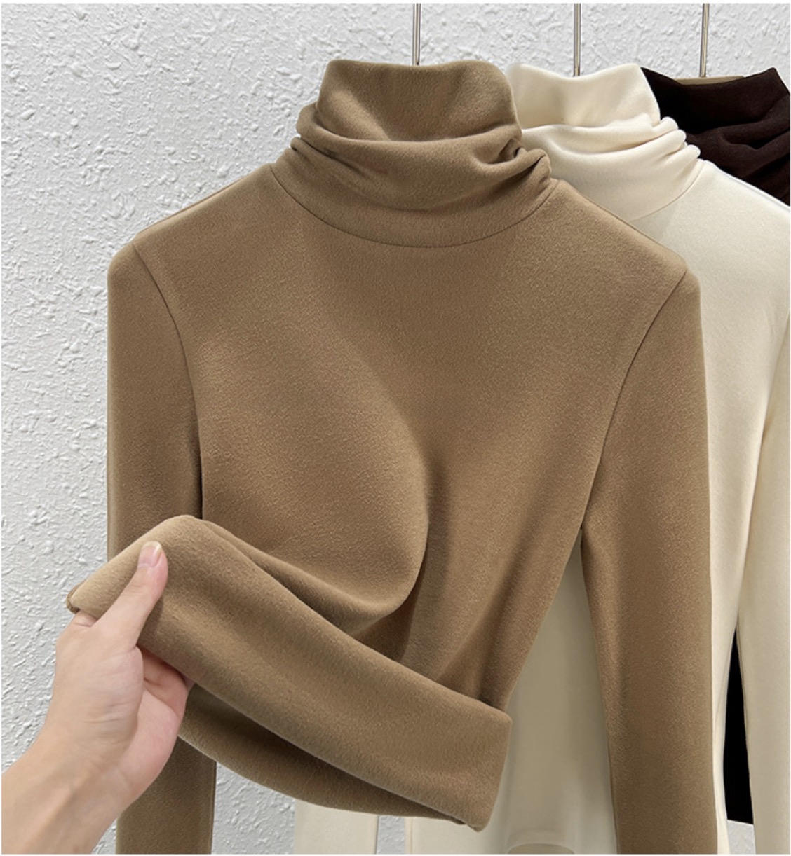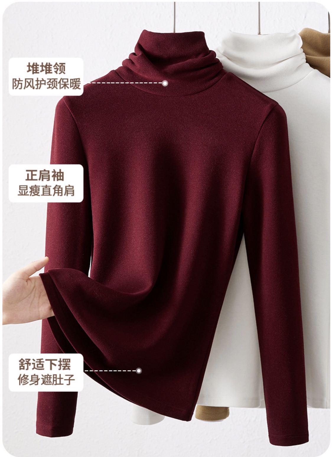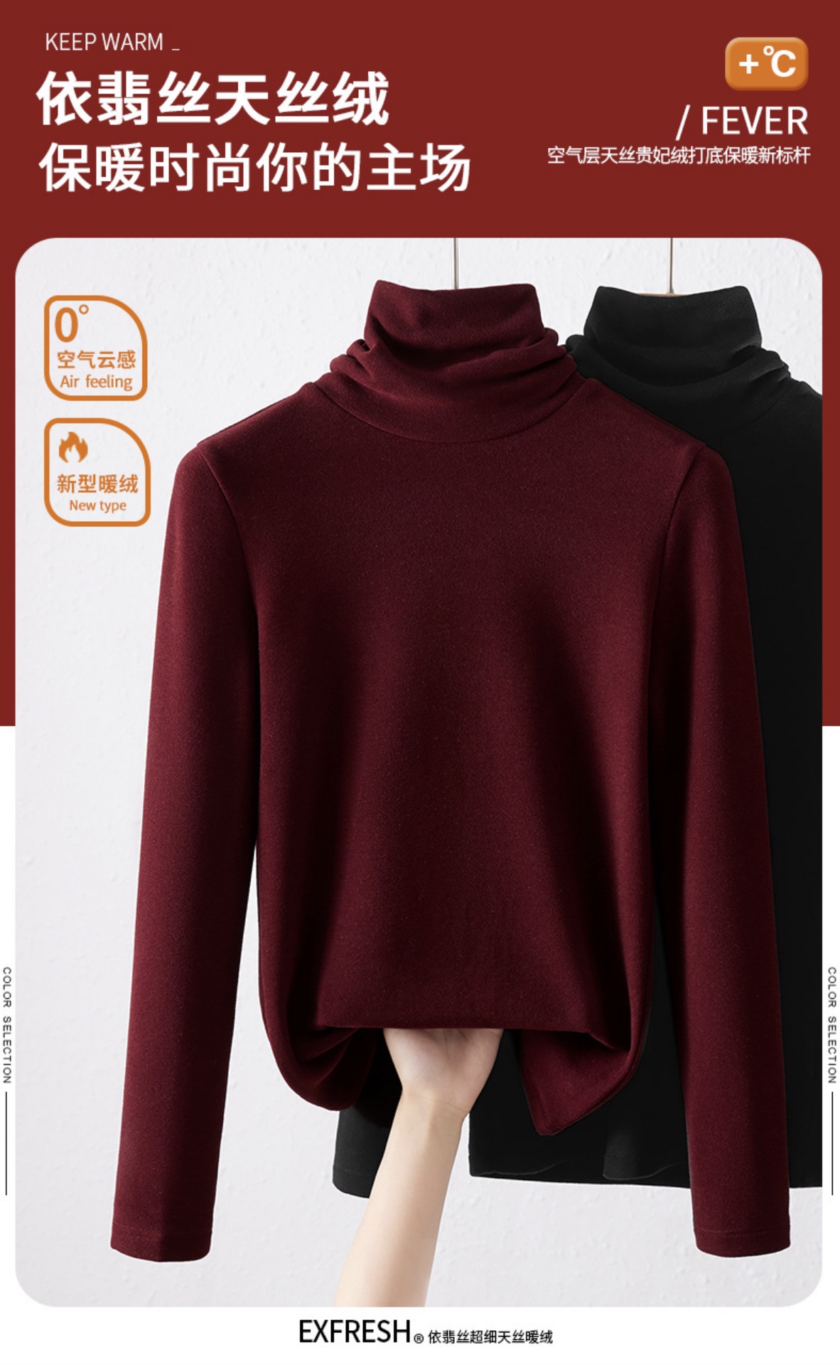 「自j」全新升级【铂金会员119/天猫159/差价40】(01019)洛诗琳高领双面天丝绒打底衫2025秋冬新款磨毛堆堆领上衣