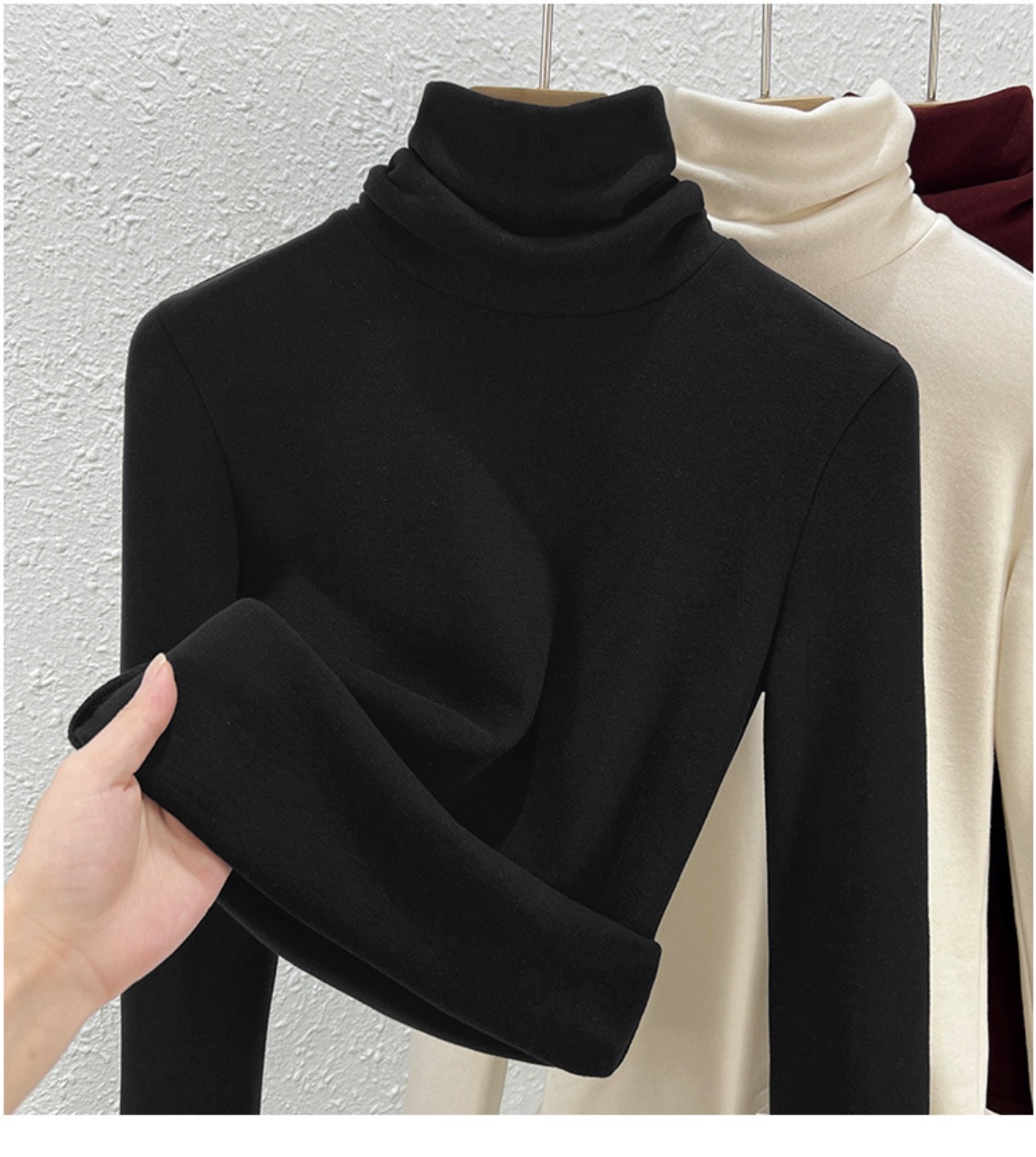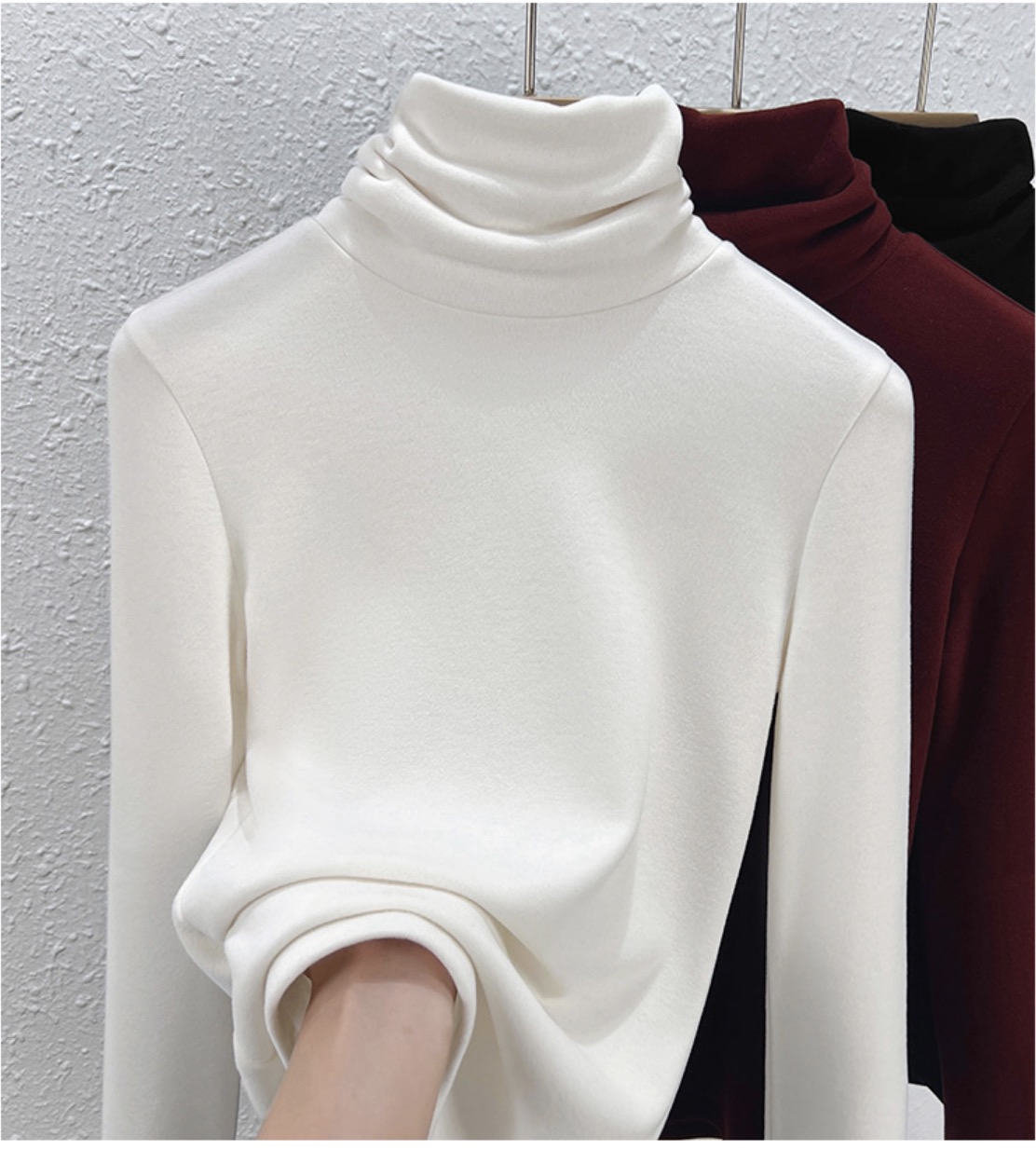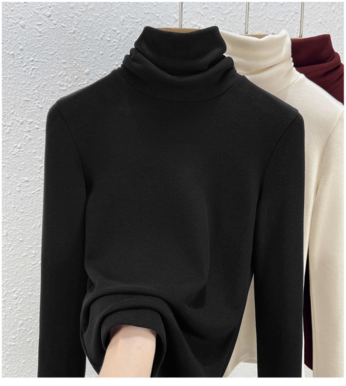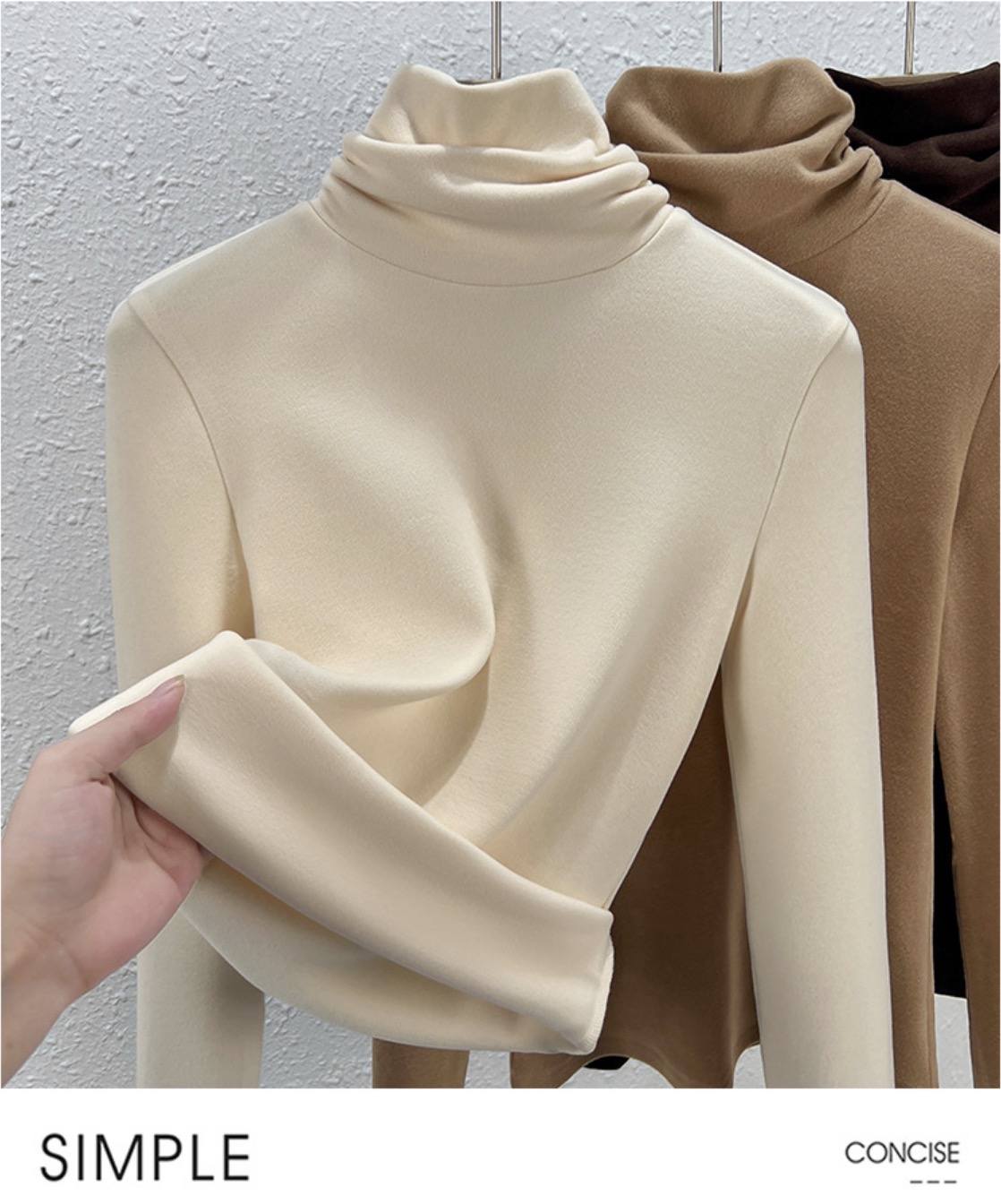 「自j」全新升级【铂金会员119/天猫159/差价40】(01019)洛诗琳高领双面天丝绒打底衫2025秋冬新款磨毛堆堆领上衣