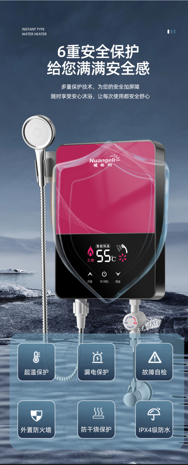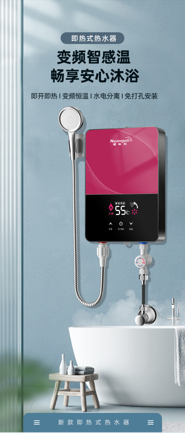 秒出热水❗️【多重防护 精准控温 小巧省空间】德国即热式电热水器恒温家用洗澡智能变频淋浴卫生间小型洗澡神器。hb