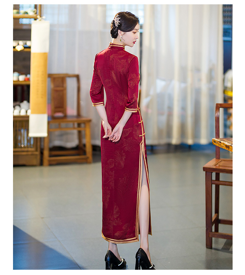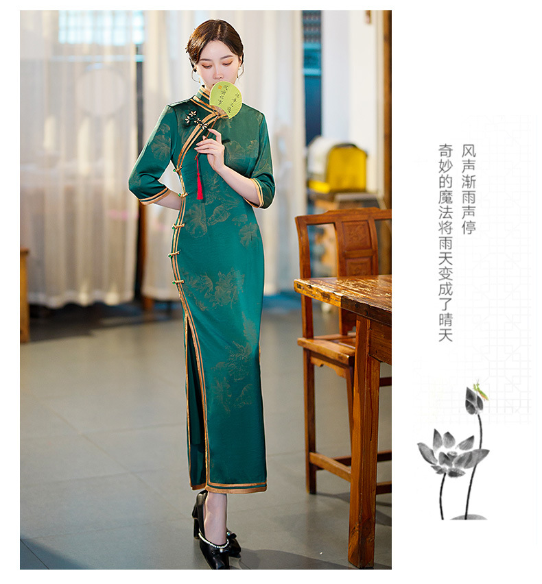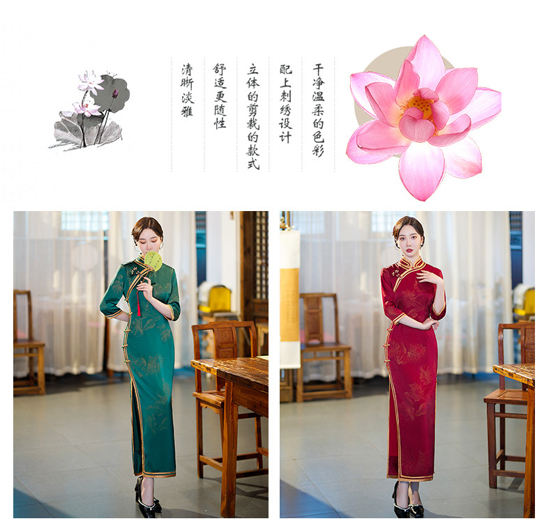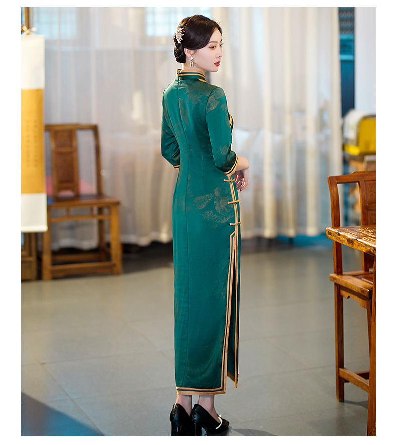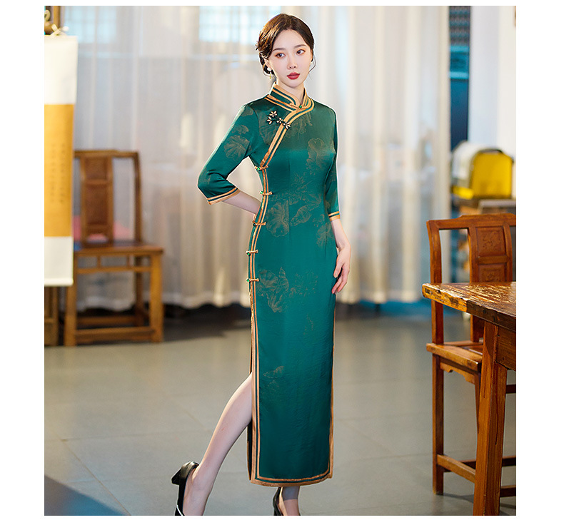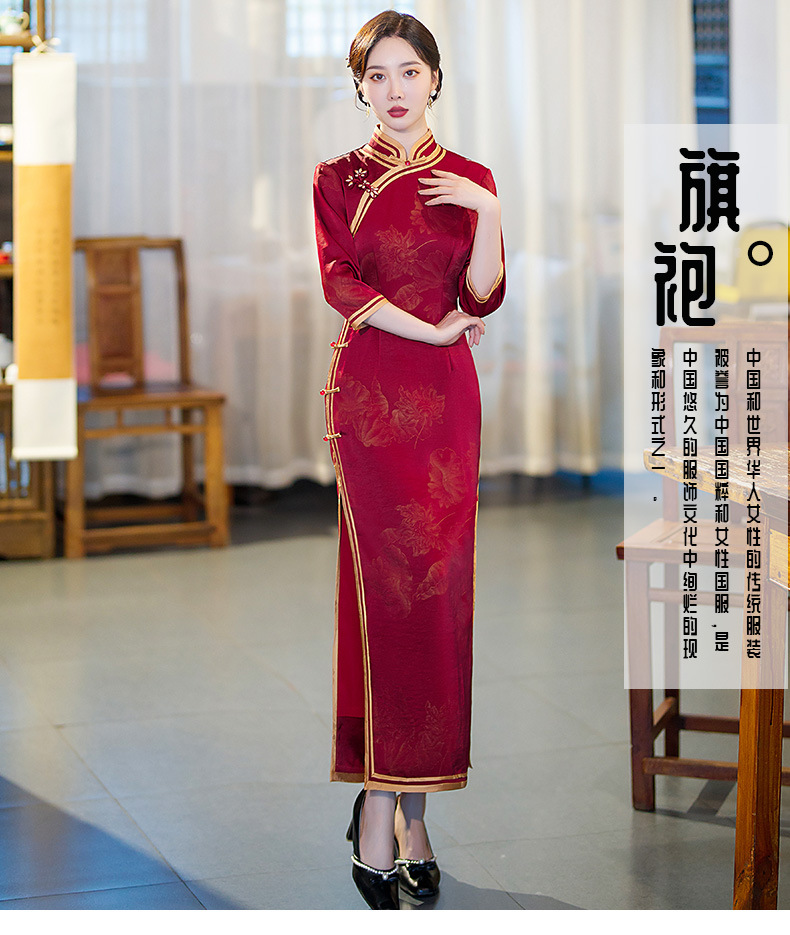 GSJ-9093复古长款蚀骨仿醋酸中国风七分袖立领旗袍
