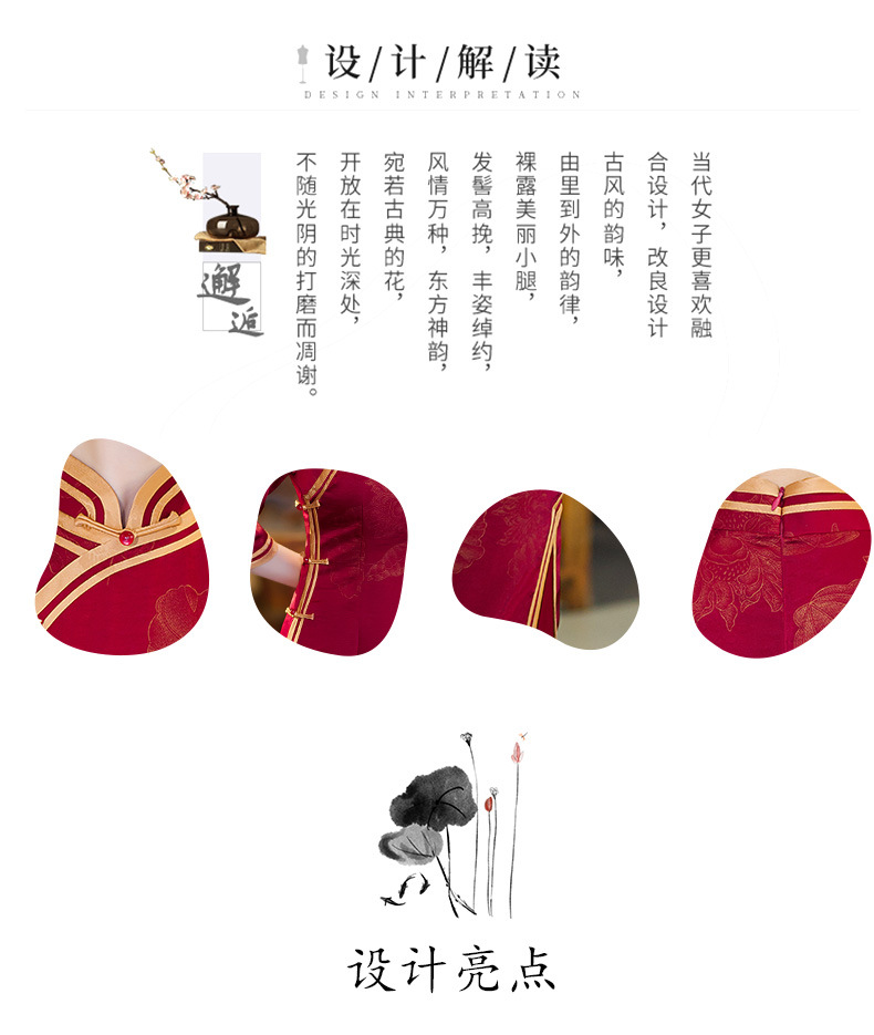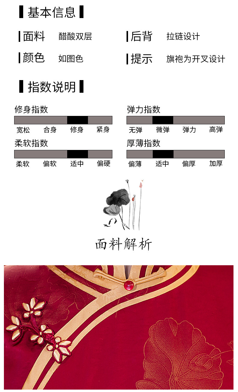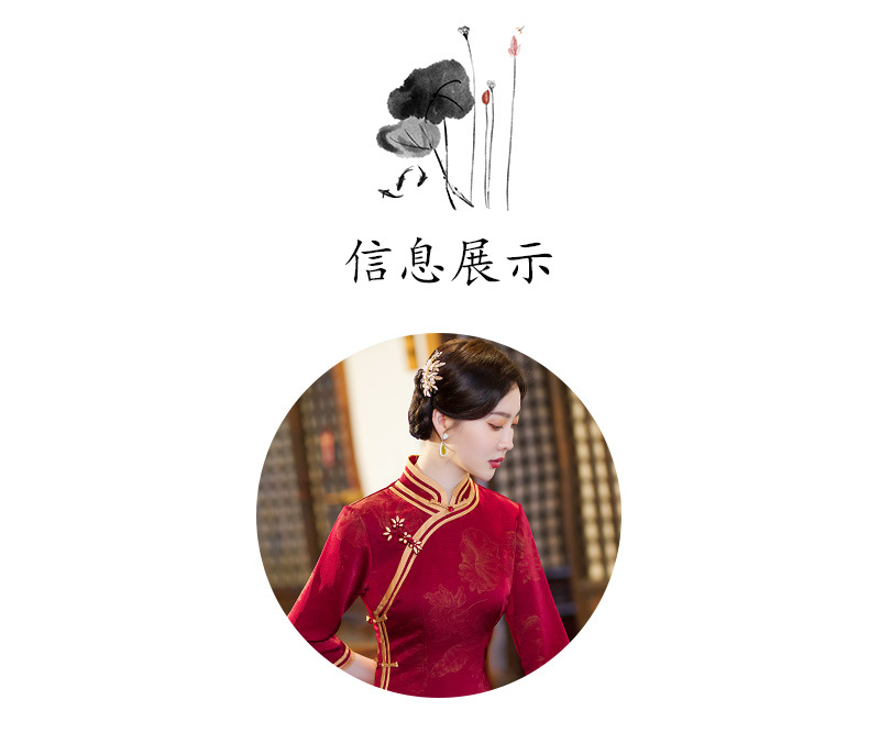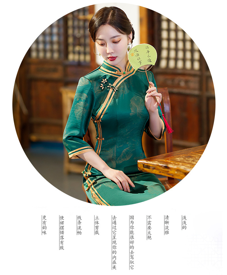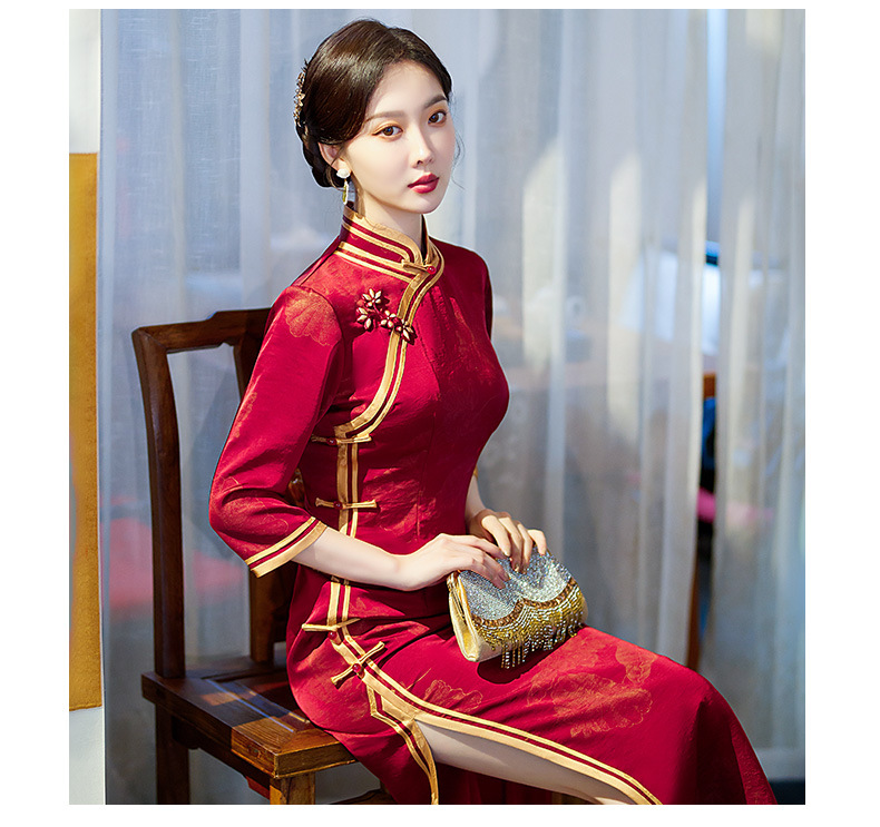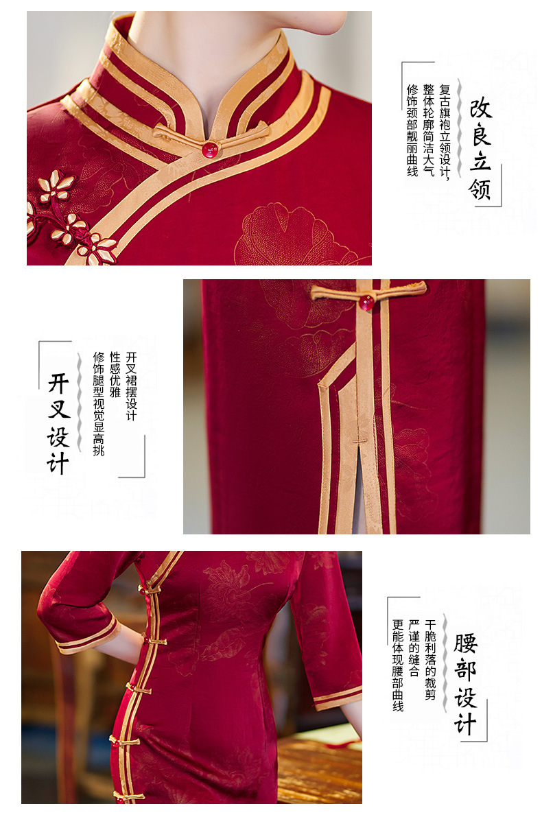 GSJ-9093复古长款蚀骨仿醋酸中国风七分袖立领旗袍