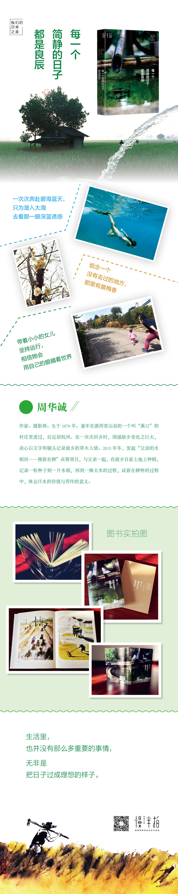 作家,生活美学研究者。“父亲的水稻田”文创项目创始人。著有《草木滋味》《下田》《造物之美》等十余种图书,主编“我们的日常之美”等书系。“父亲的水稻田”摄影作品入展2016年黄山国际乡村摄影节。