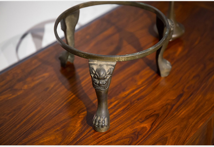 清代 铜制兽面足三弯腿盆架