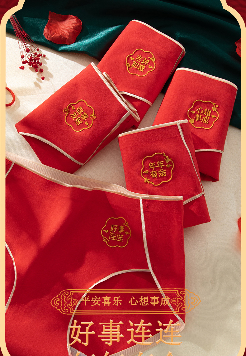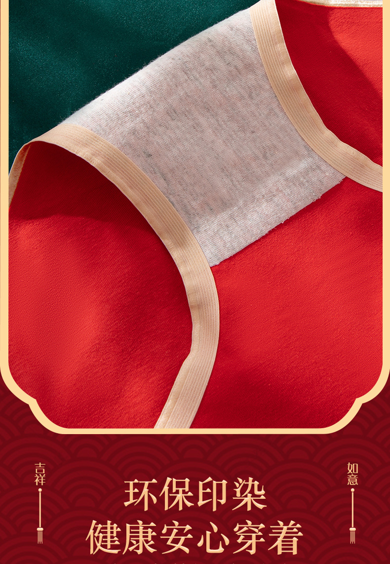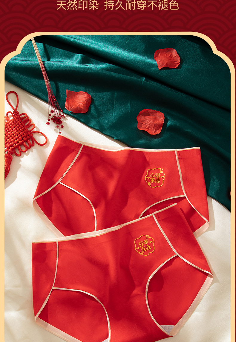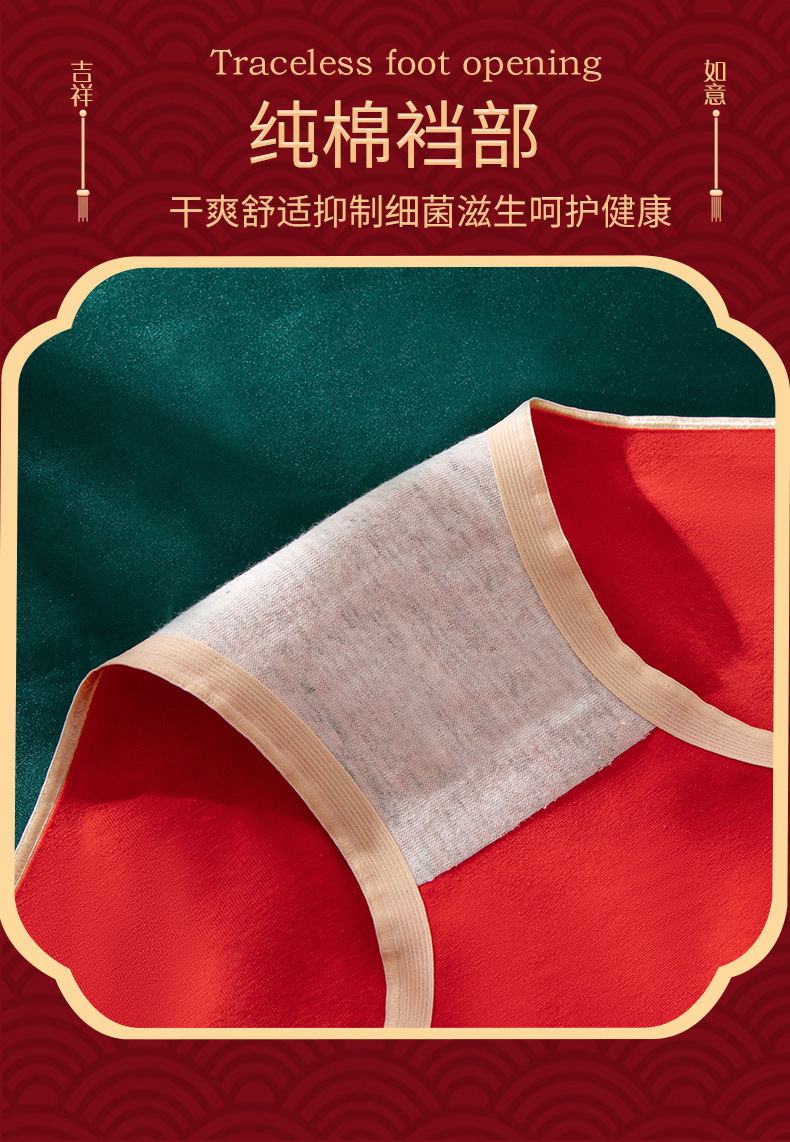 3条盒装喜庆本命年红色内裤女棉中高腰大码三角短裤 WLJ9558