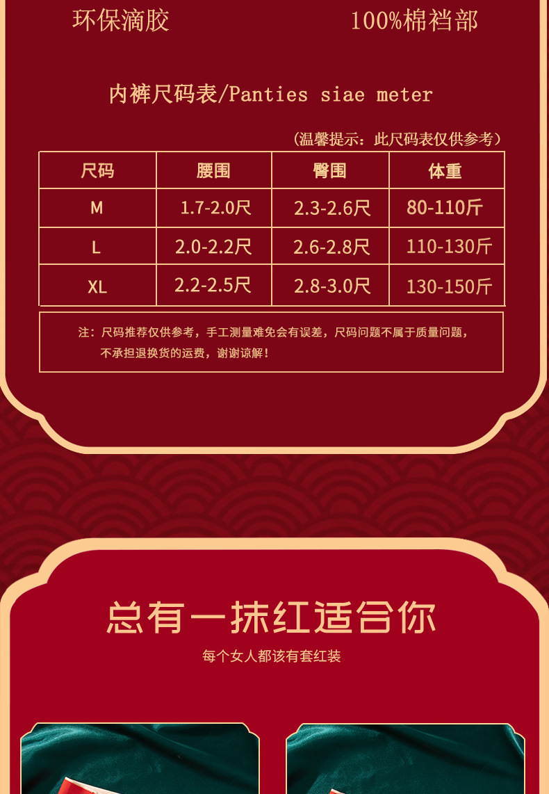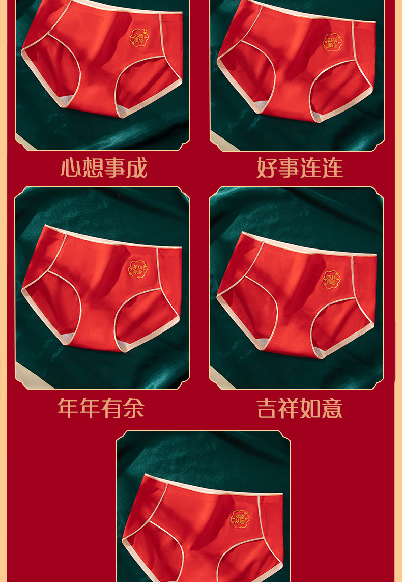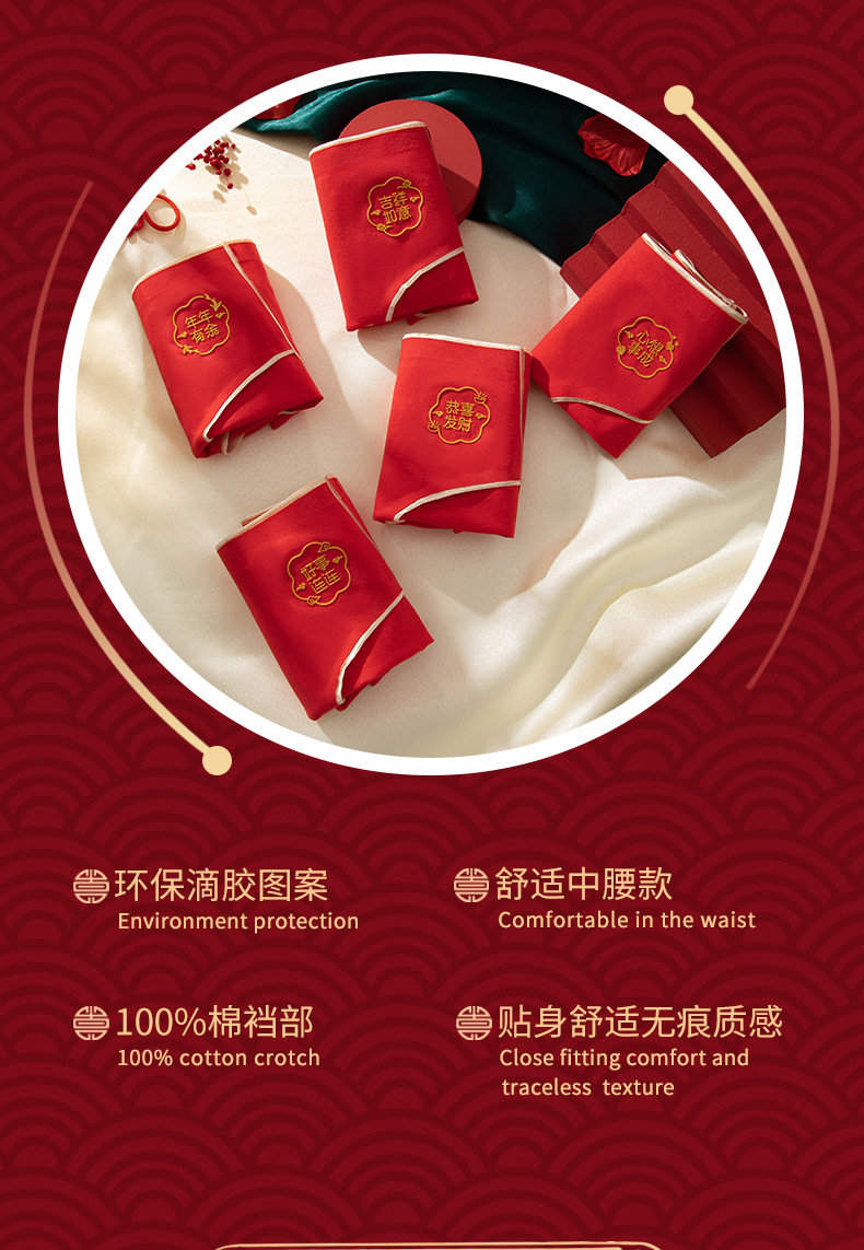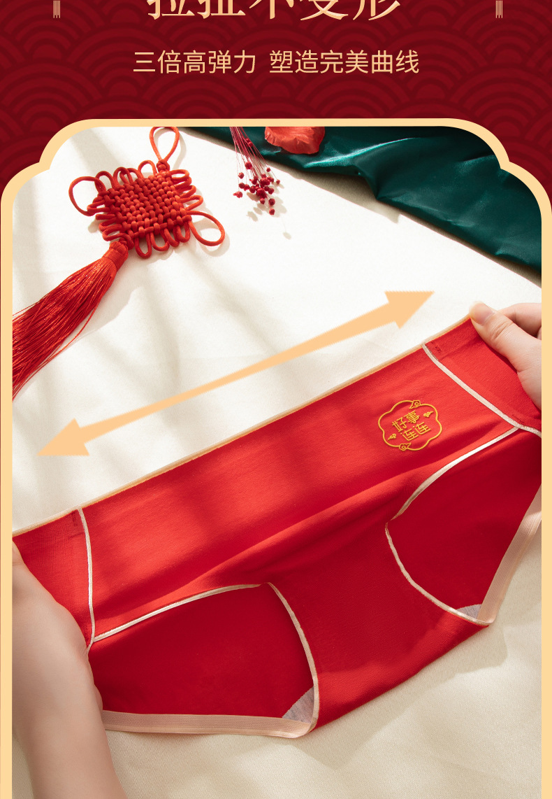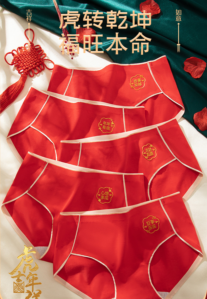 3条盒装喜庆本命年红色内裤女棉中高腰大码三角短裤 WLJ9558