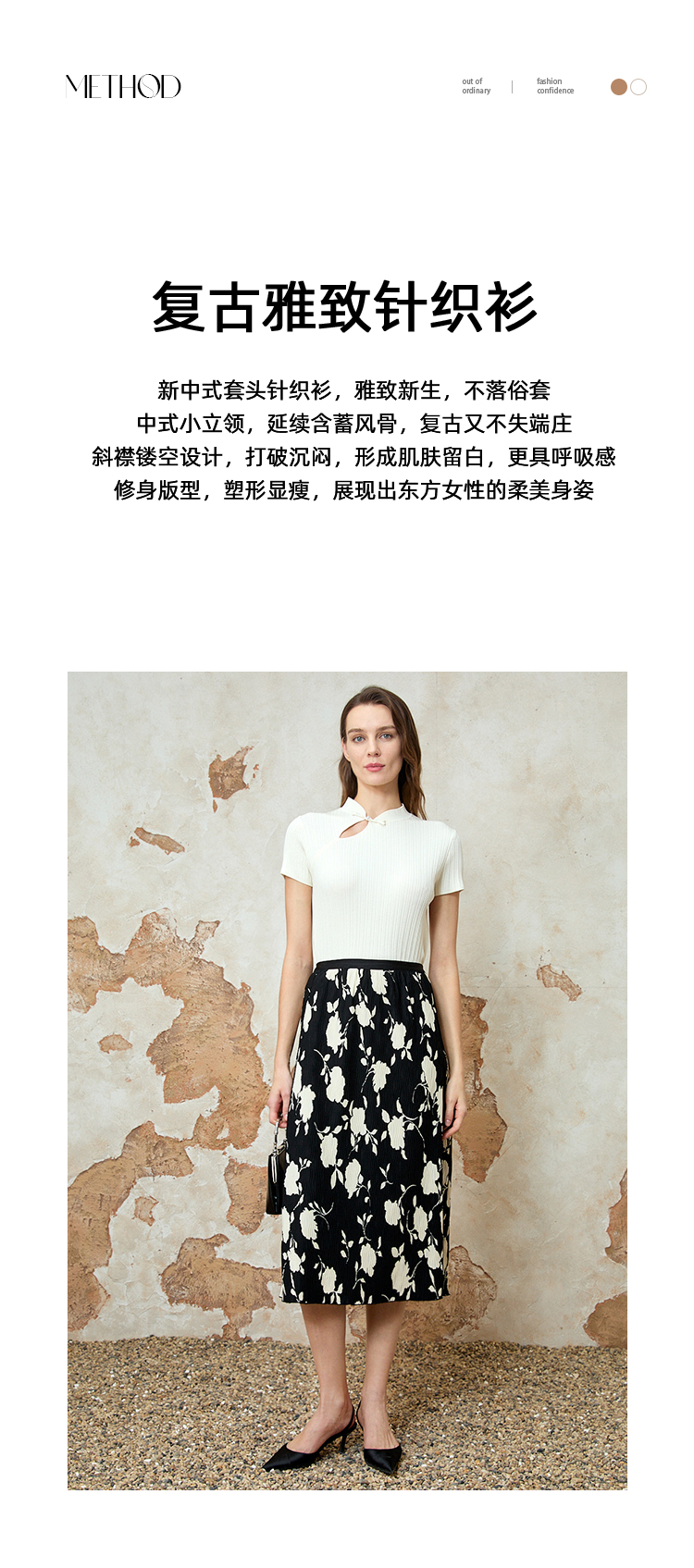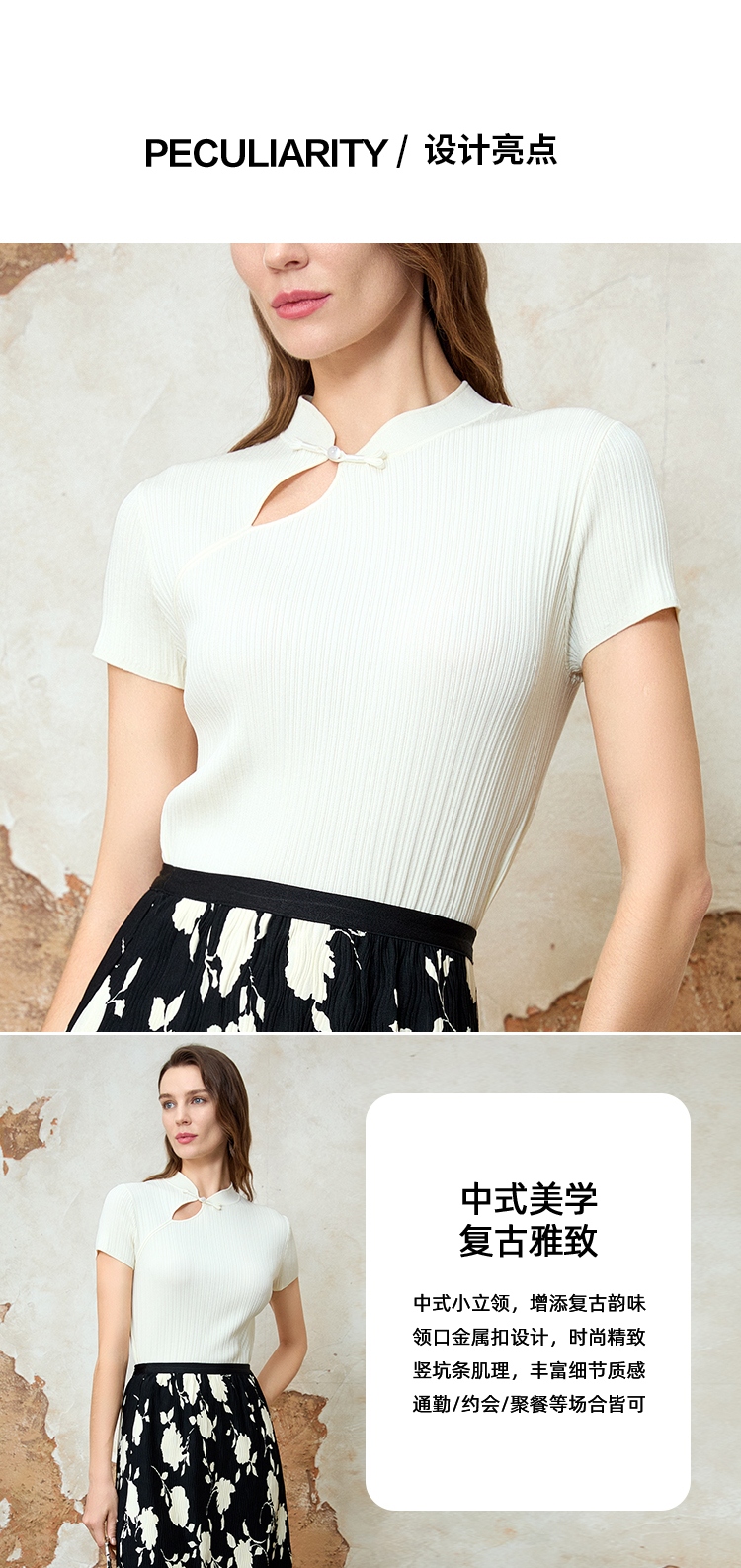 EITIE爱特爱春季新款中式盘扣气质修身温柔显瘦针织衫8101806