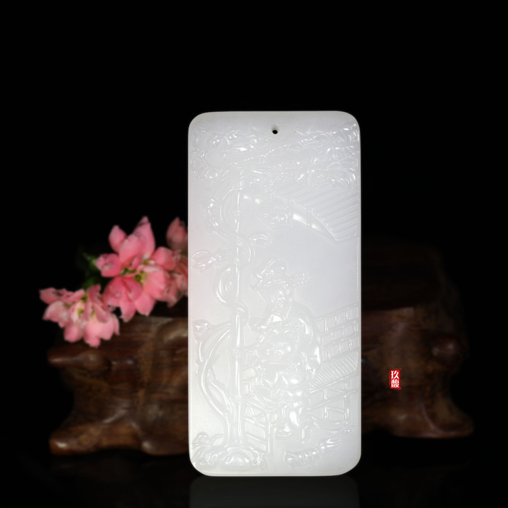 玉料:高白老坑山料,结构均匀细腻,油润无瑕