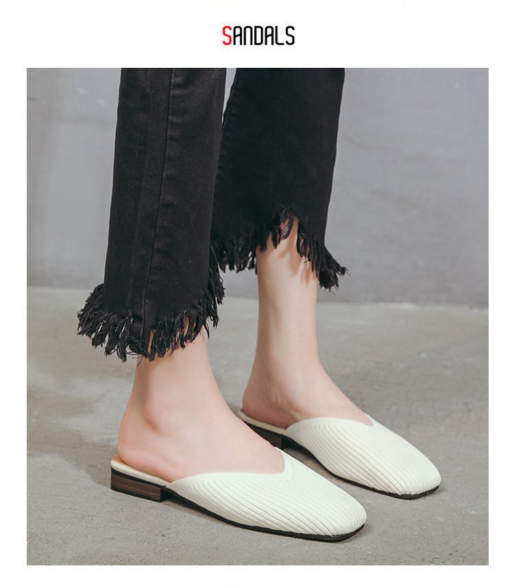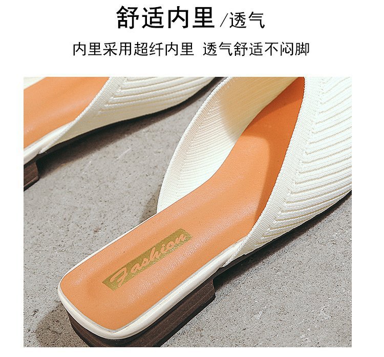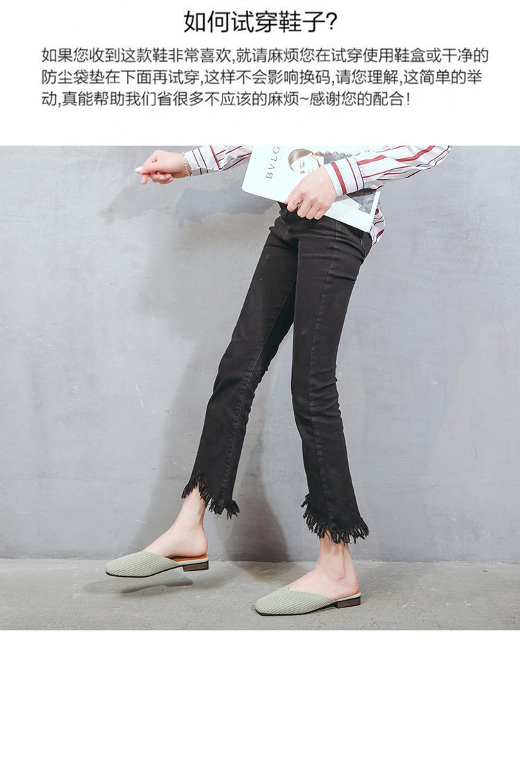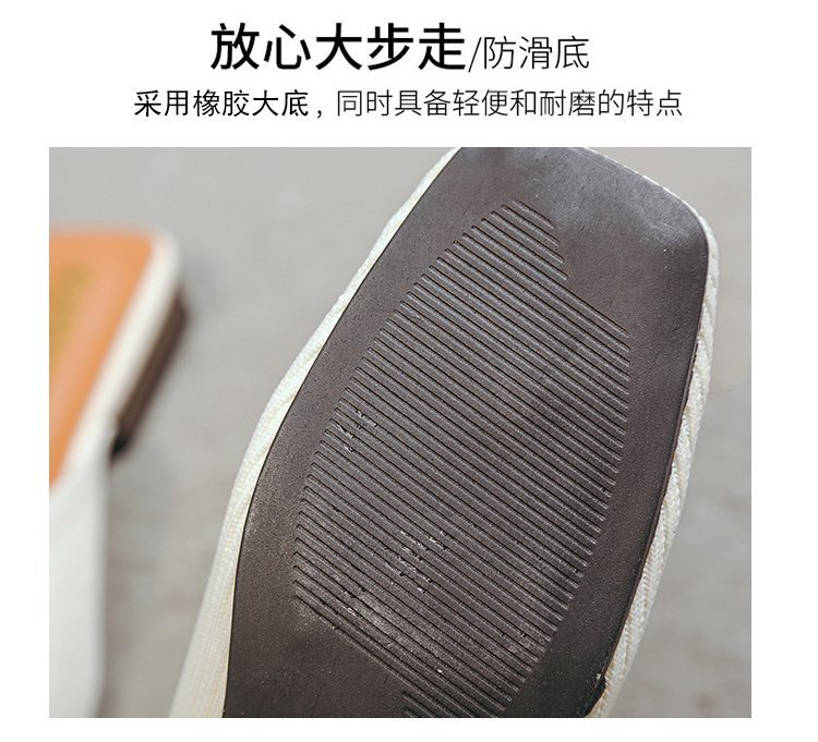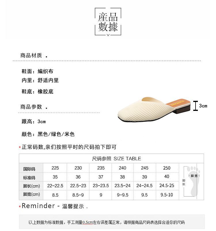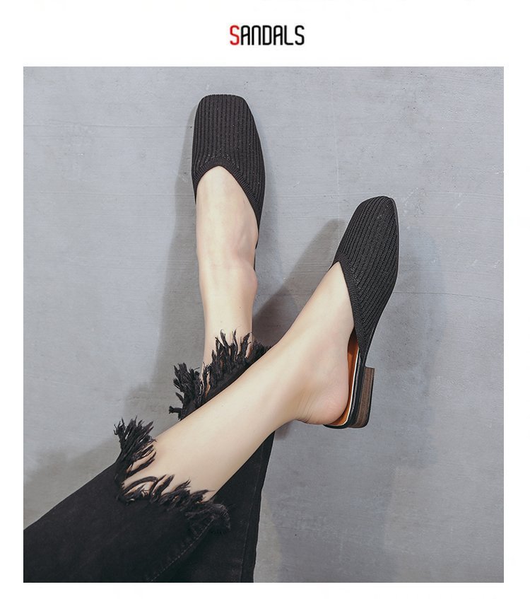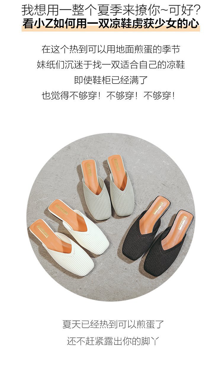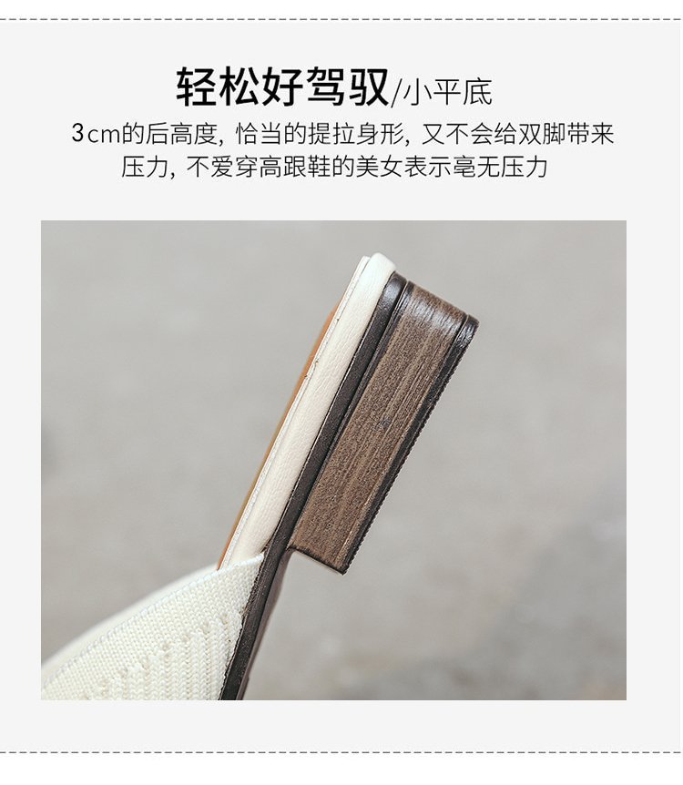 YJY-K-9(编织鞋面,防滑鞋底)仙女绸缎中跟百搭包头方头粗跟仙女凉拖穆勒鞋