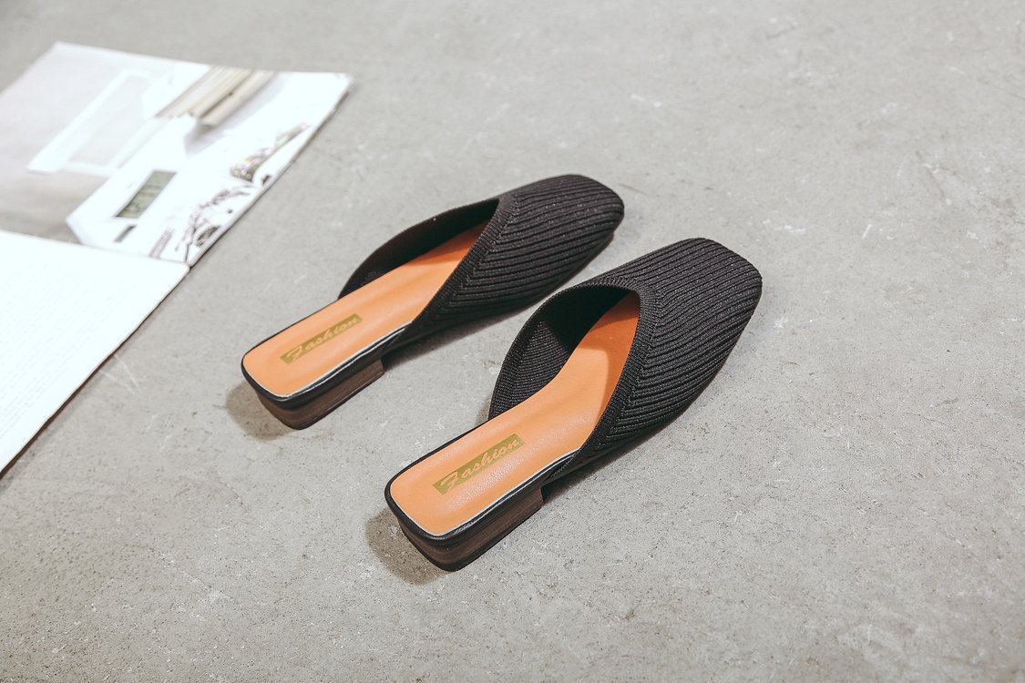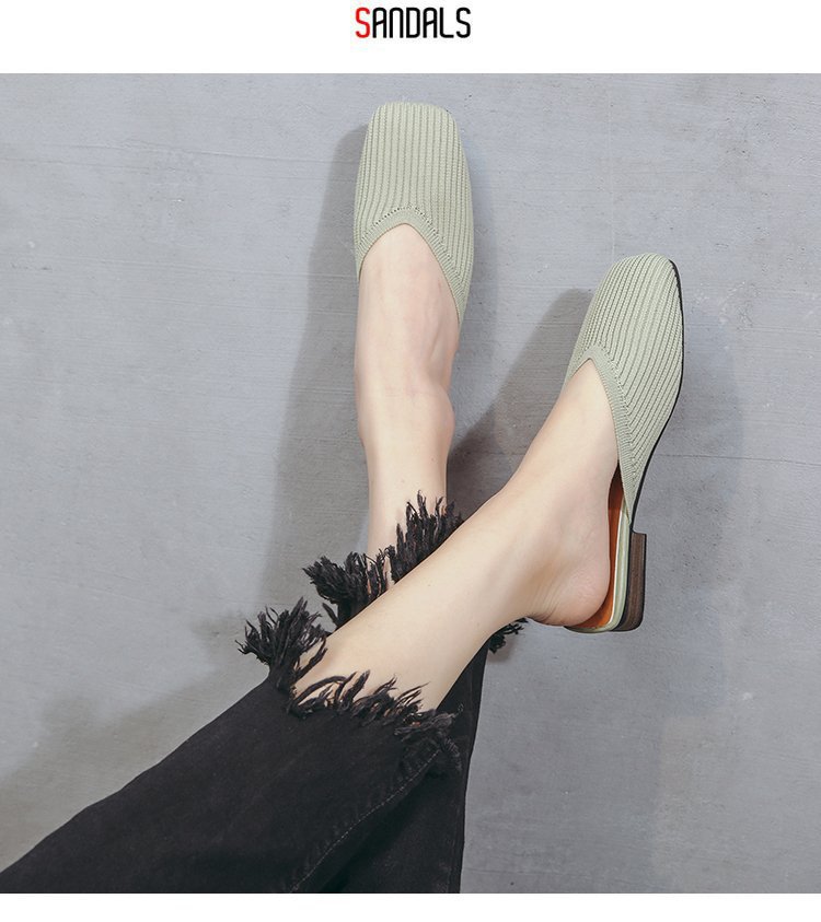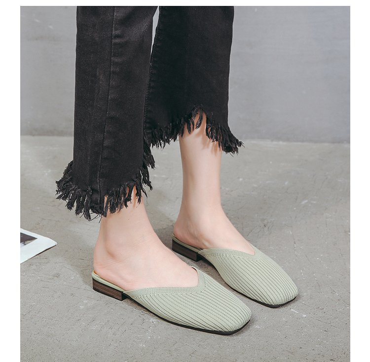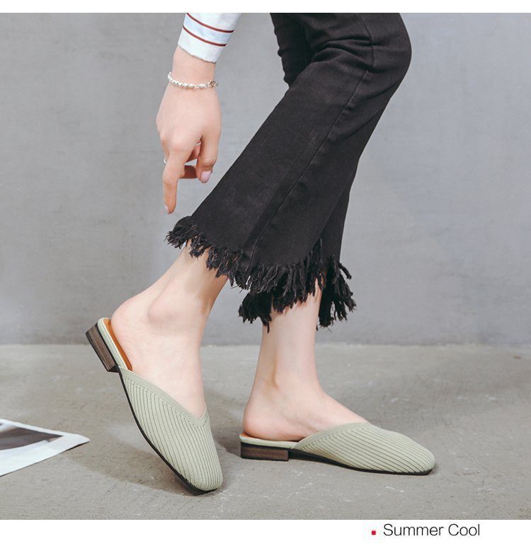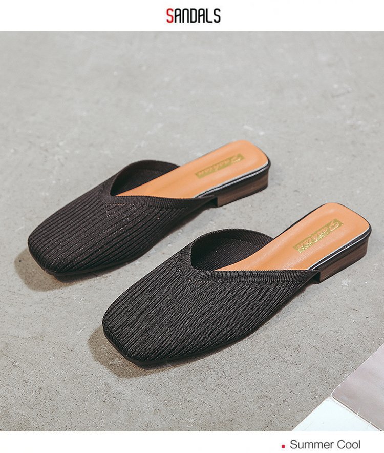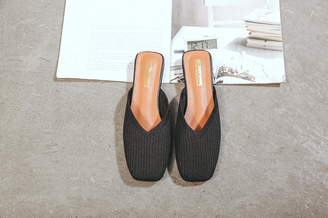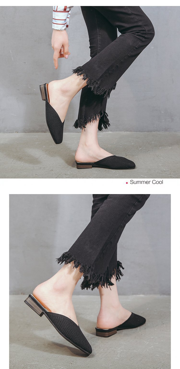 YJY-K-9(编织鞋面,防滑鞋底)仙女绸缎中跟百搭包头方头粗跟仙女凉拖穆勒鞋