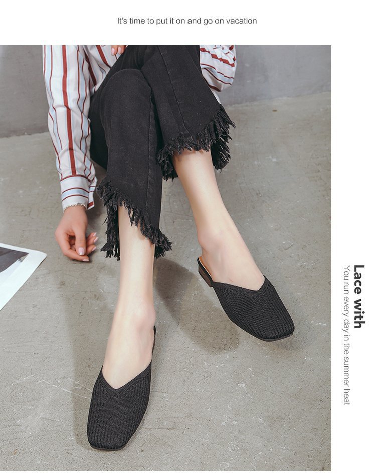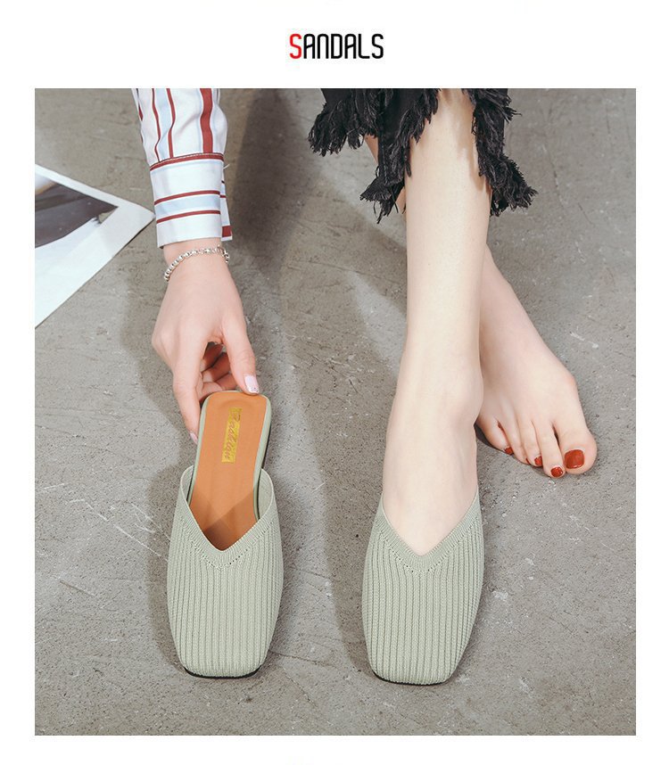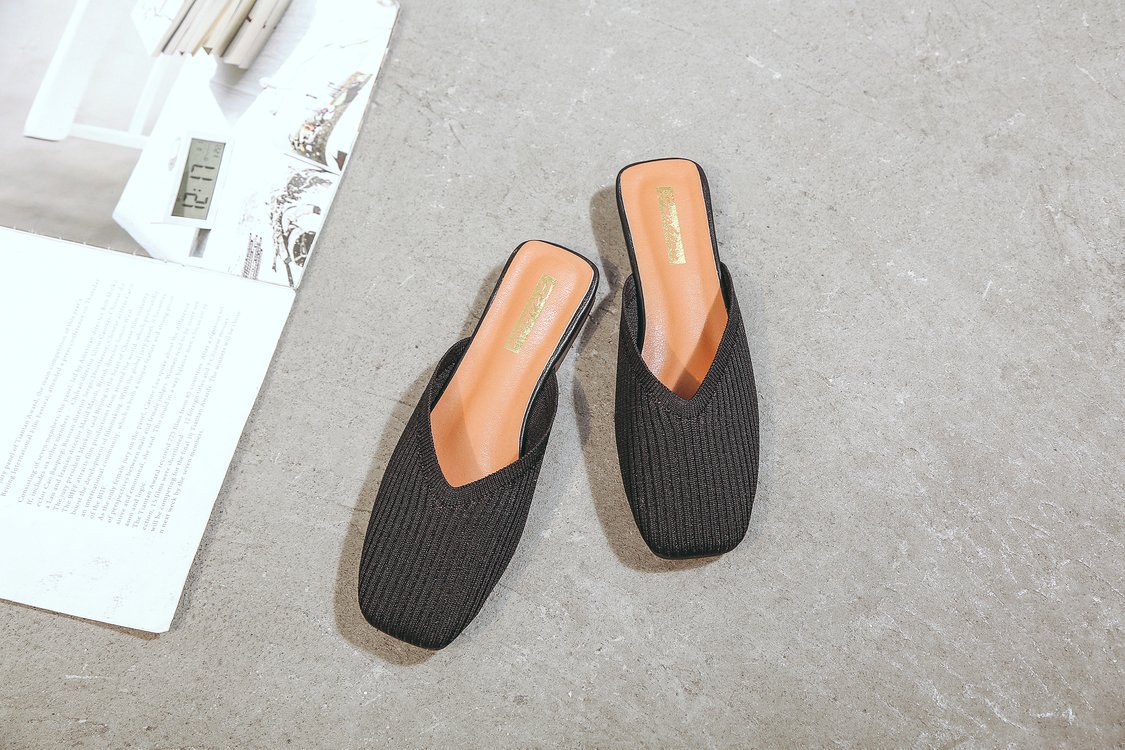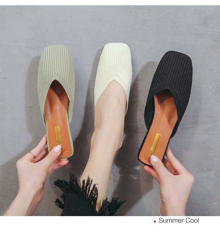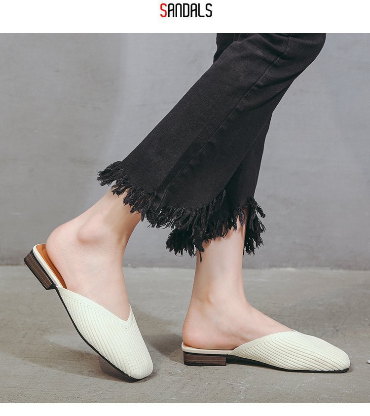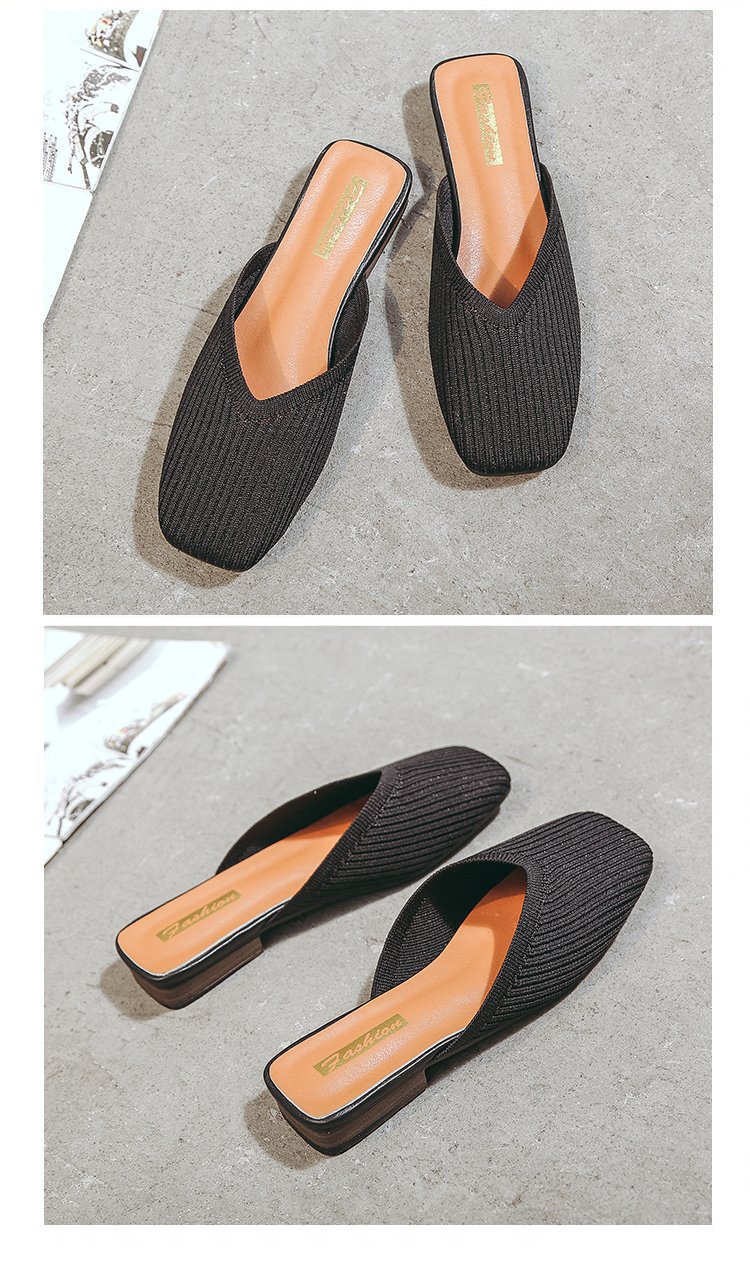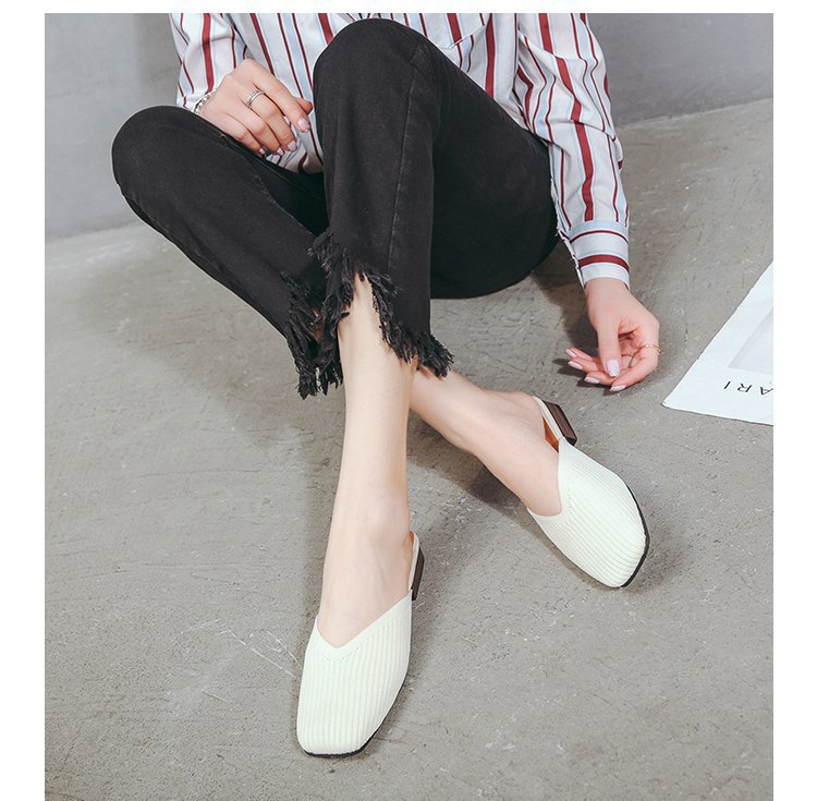 YJY-K-9(编织鞋面,防滑鞋底)仙女绸缎中跟百搭包头方头粗跟仙女凉拖穆勒鞋