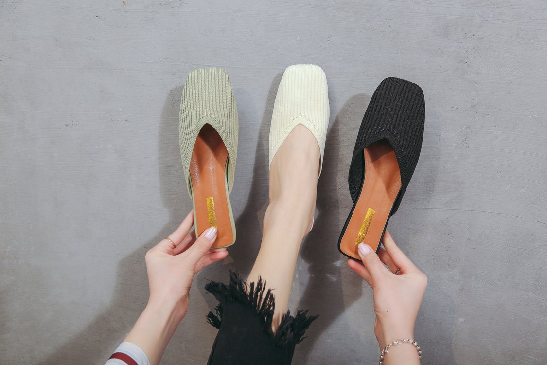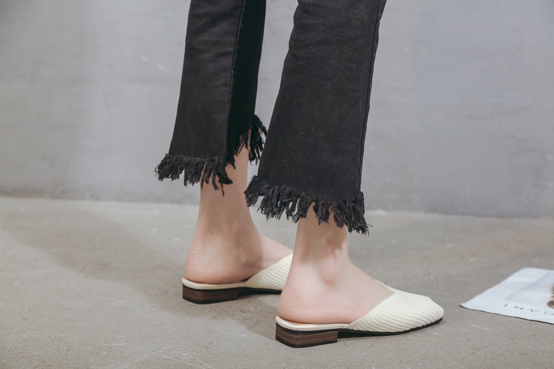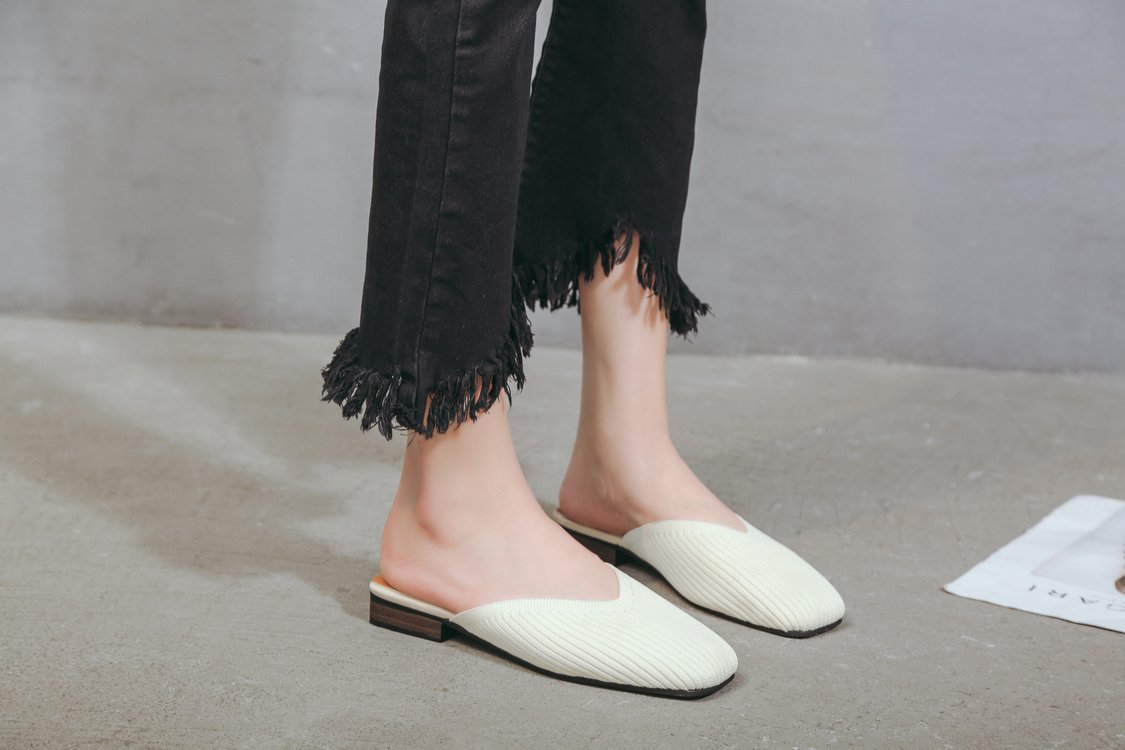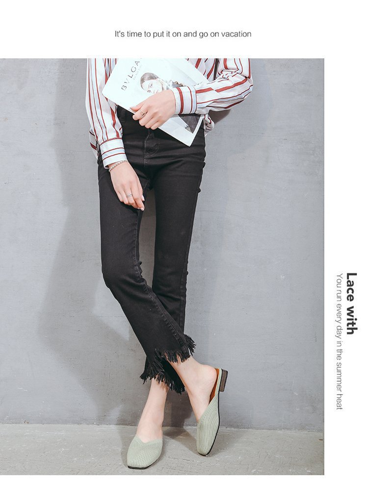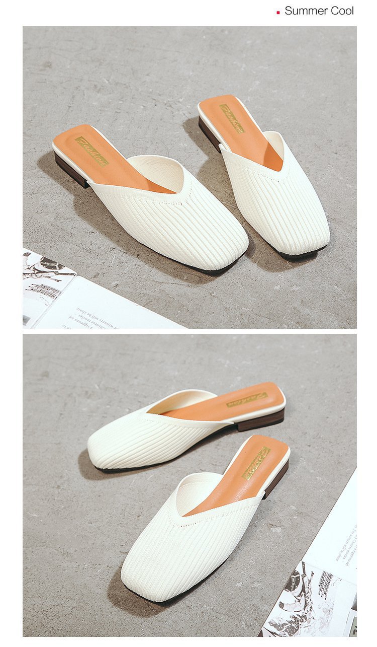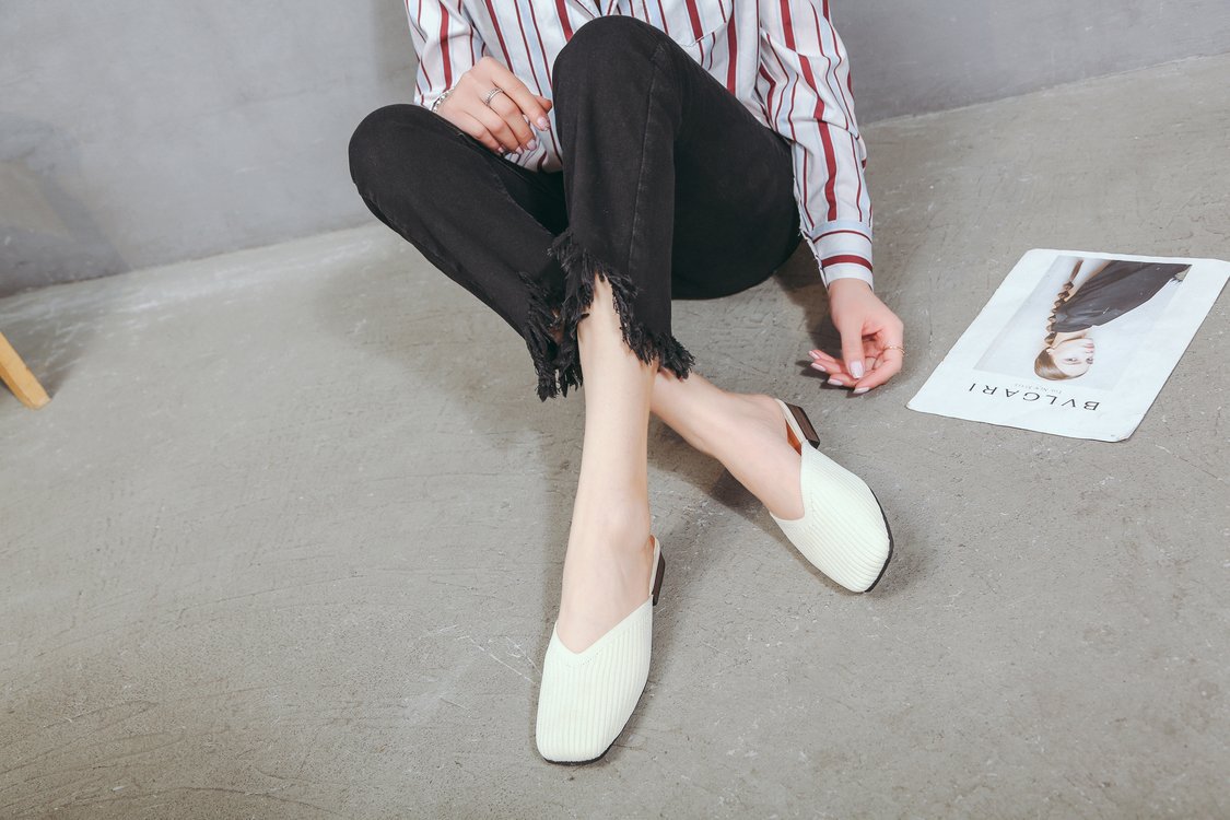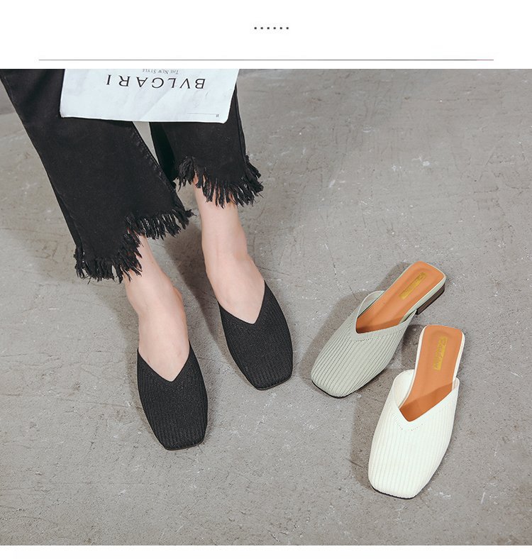 YJY-K-9(编织鞋面,防滑鞋底)仙女绸缎中跟百搭包头方头粗跟仙女凉拖穆勒鞋