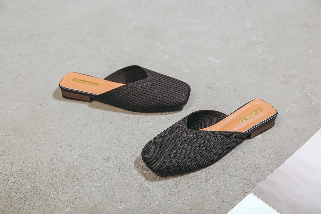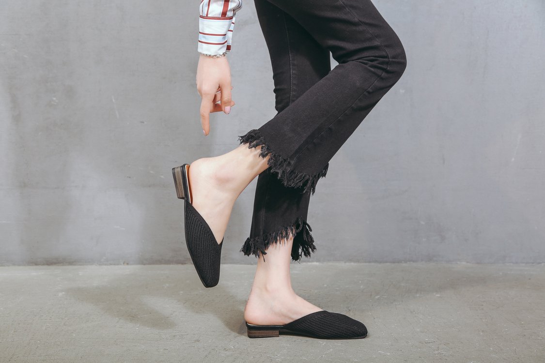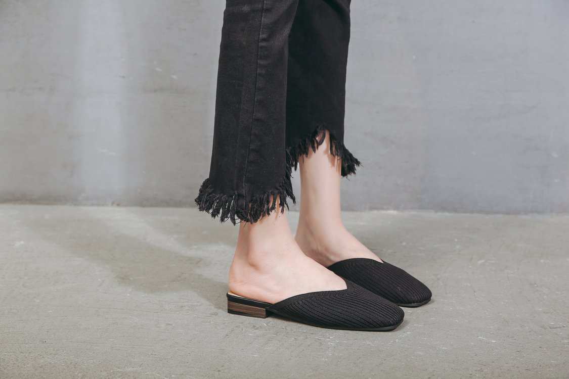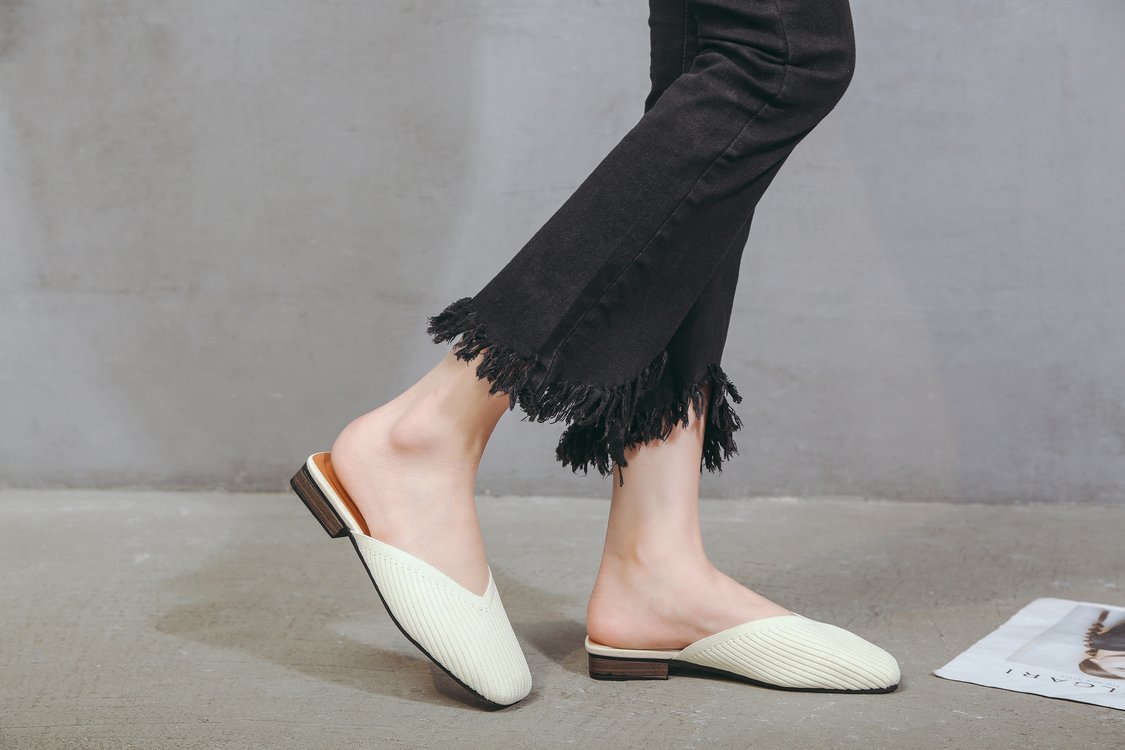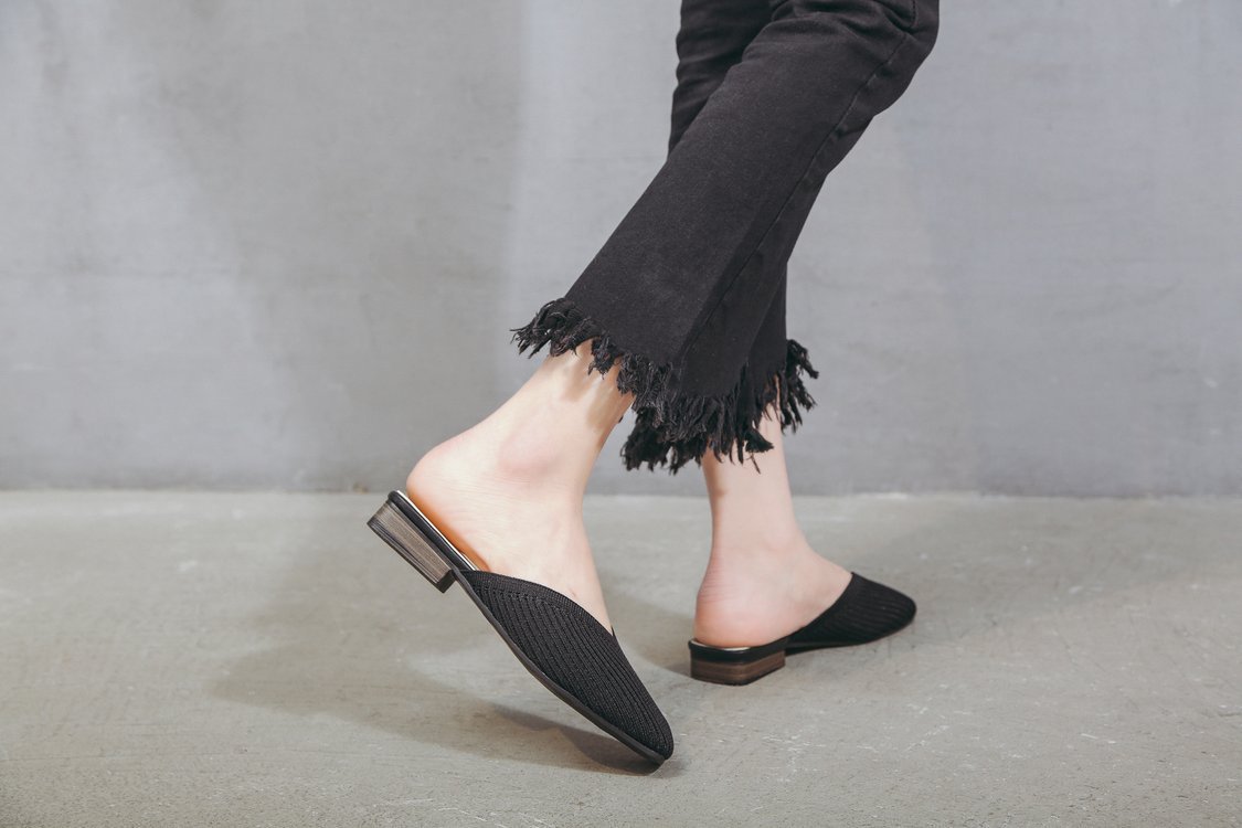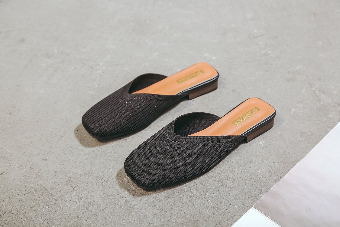 YJY-K-9(编织鞋面,防滑鞋底)仙女绸缎中跟百搭包头方头粗跟仙女凉拖穆勒鞋