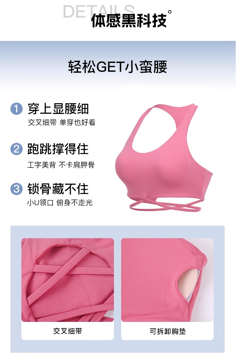 跃牌【化蝶双飞】系列 裸感工字聚拢跑步健身服防震运动内衣性感美背瑜伽背心文胸 TM0137