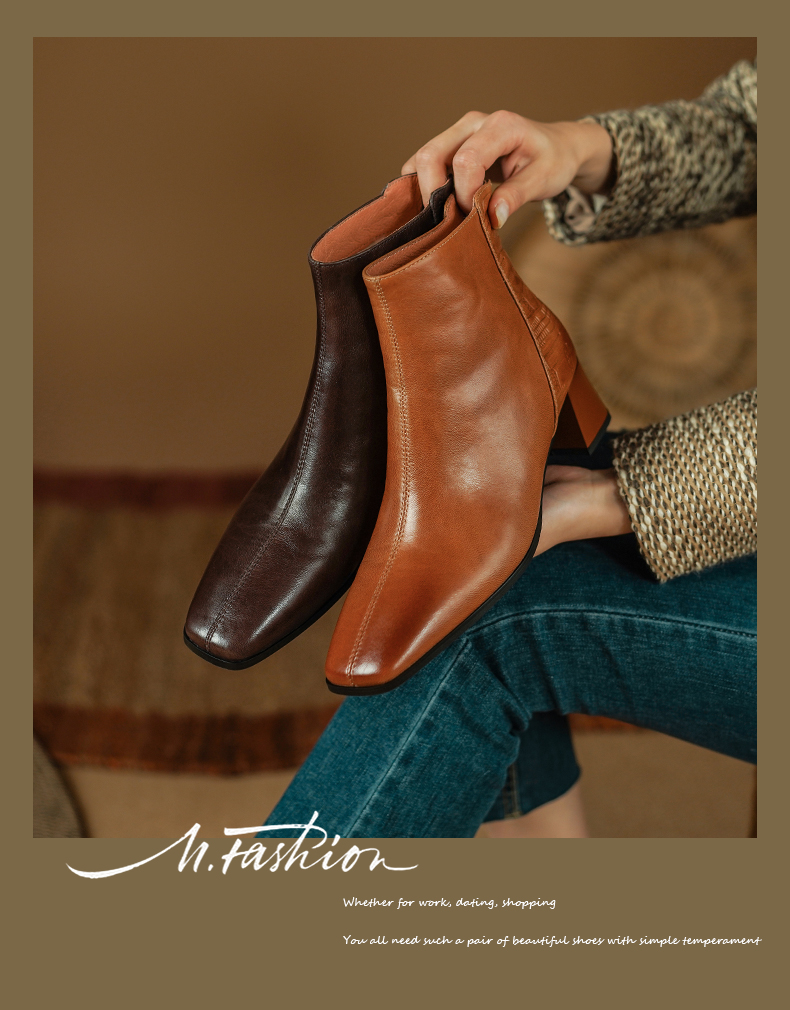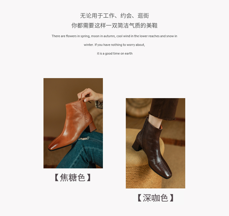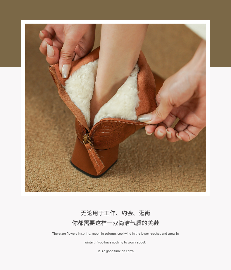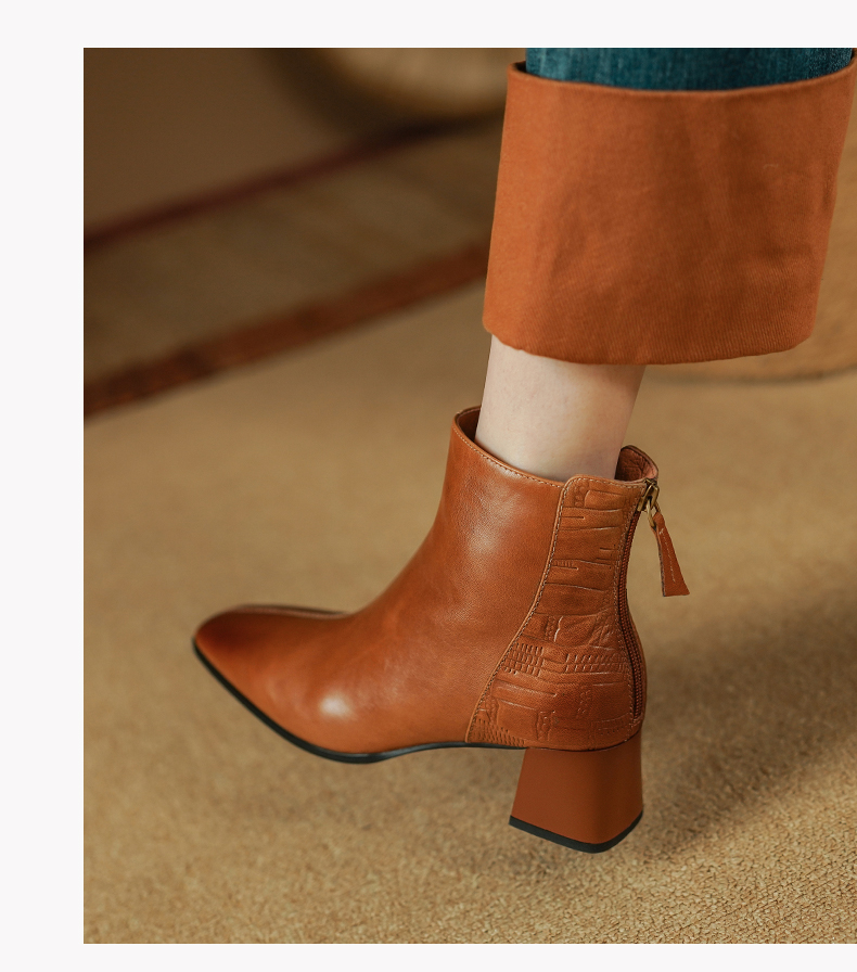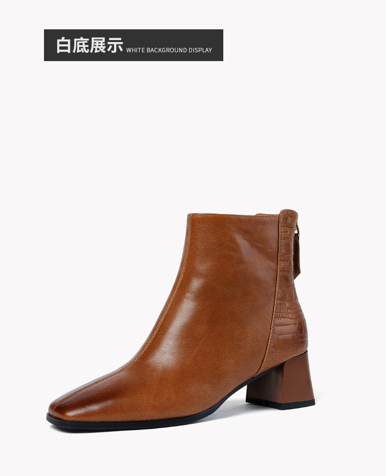 简约百搭,法式优雅粗跟后拉链短靴PS2151