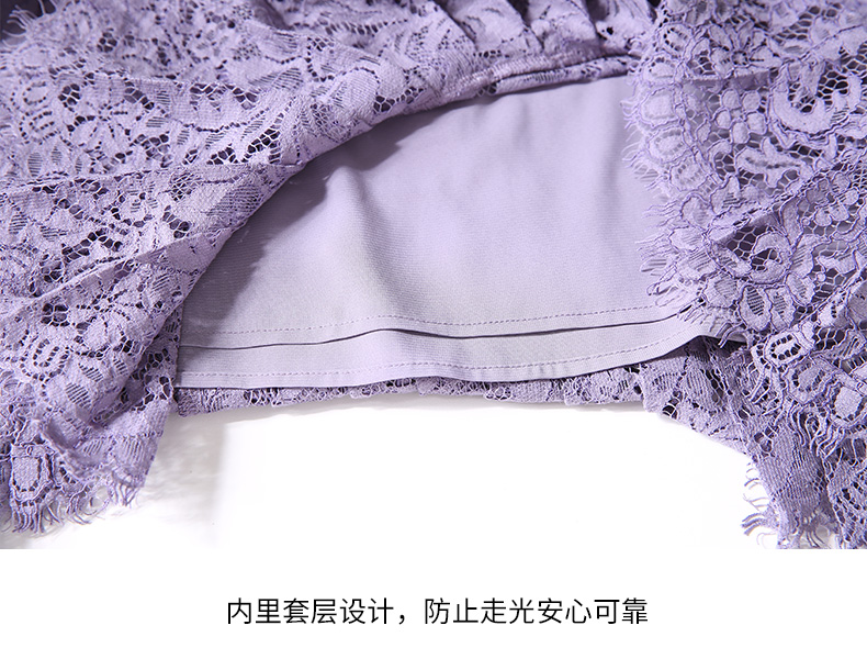 EITIE爱特爱女装秋季新品蕾丝褶皱A字短款镂空晚礼服连衣裙5777405