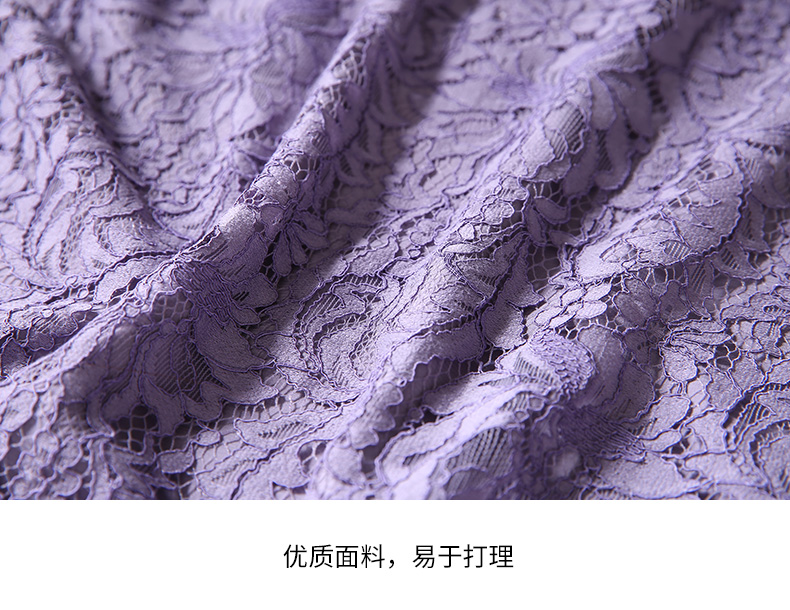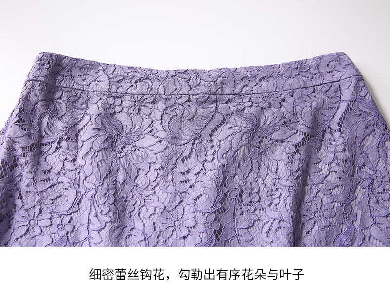 EITIE爱特爱女装蕾丝镂空钩花喇叭七分袖优雅连衣裙D1907319