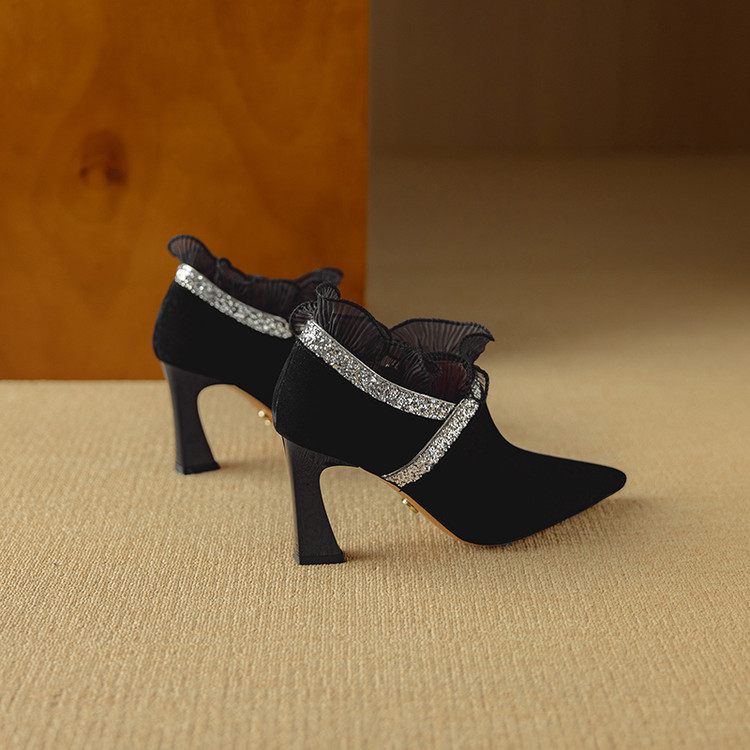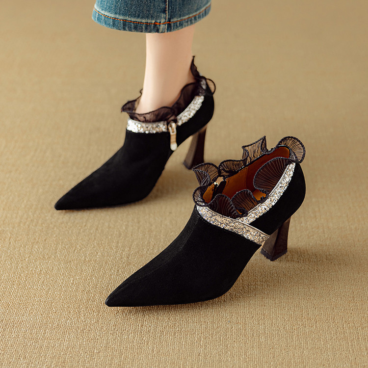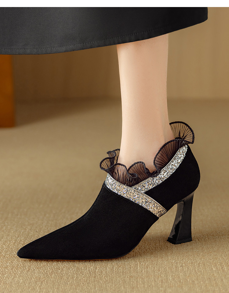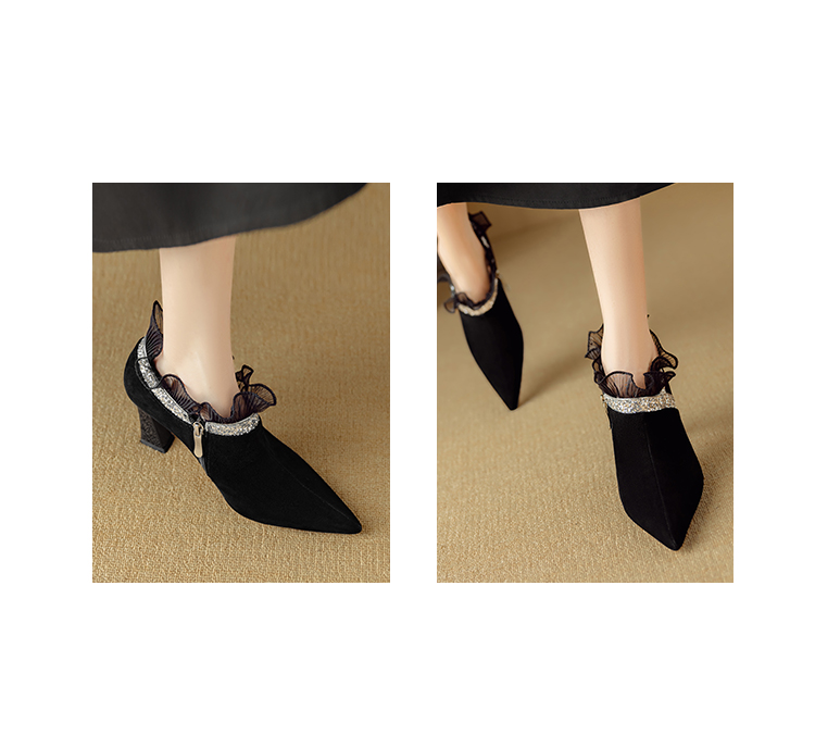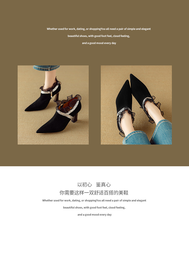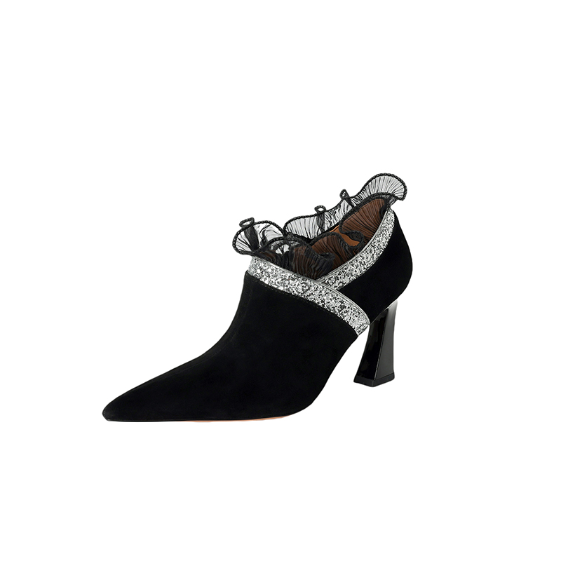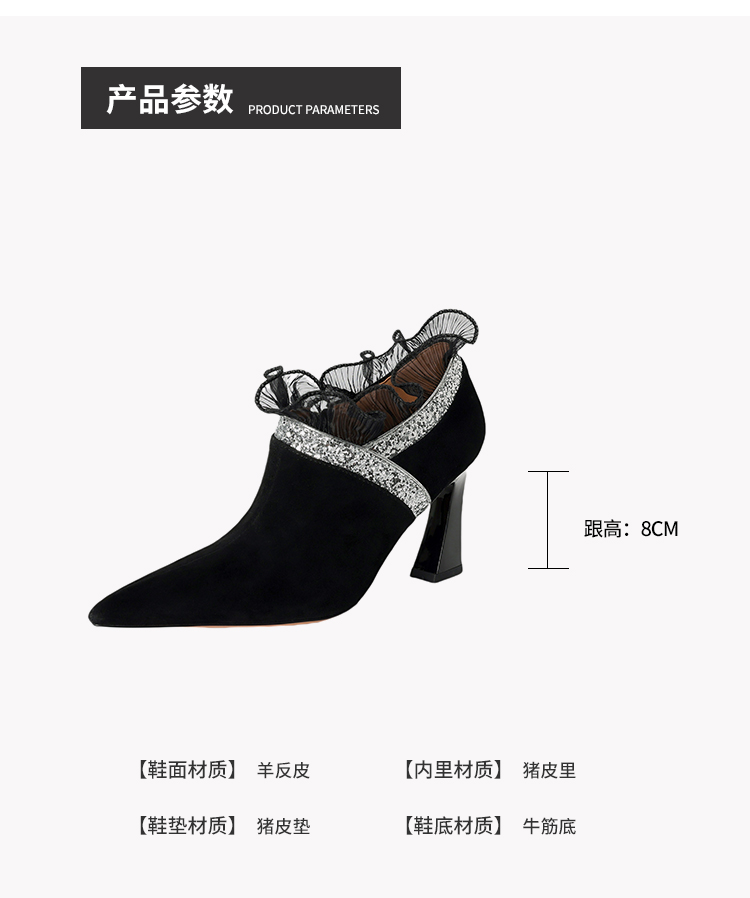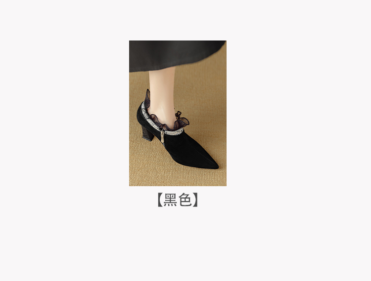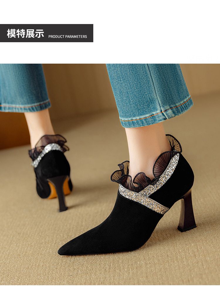 【预售5天】磨砂蕾丝花边深口高跟鞋新款女鞋尖头细跟单鞋DB&M6157