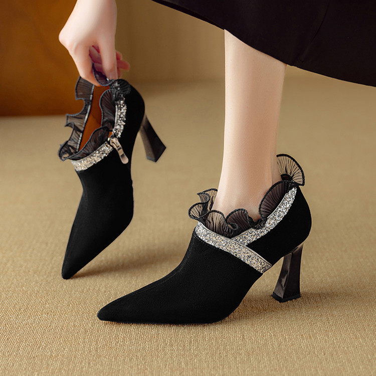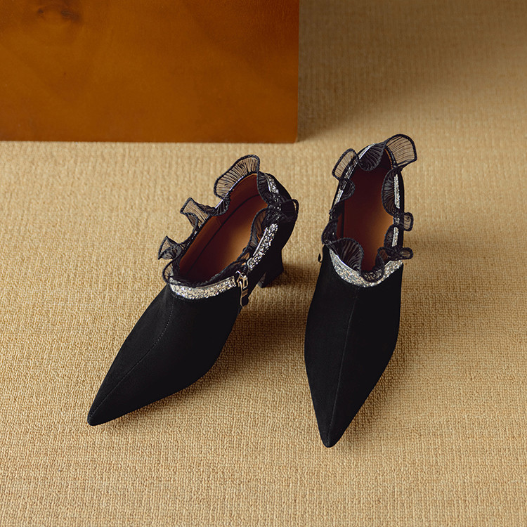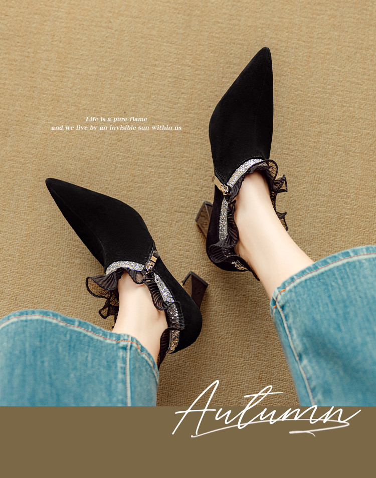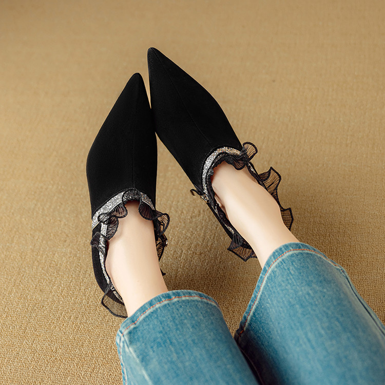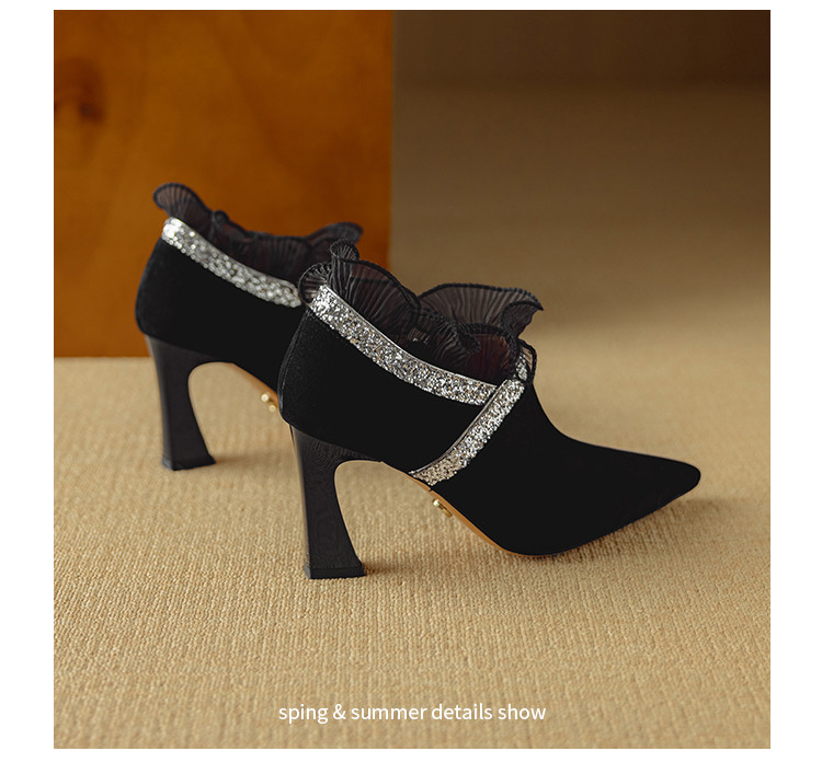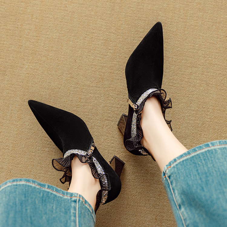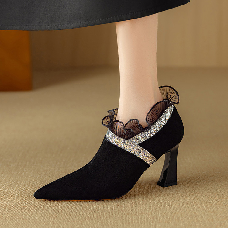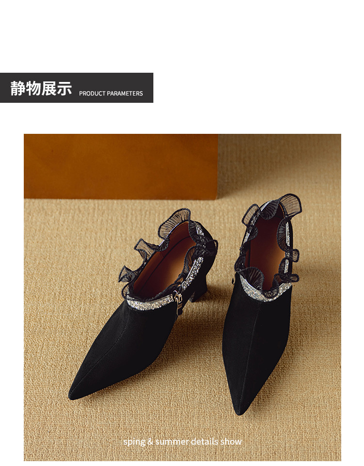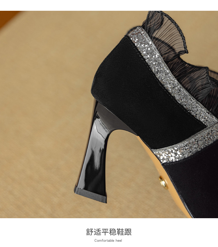 【预售5天】磨砂蕾丝花边深口高跟鞋新款女鞋尖头细跟单鞋DB&M6157