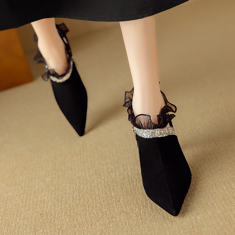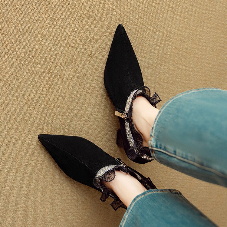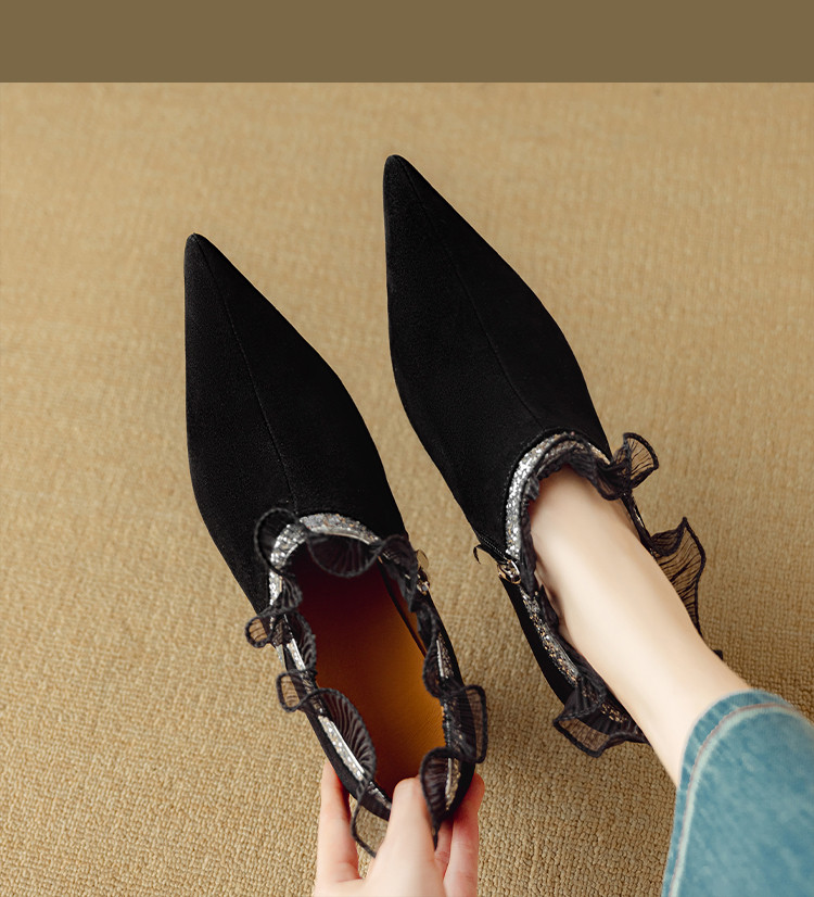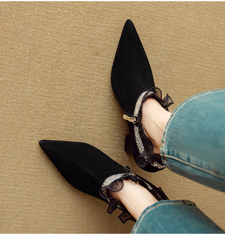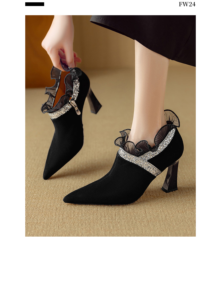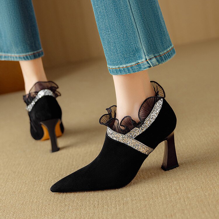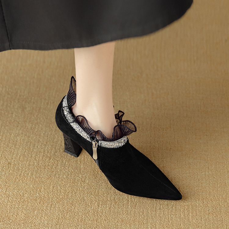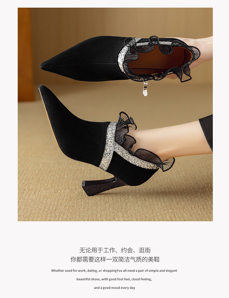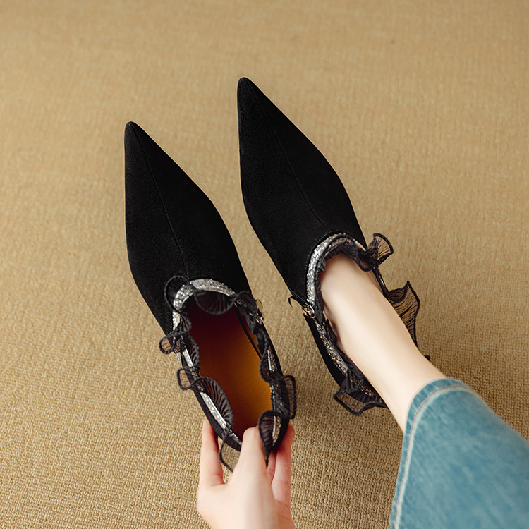【预售5天】磨砂蕾丝花边深口高跟鞋新款女鞋尖头细跟单鞋DB&M6157