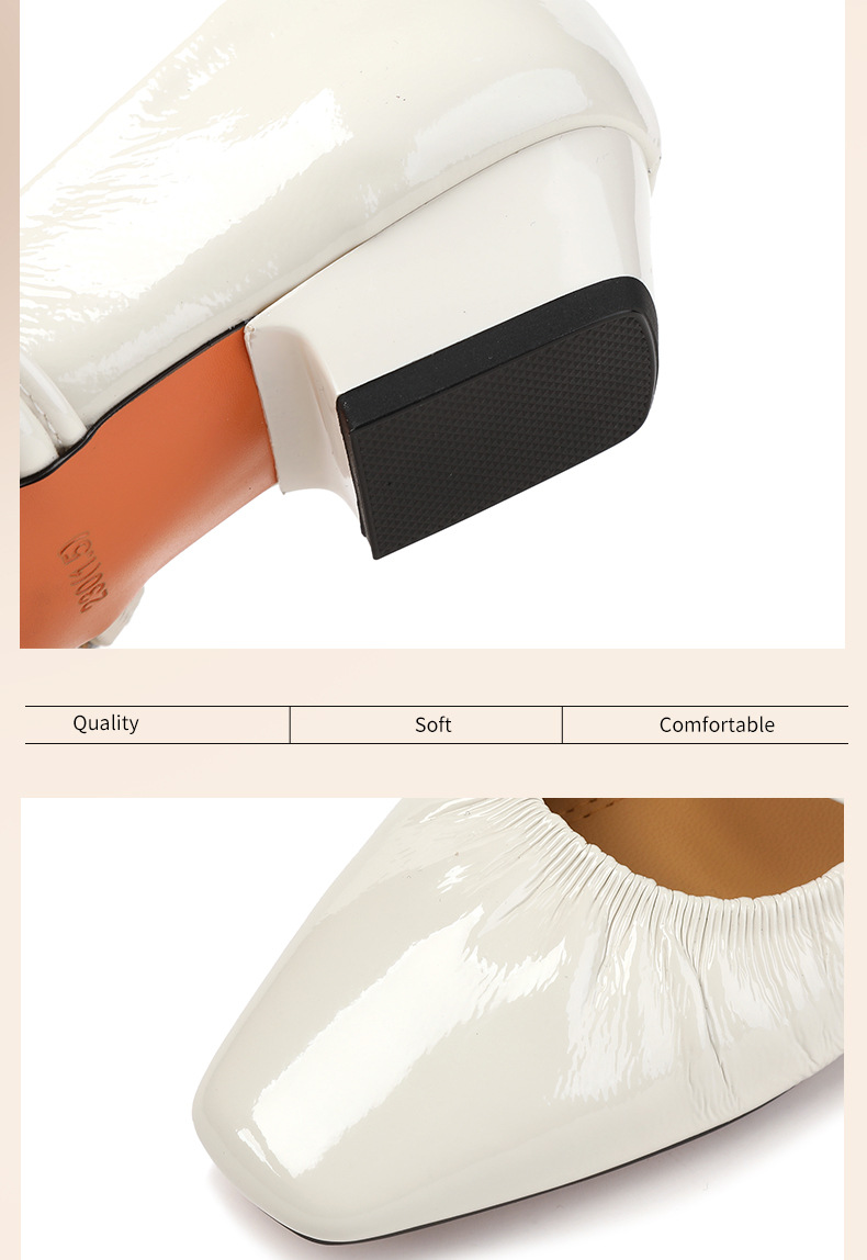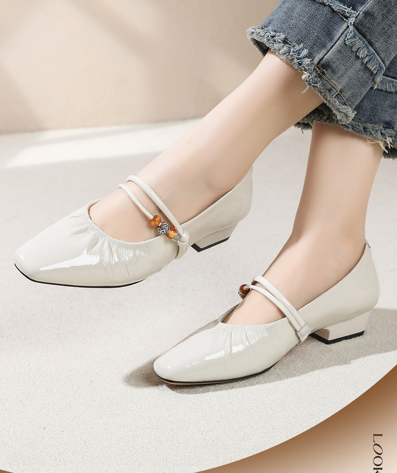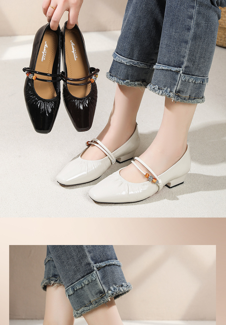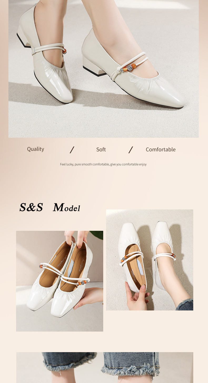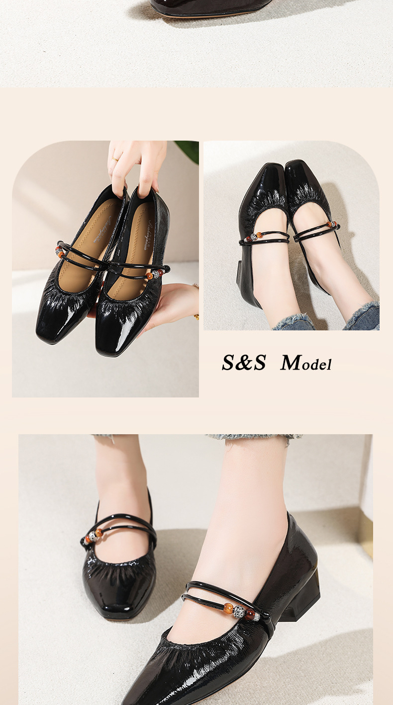 雀说 头层牛皮一字扣中跟串珠浅口单鞋复古仙女鞋2103 商品图1